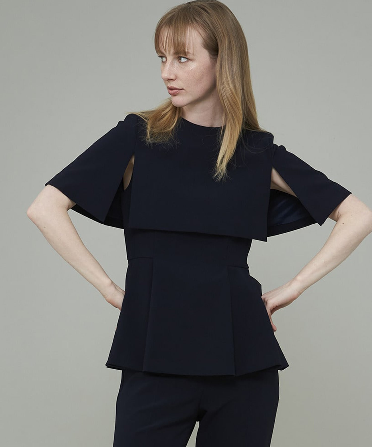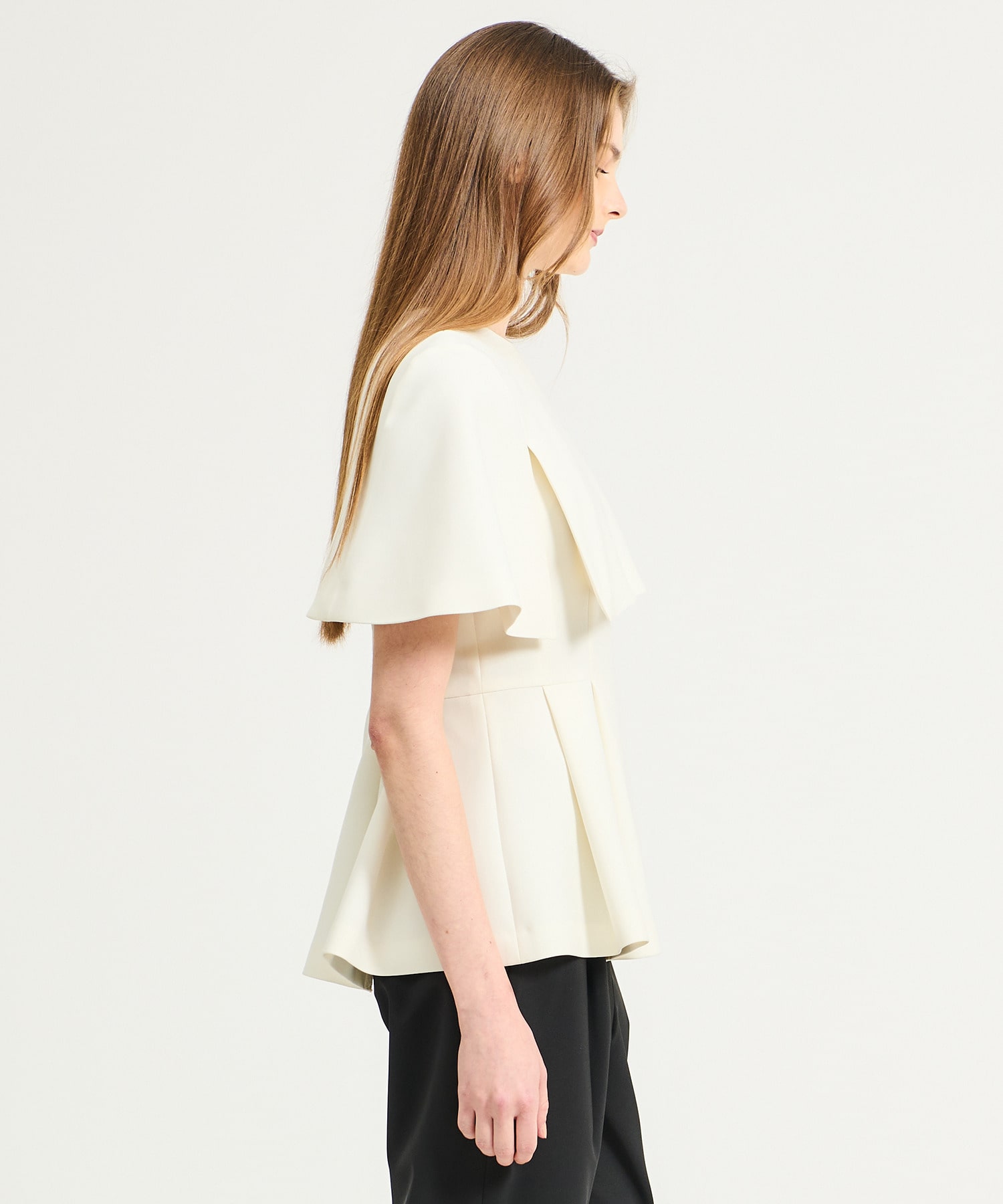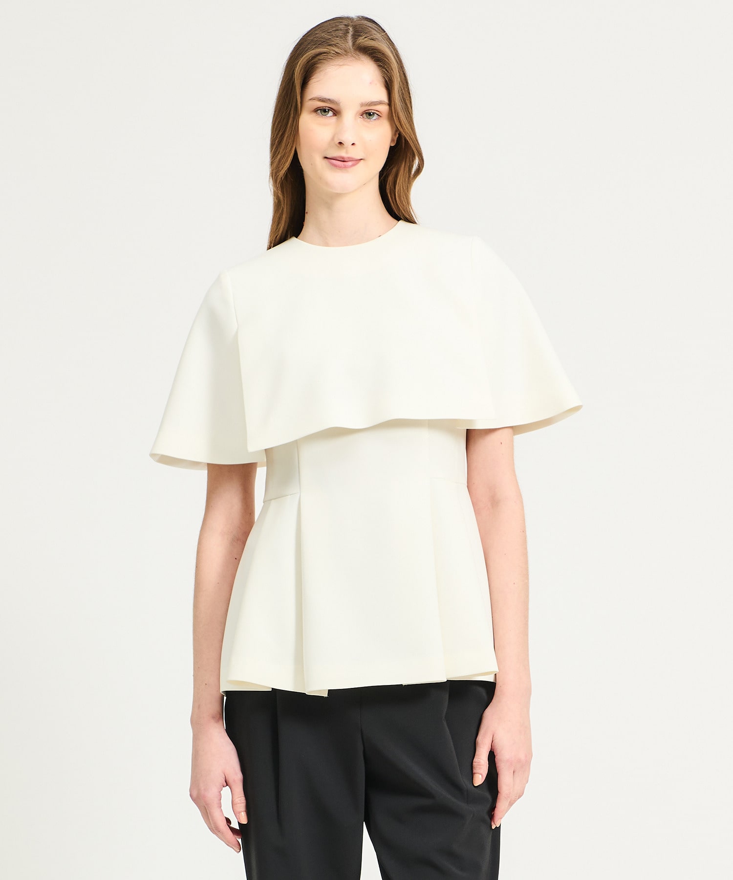 ノースリーブブラウスにケープを合わせた2WAYブラウス。
