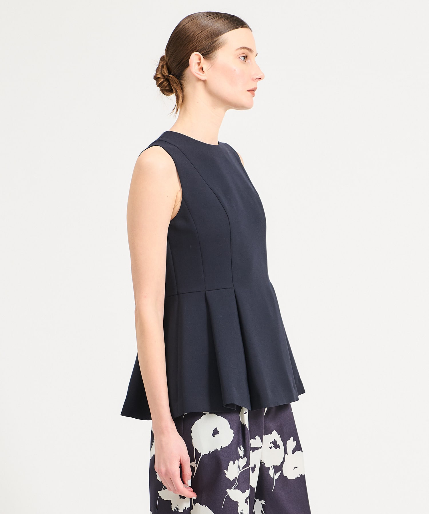ノースリーブブラウスにケープを合わせた2WAYブラウス。