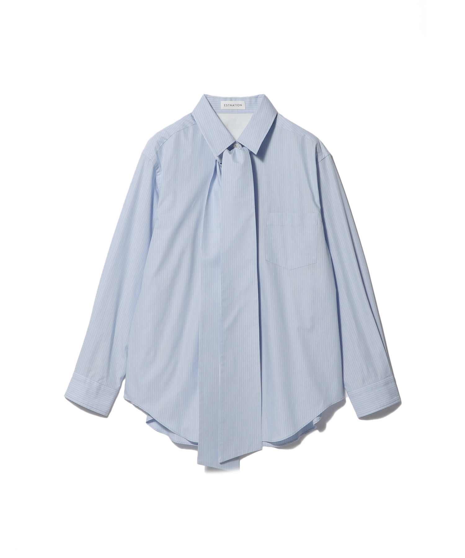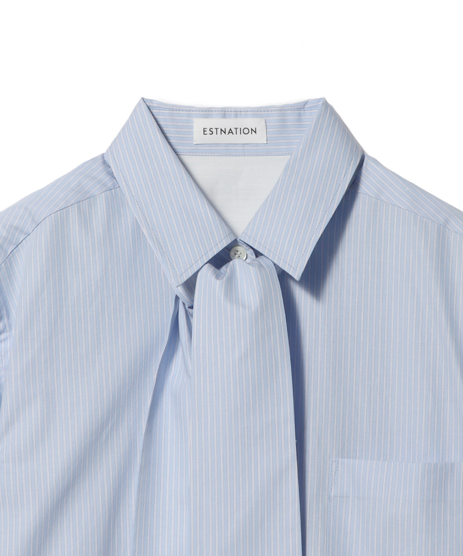 取り外し可能なボウタイ付きで、衿を立たせてリボンをぎゅっと結べば、顔まわりにボリュームが生まれ華やかな印象に。ボウタイを外せば、すっきりとしたストライプシャツとしても着用可能です。