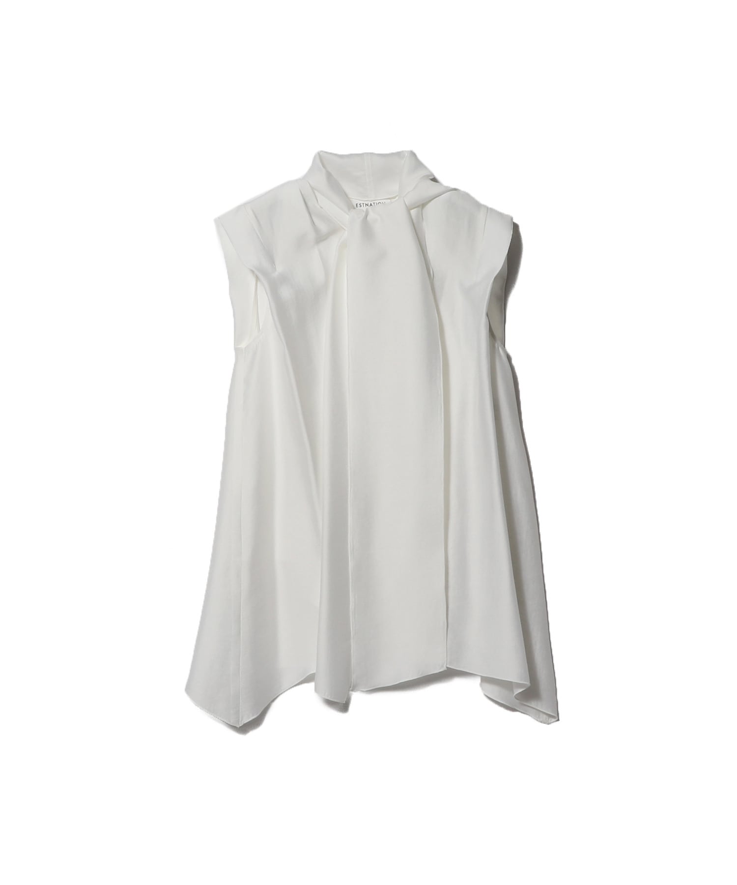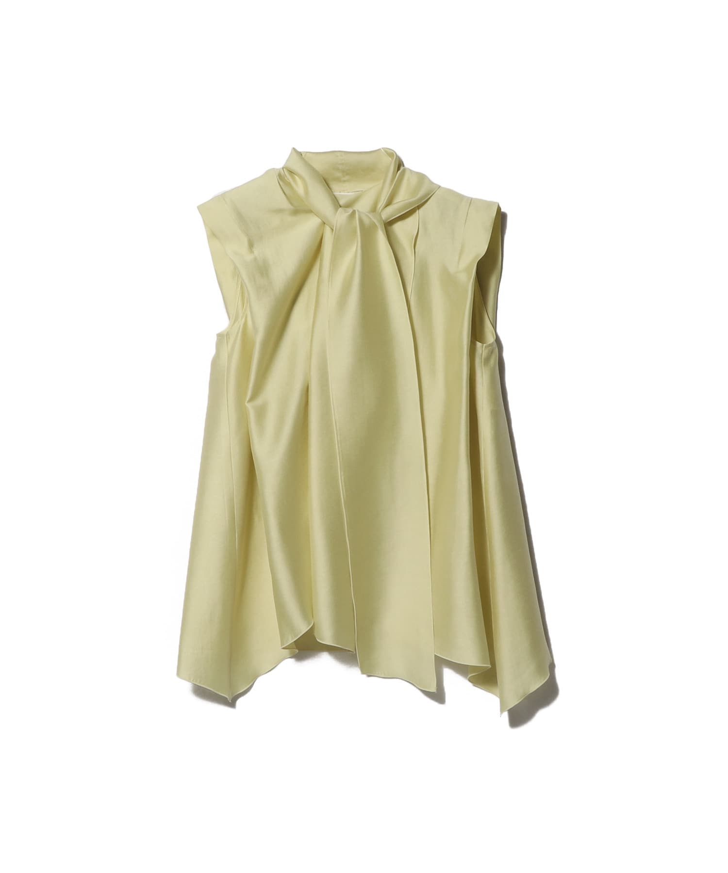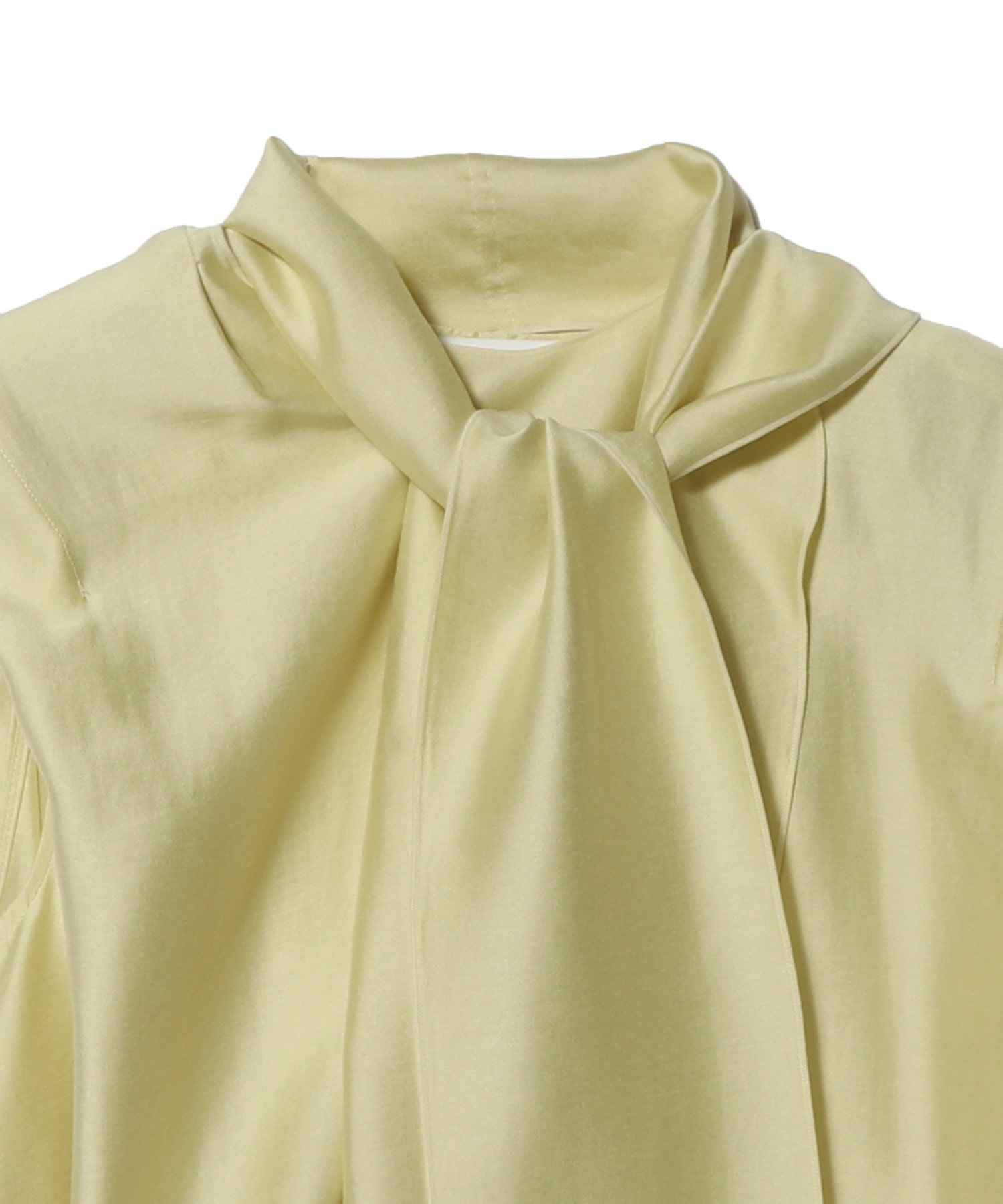 ドレープ性に優れ、シワになりにくく手洗い可能なポリエステルツイルを使用したボウタイブラウス。
