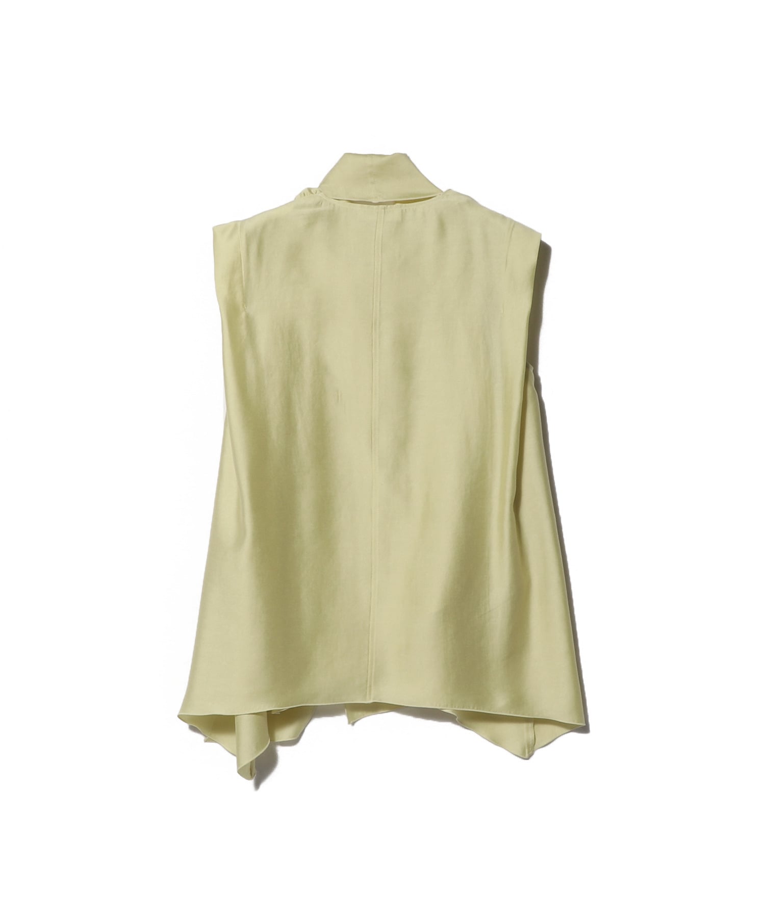 ヨークの様な右前身頃と左側の肩から続くタイは、一度フロントで緩やかに通したり、ネックの近くでリボンの様に結んだりと、コーディネイトやその日の気分によってアレンジのきくデザインになっています。