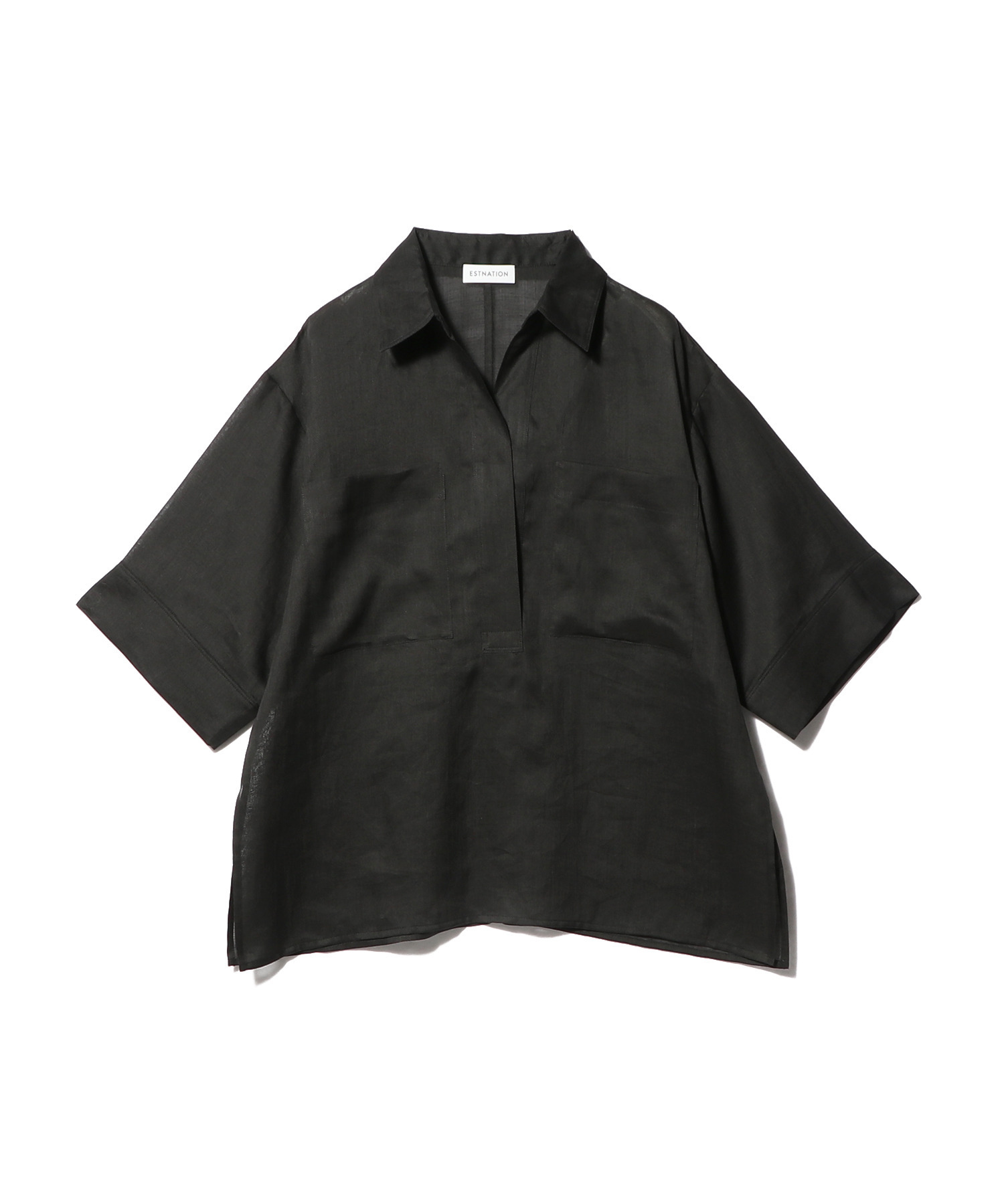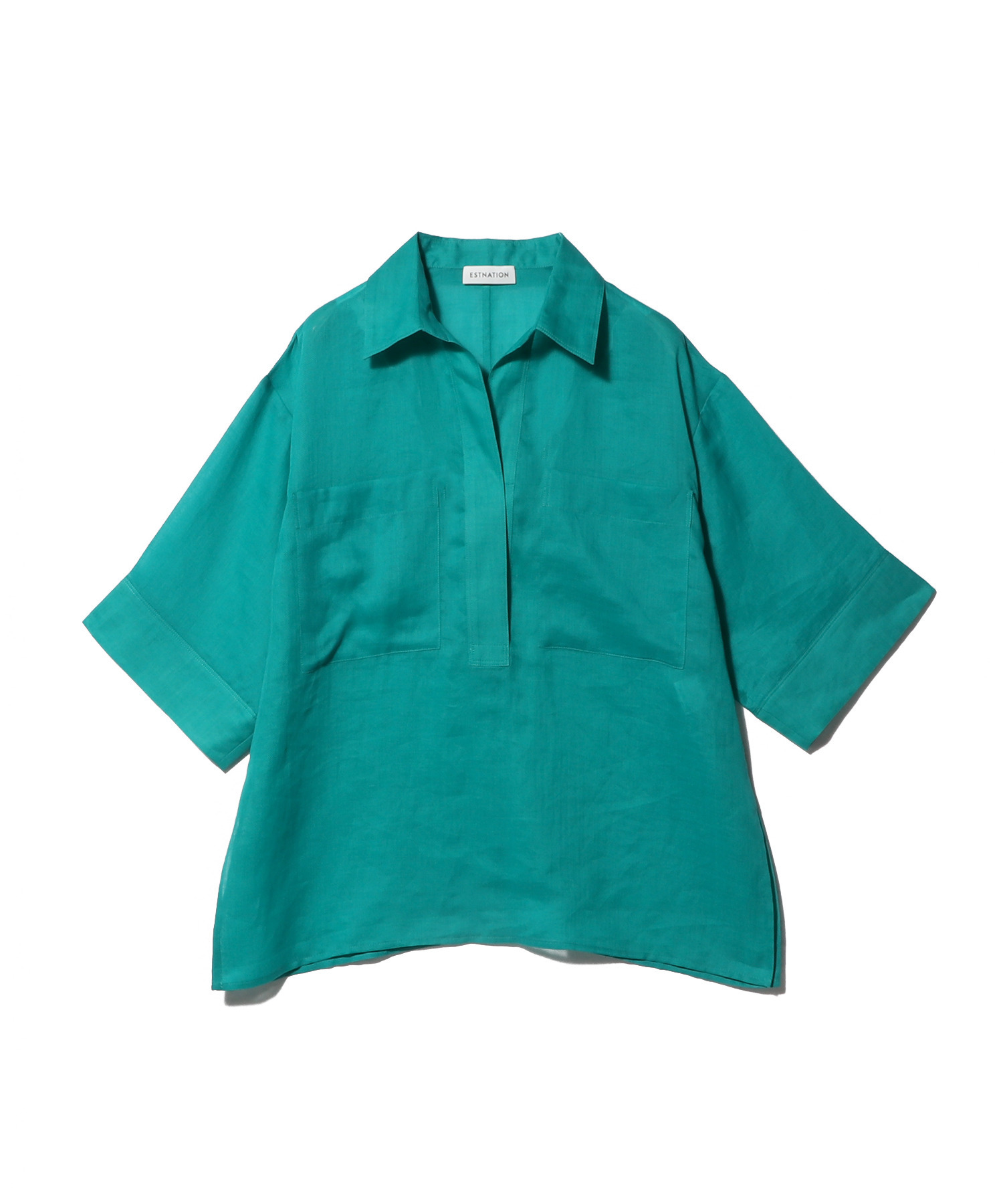 ワイドなハーフスリーブと大きめの胸ポケットが印象的なスキッパーデザインのシャツブラウス。