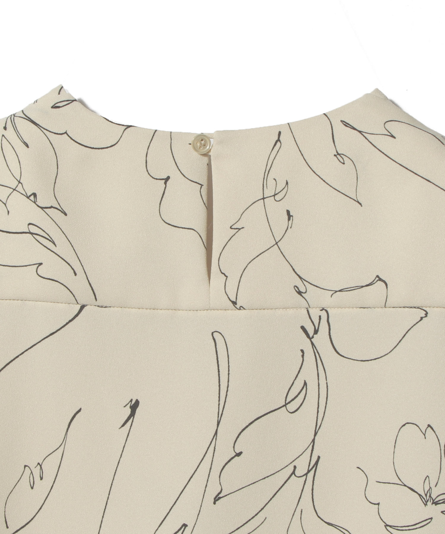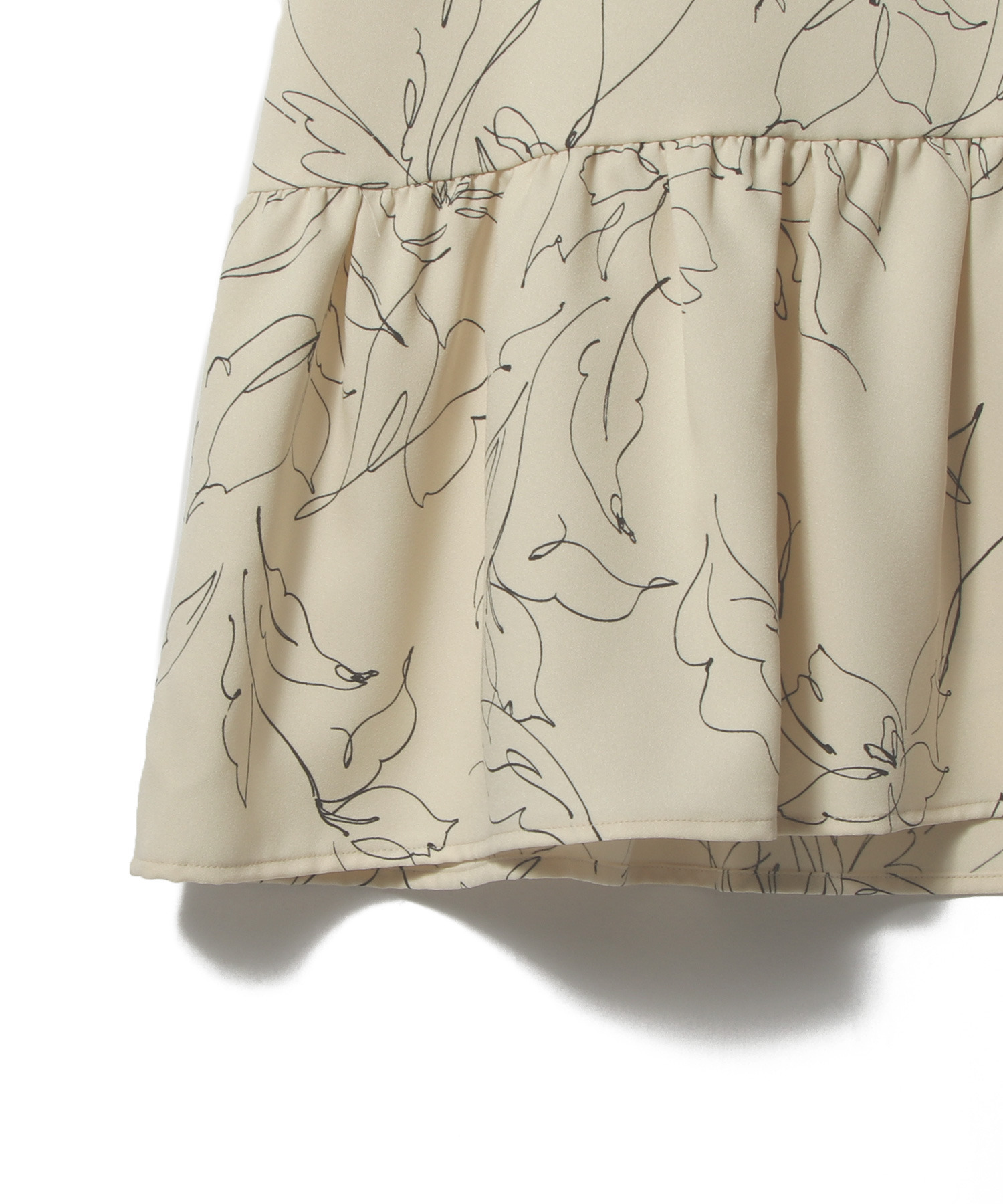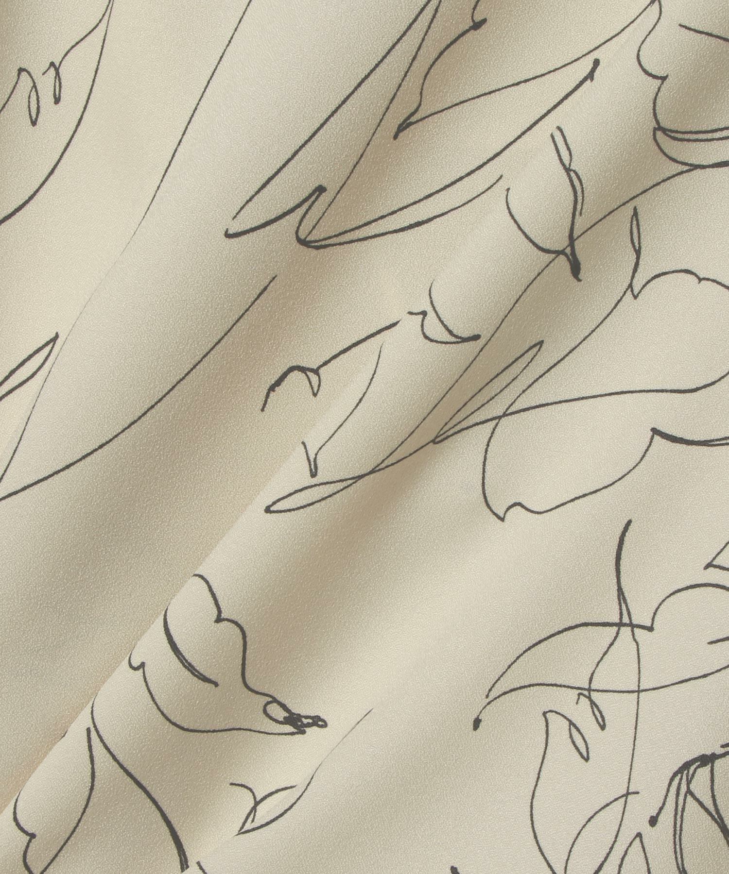 手描きで書いたような細い線のラインの花柄で大人の女性も楽しめるプリント素材を使用しています。