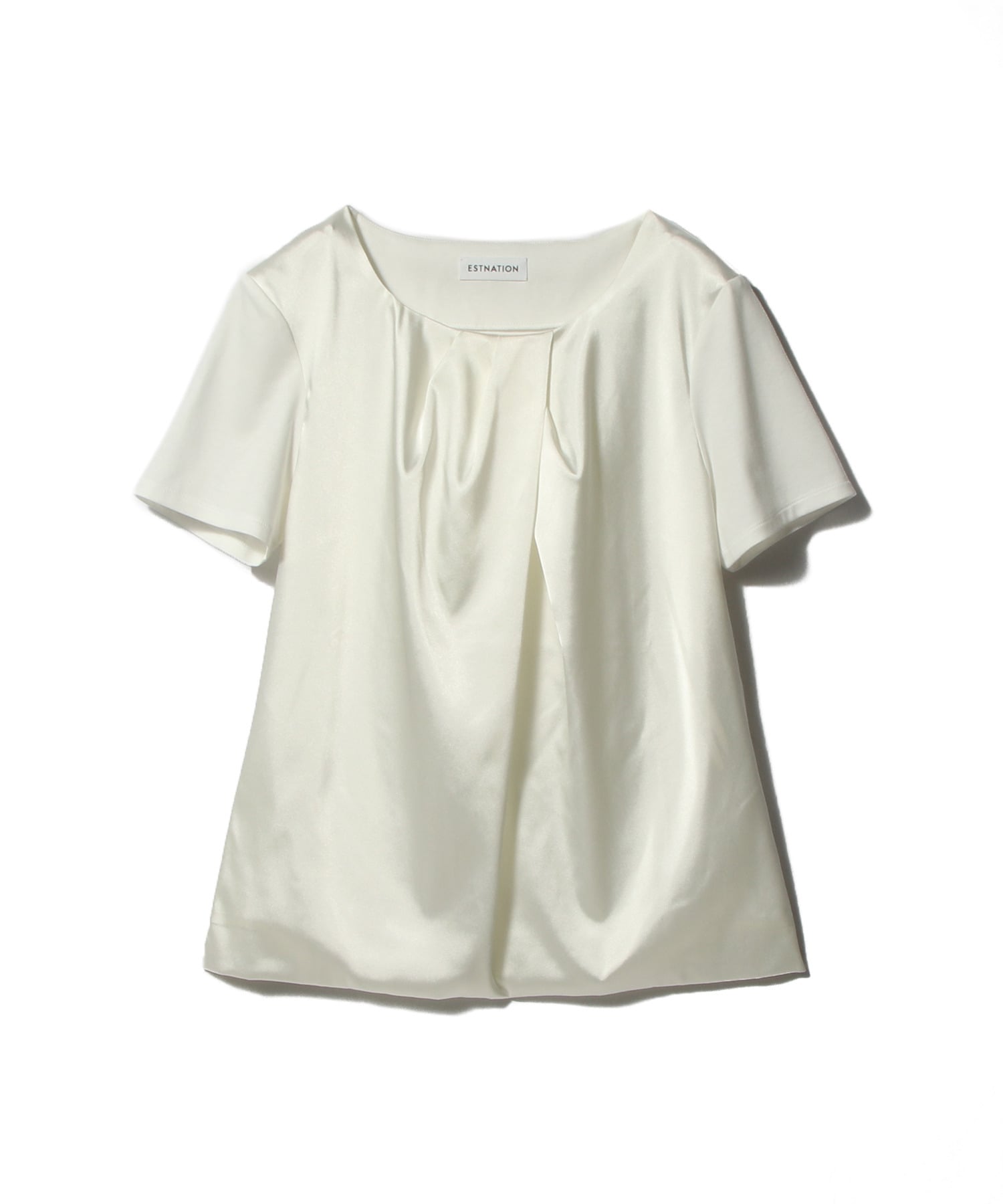 フロントに施したタックデザインが立体感とさりげない華やかさを演出し、シンプルながらも一枚で着映えする仕上がりに。