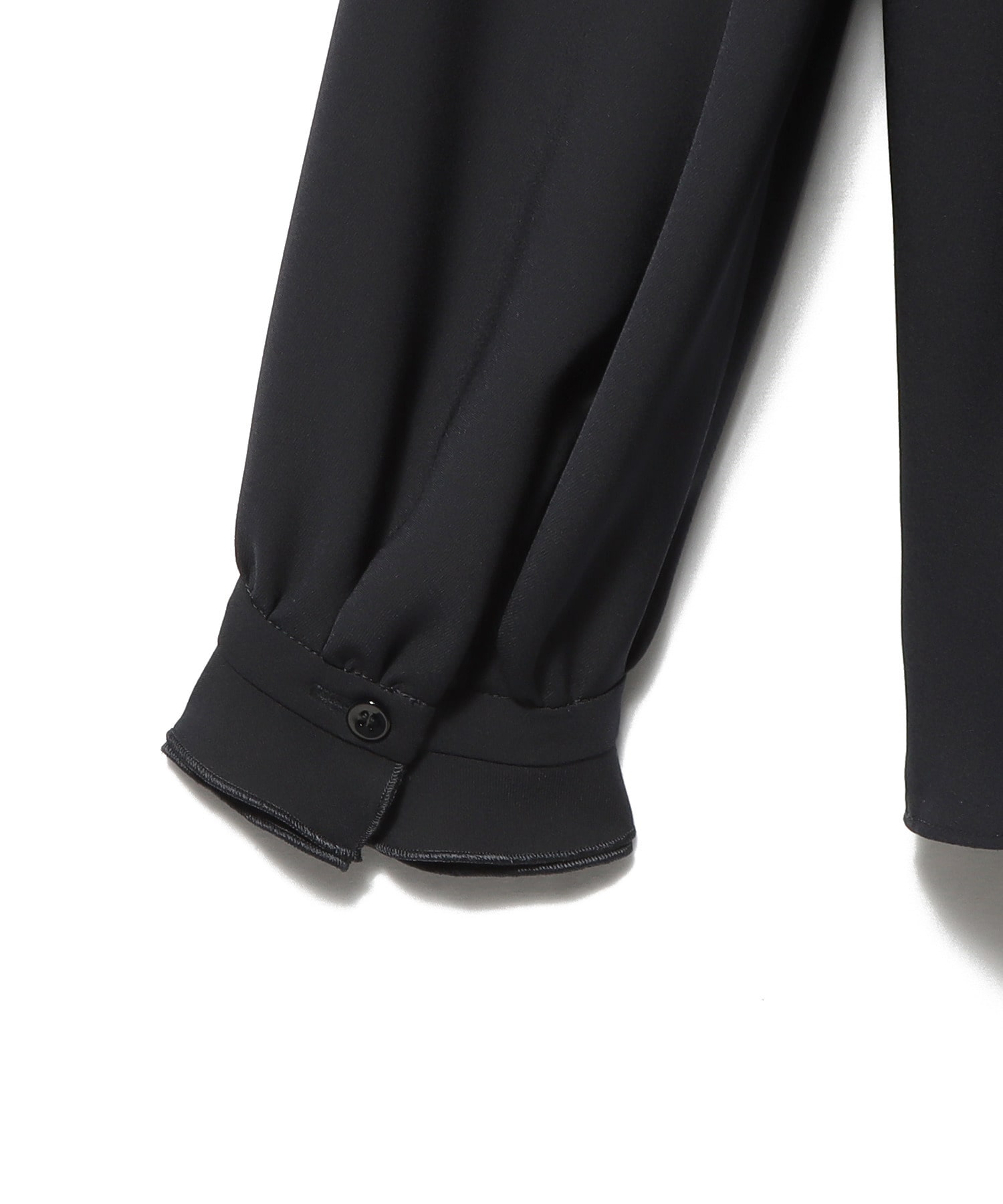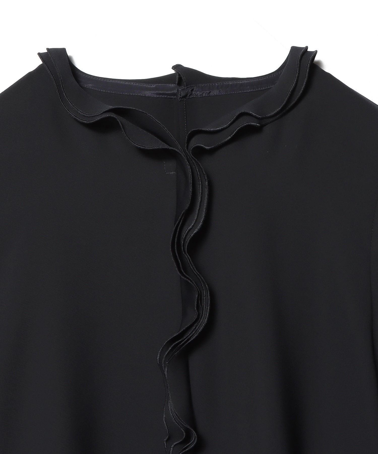 襟周りから前中心にかけて施した上品なフリルデザインがリュクスな印象のブラウス。