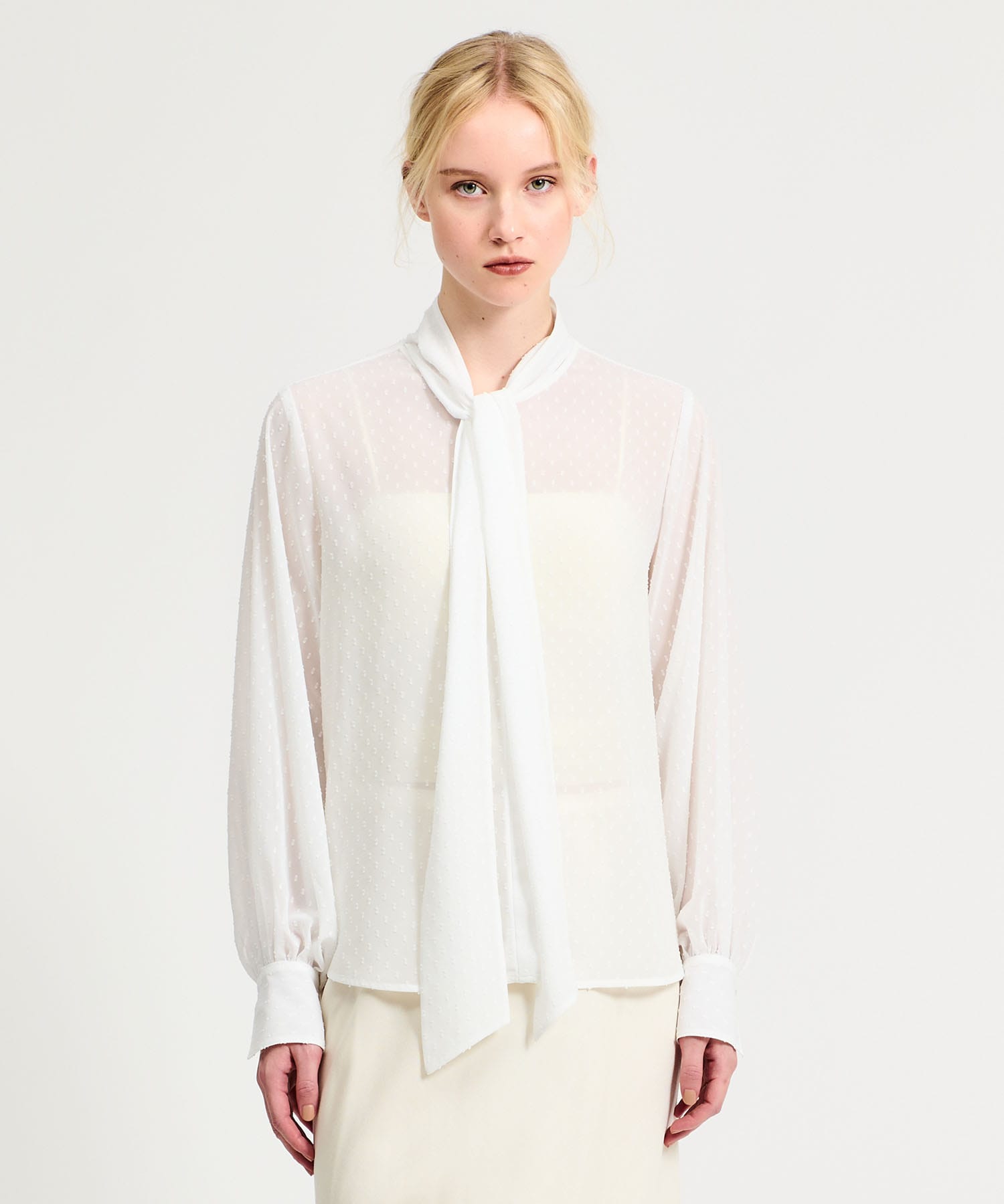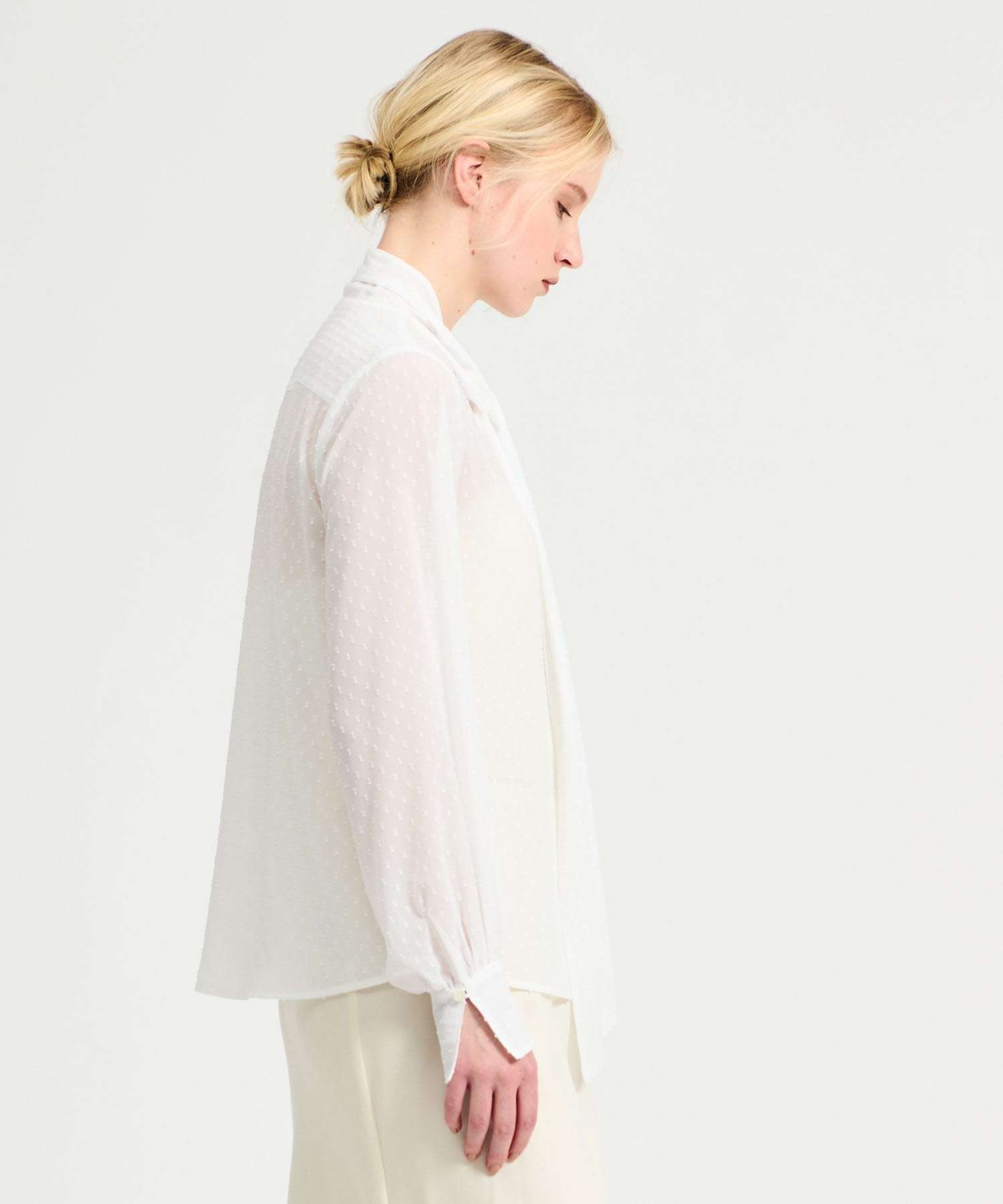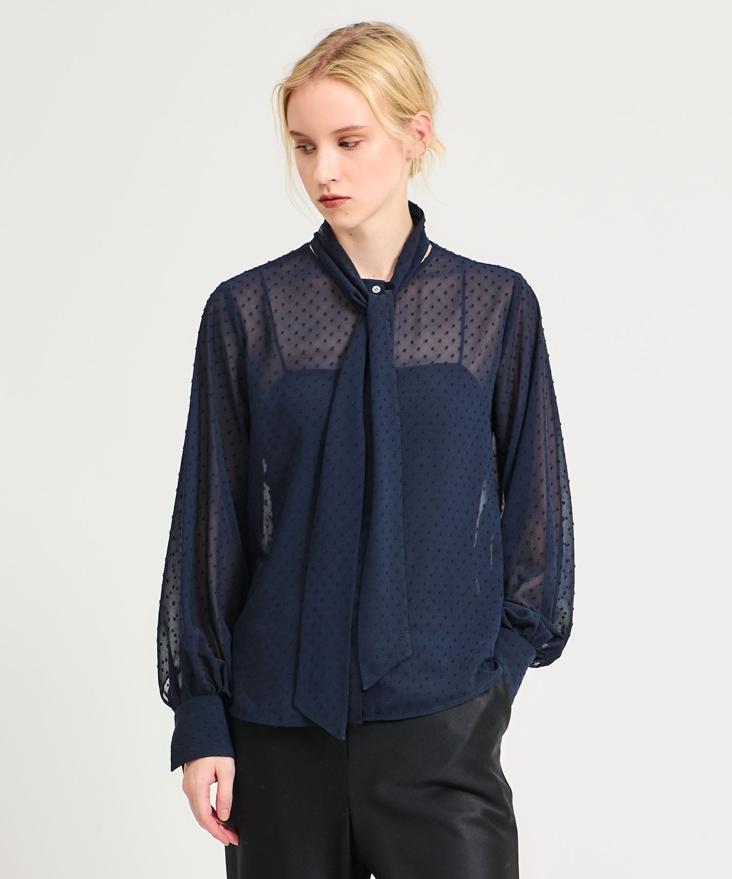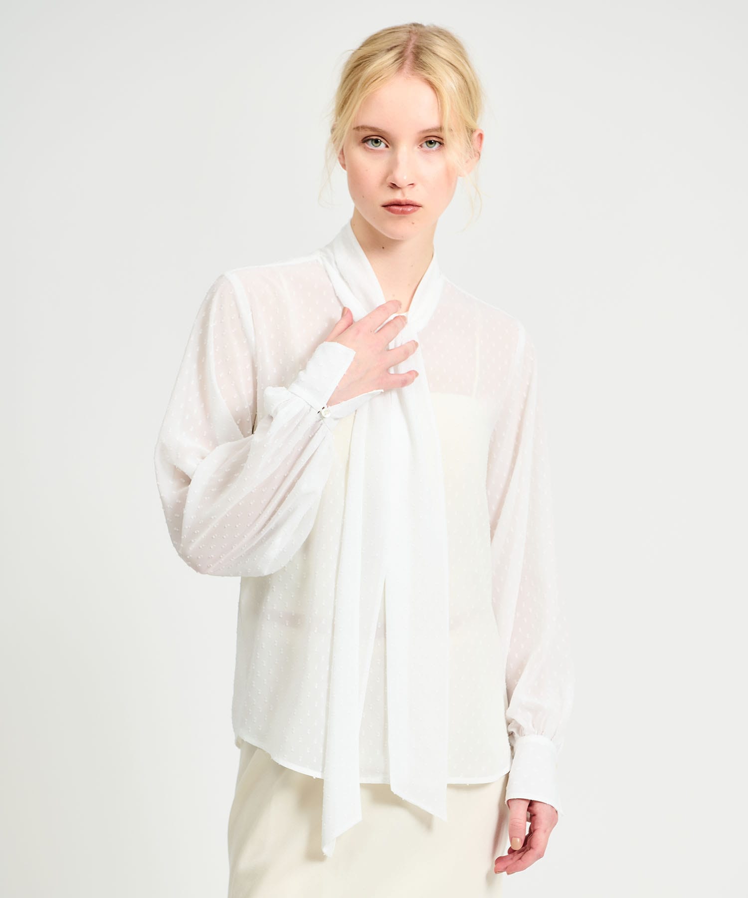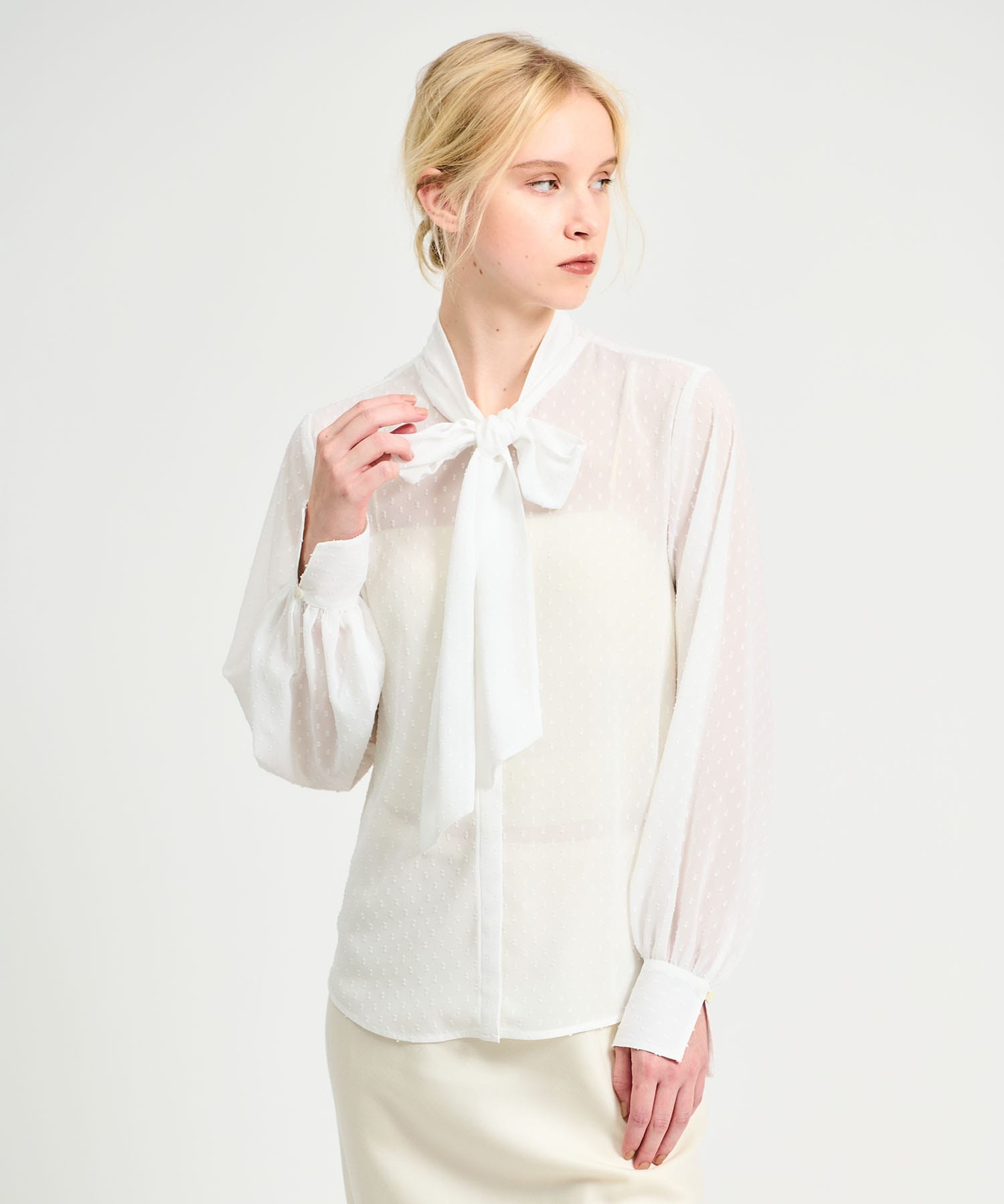 雪のようなやさしい表情が魅力の、ドット柄ボウタイブラウス。