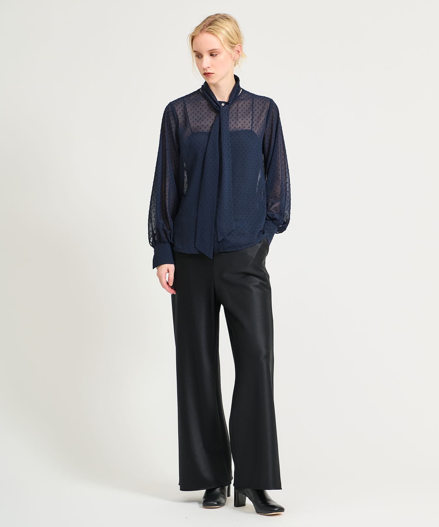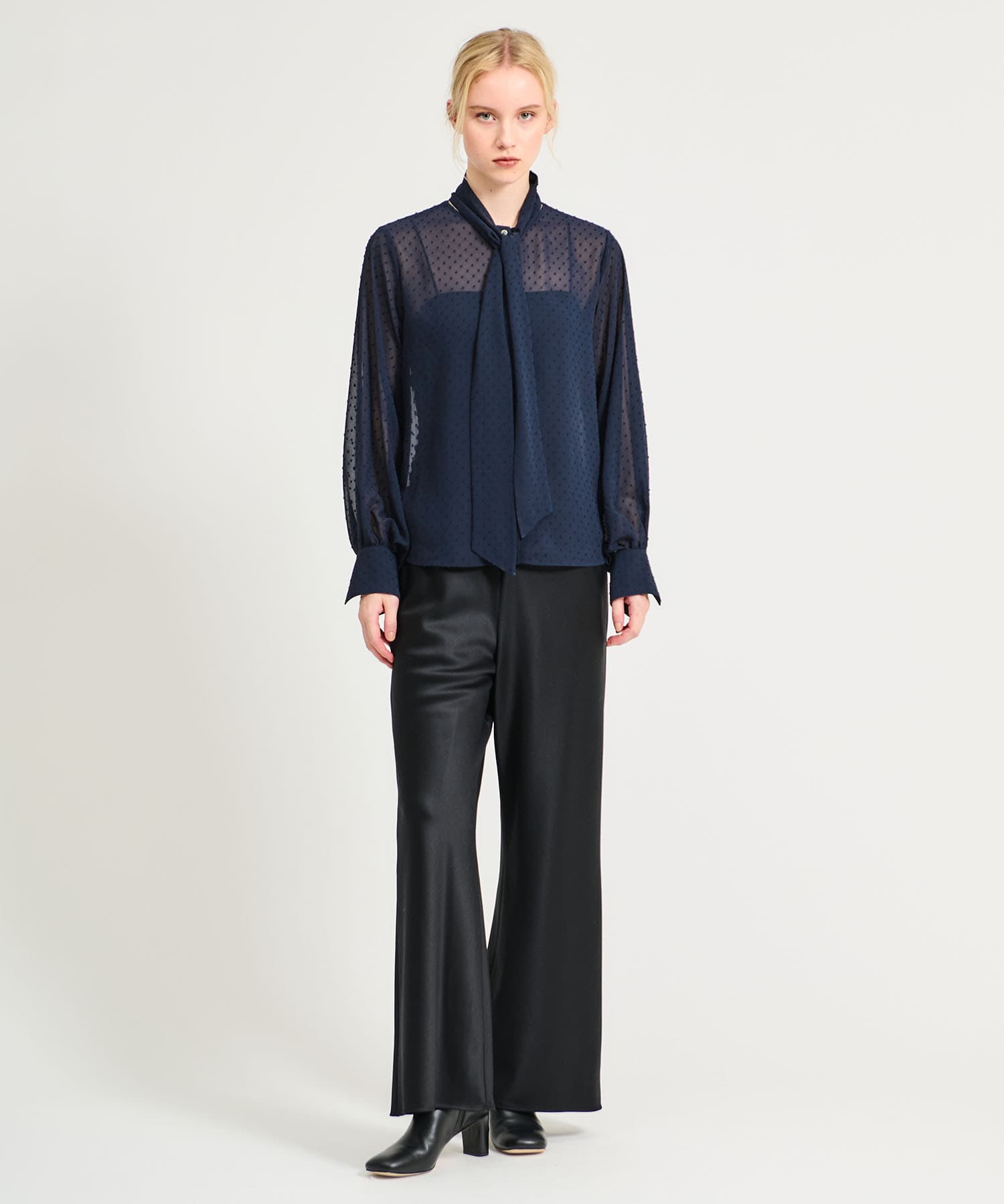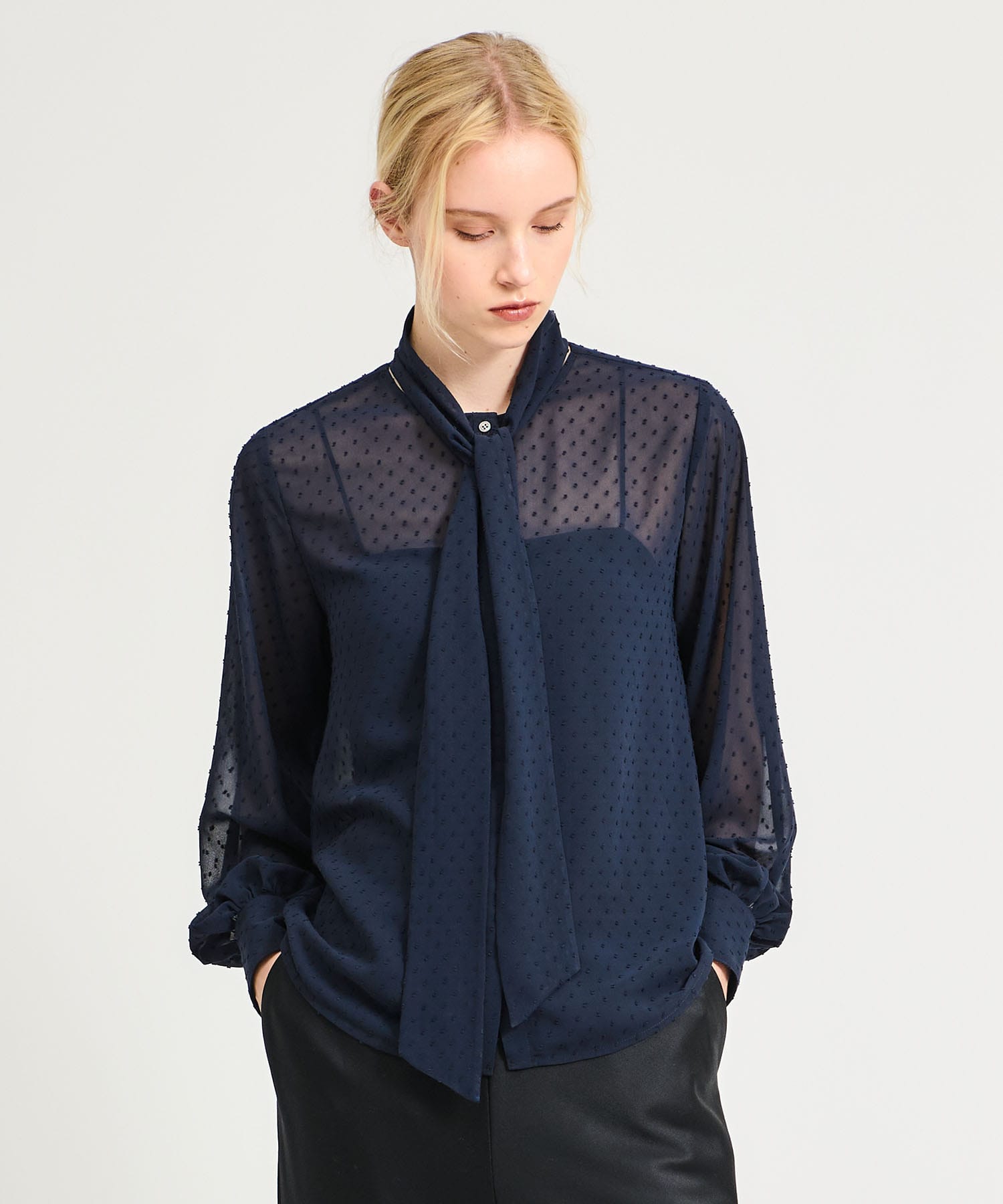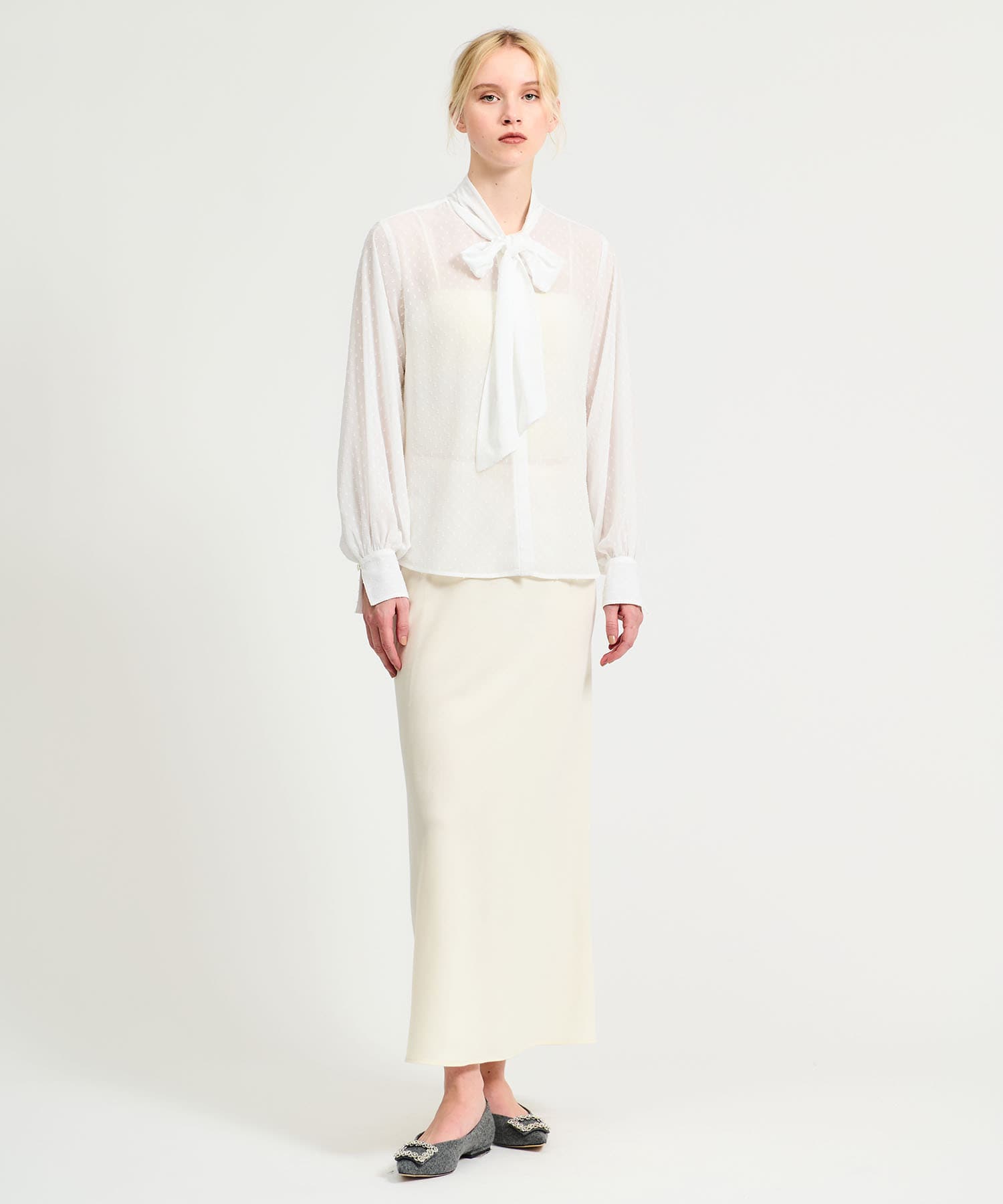 雪のようなやさしい表情が魅力の、ドット柄ボウタイブラウス。