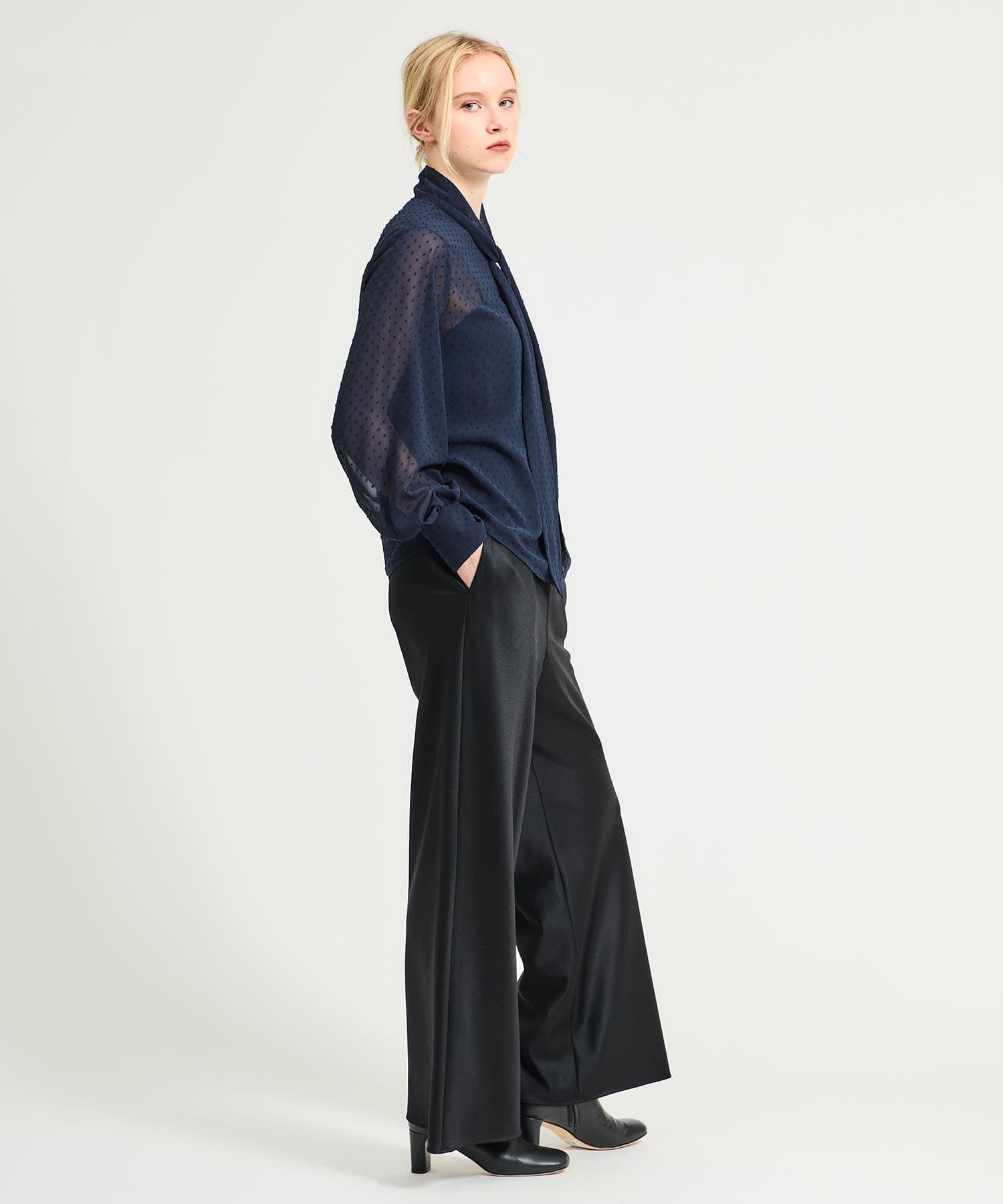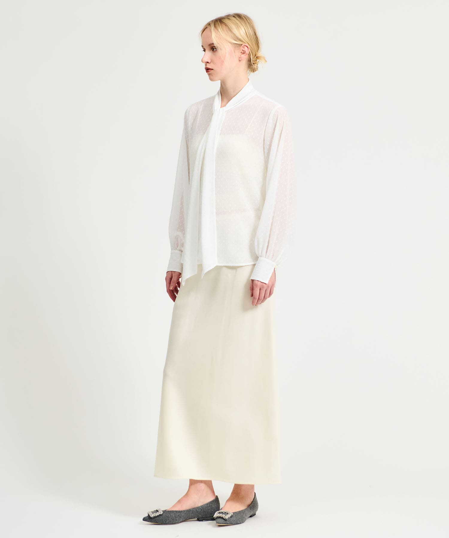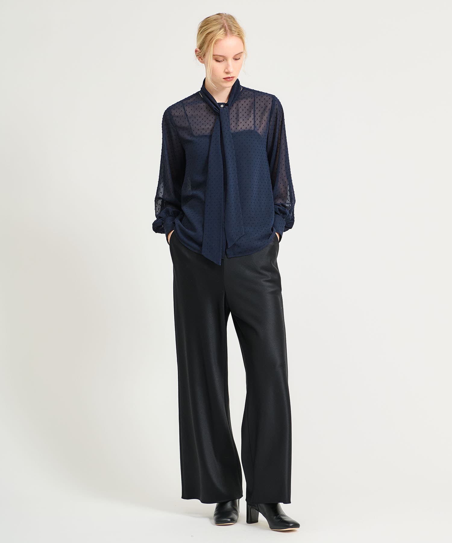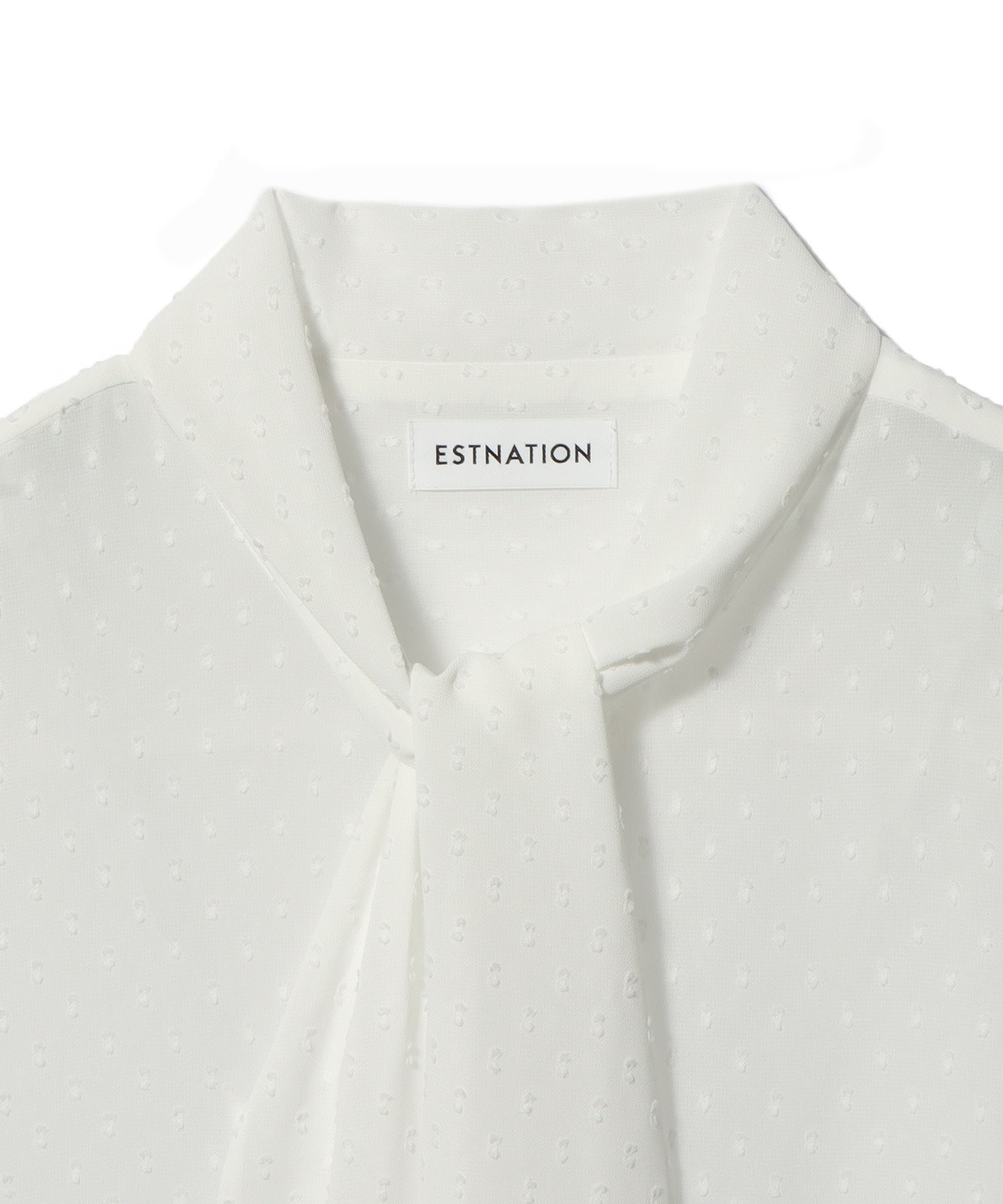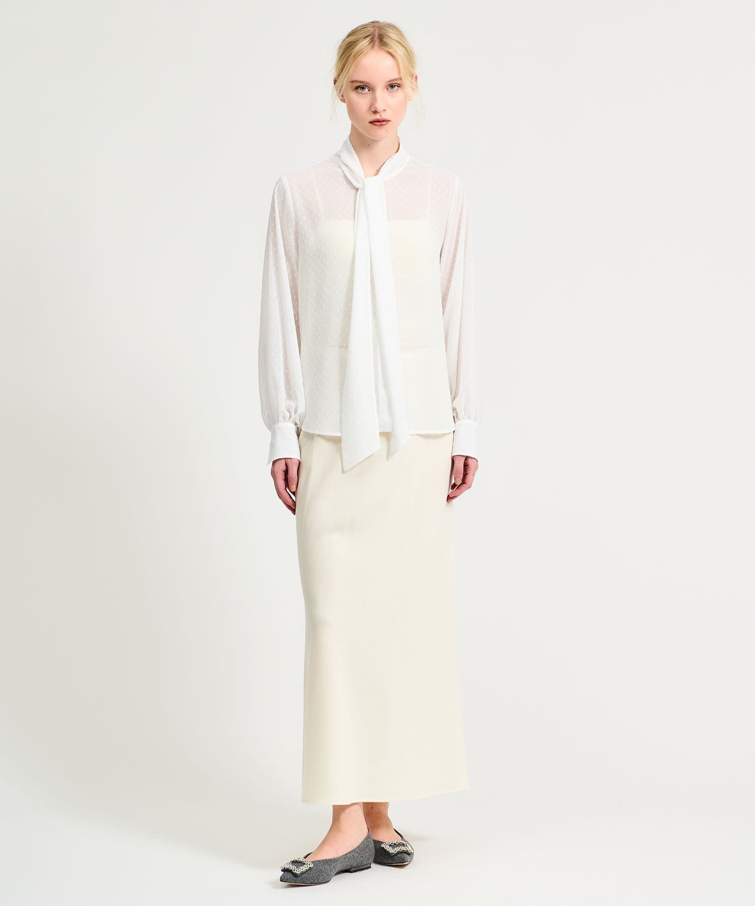 雪のようなやさしい表情が魅力の、ドット柄ボウタイブラウス。