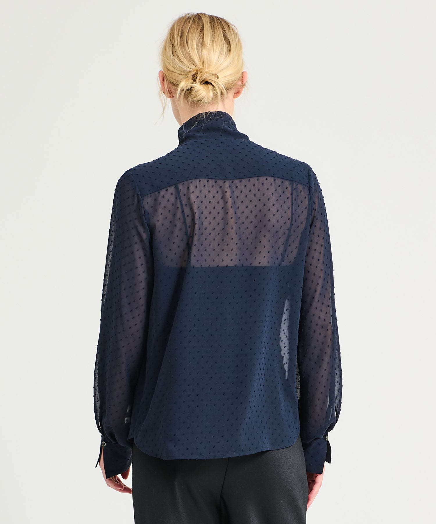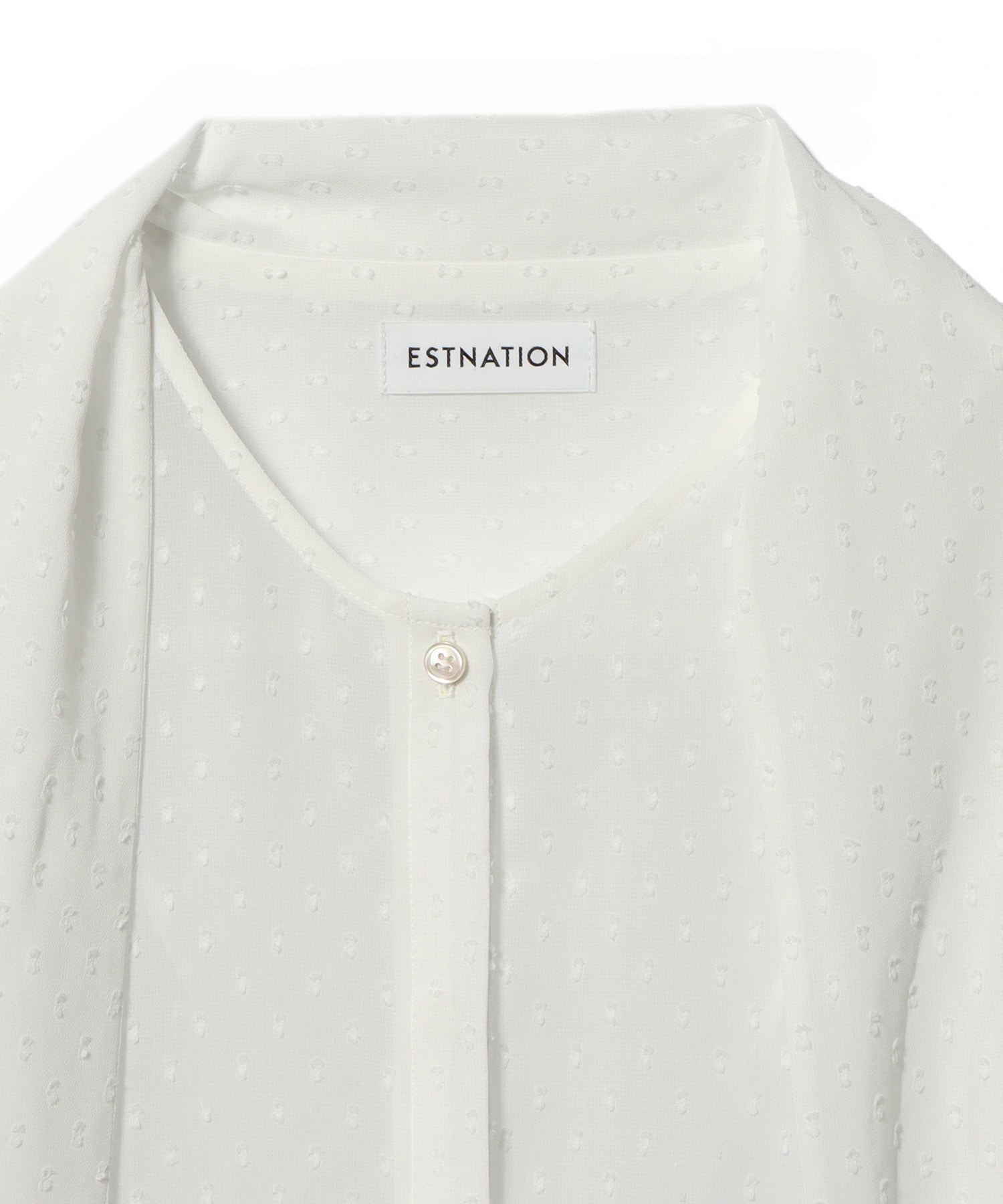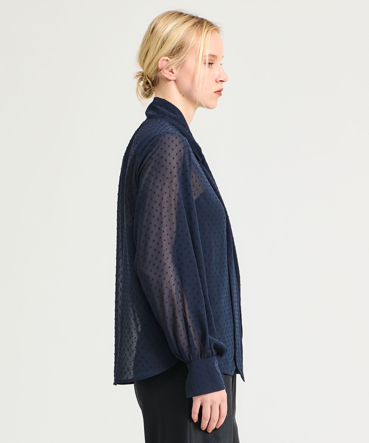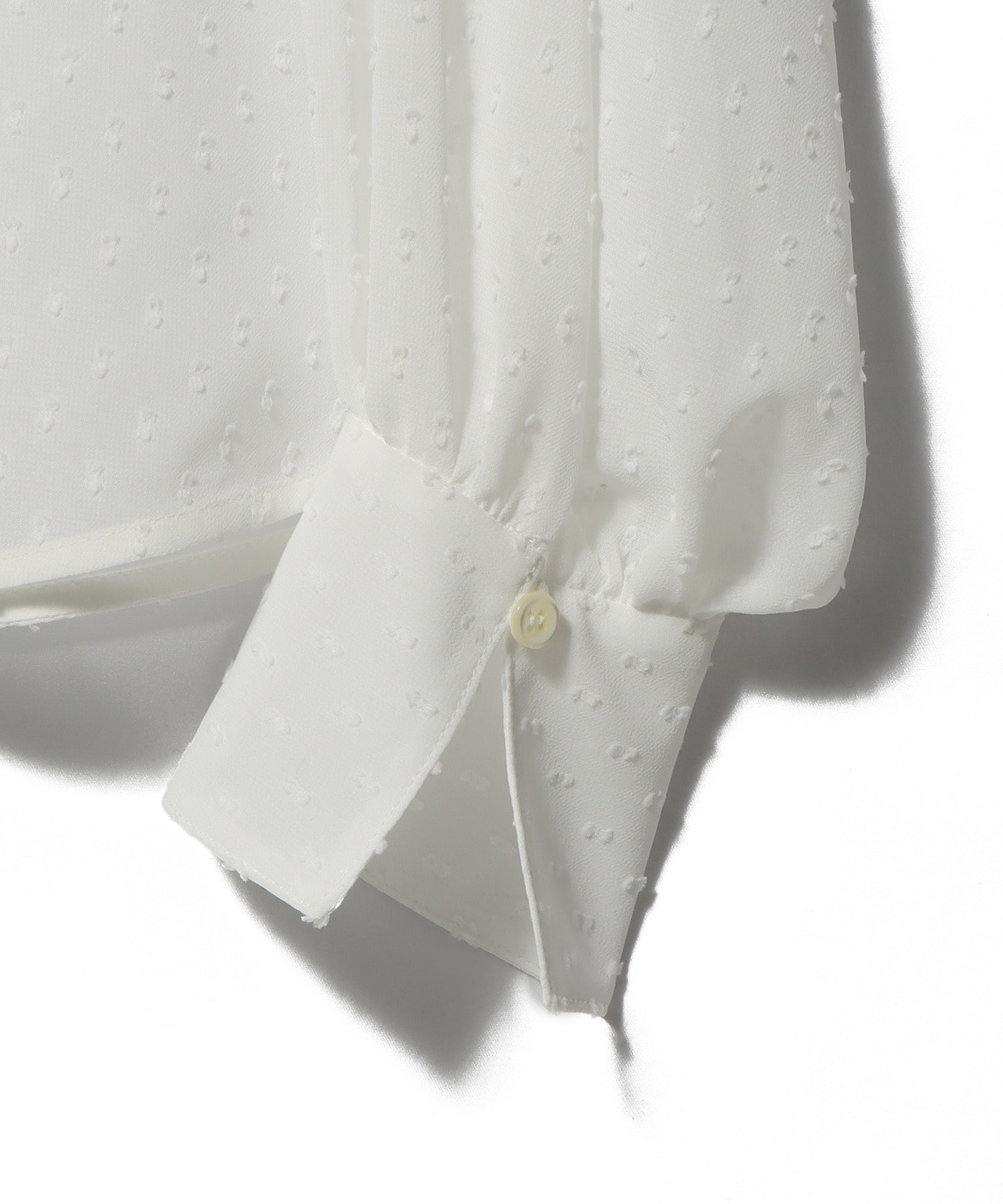 透け感のあるジョーゼット素材をベースに、ドビー織りで繊細なドット柄を表現。