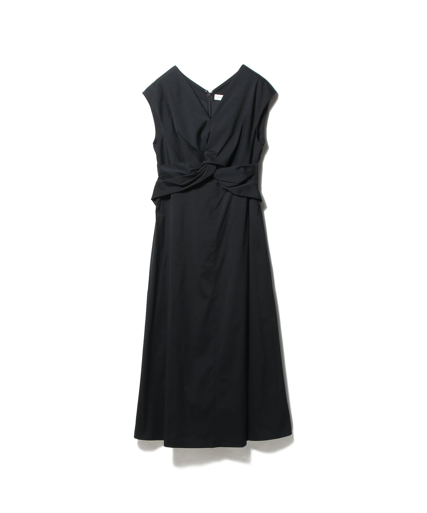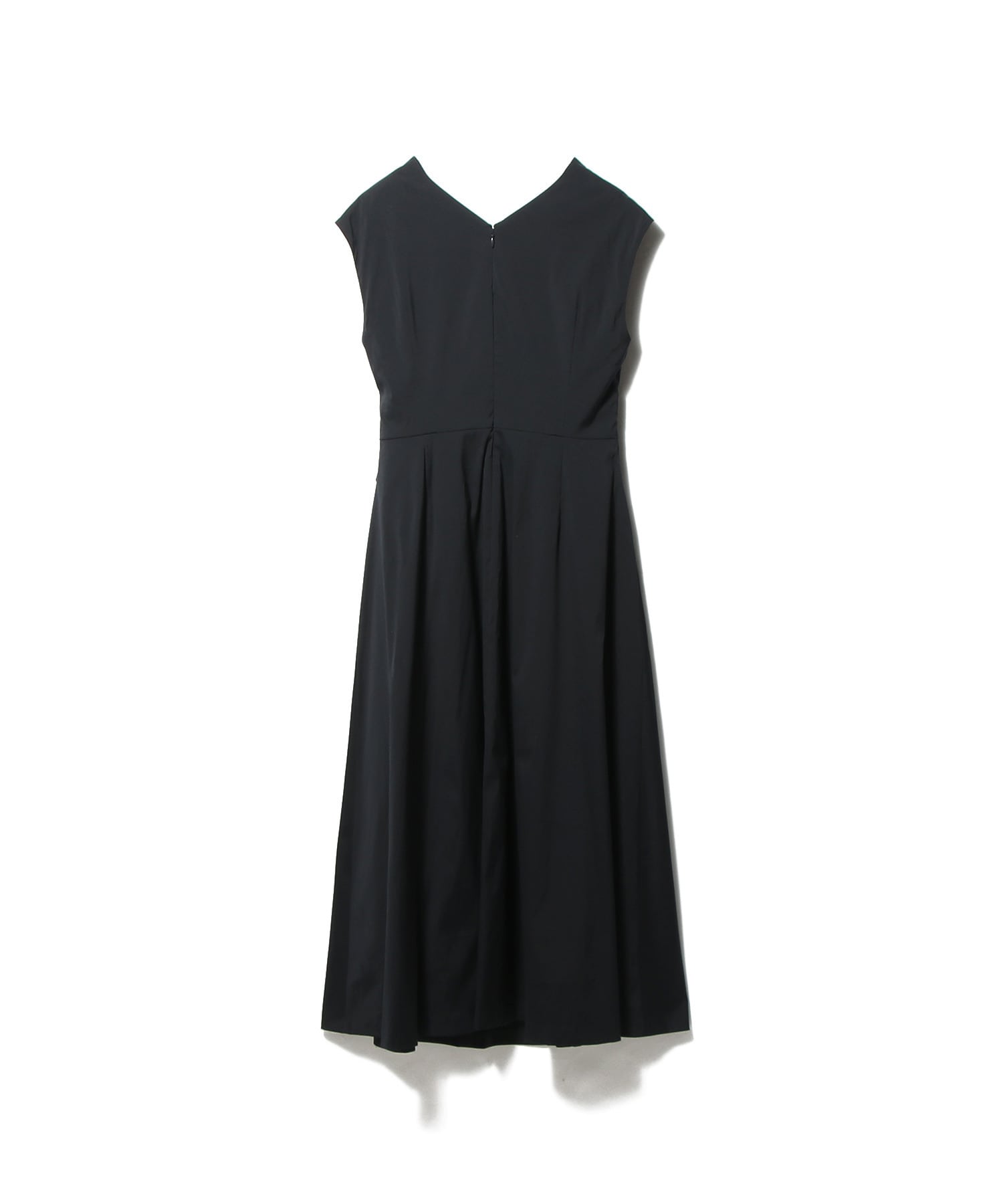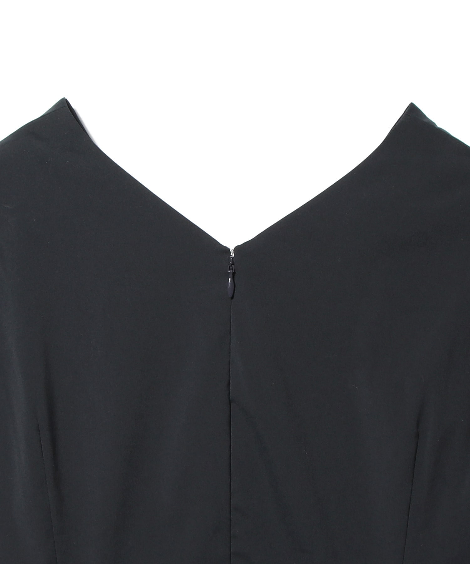 カシュクールのように施したディテールがポイントで、Vネックラインでフィット&フレアーのシルエット。