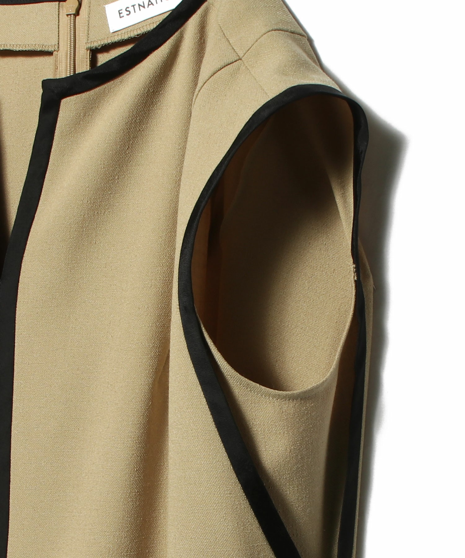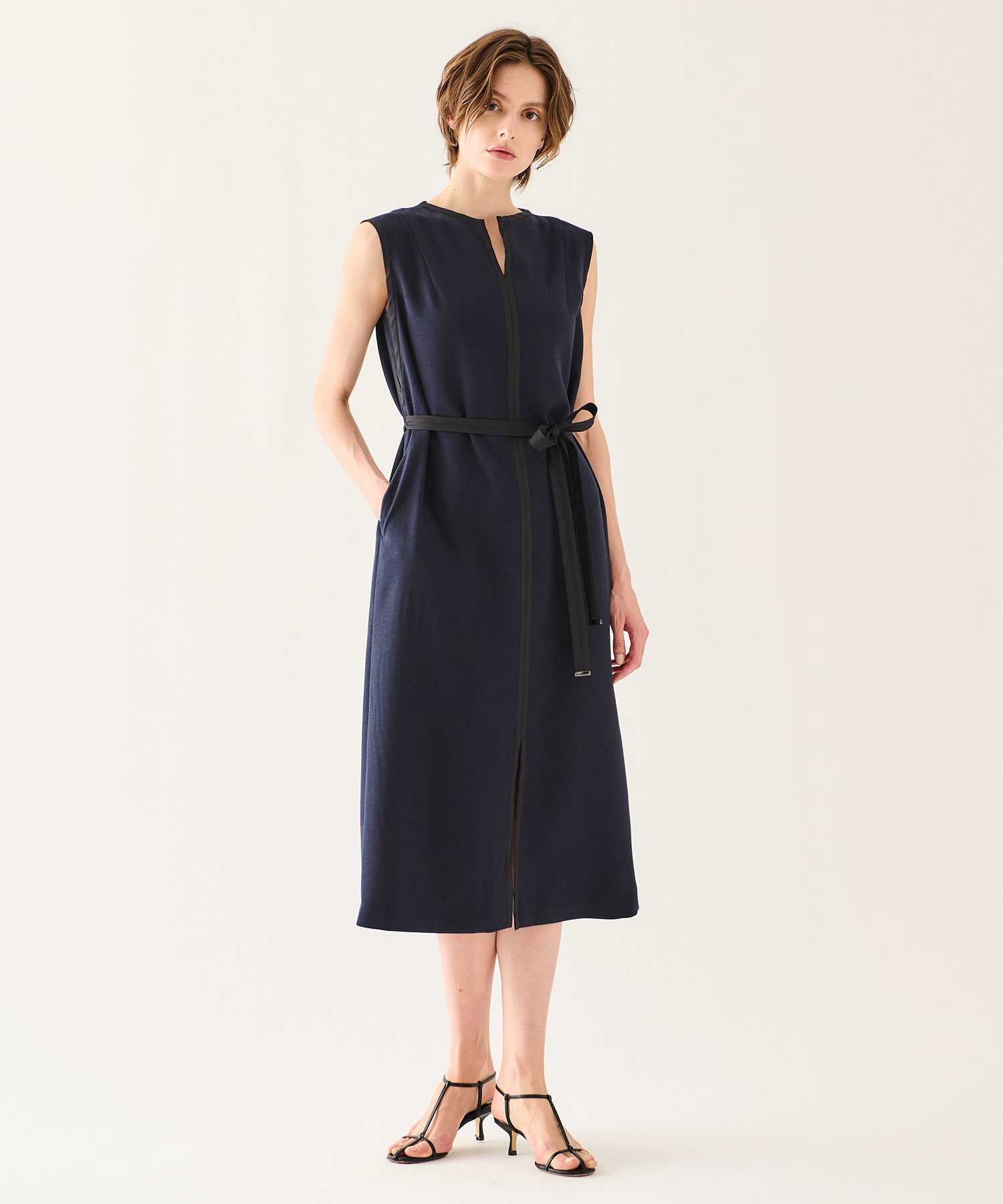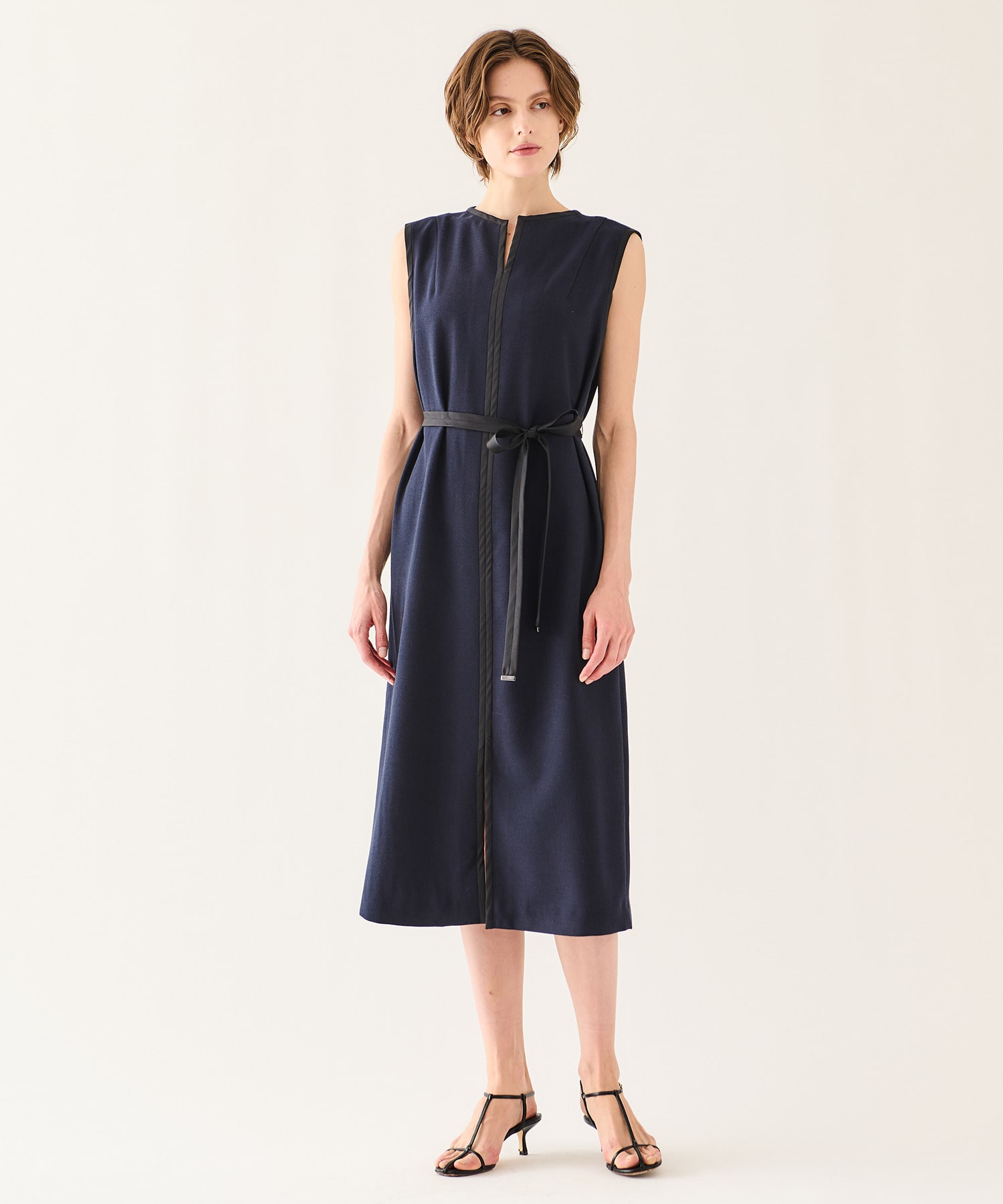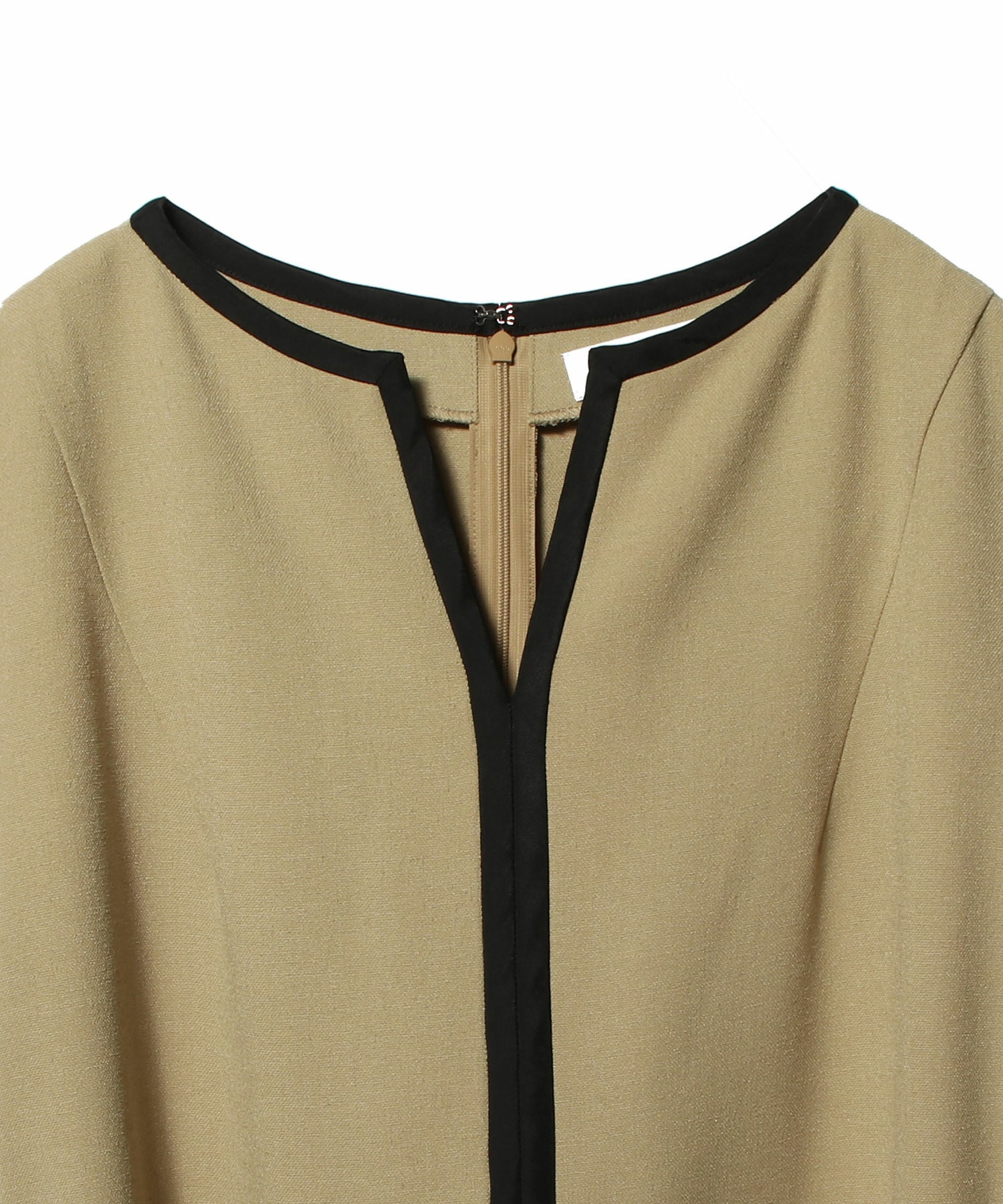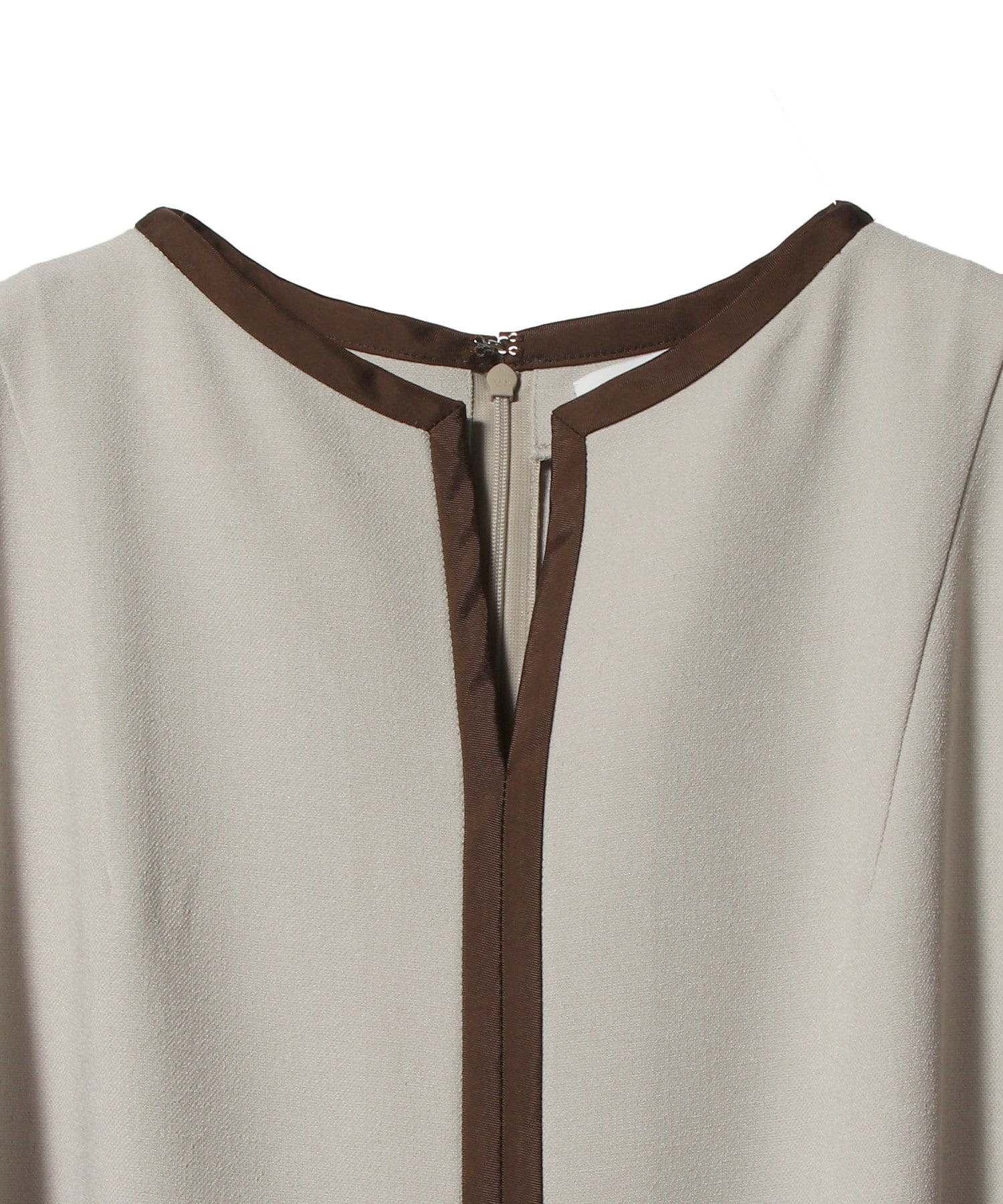 バイカラー配色のパイピング切り替えを施し、アクセントを効かせたワンピース。
