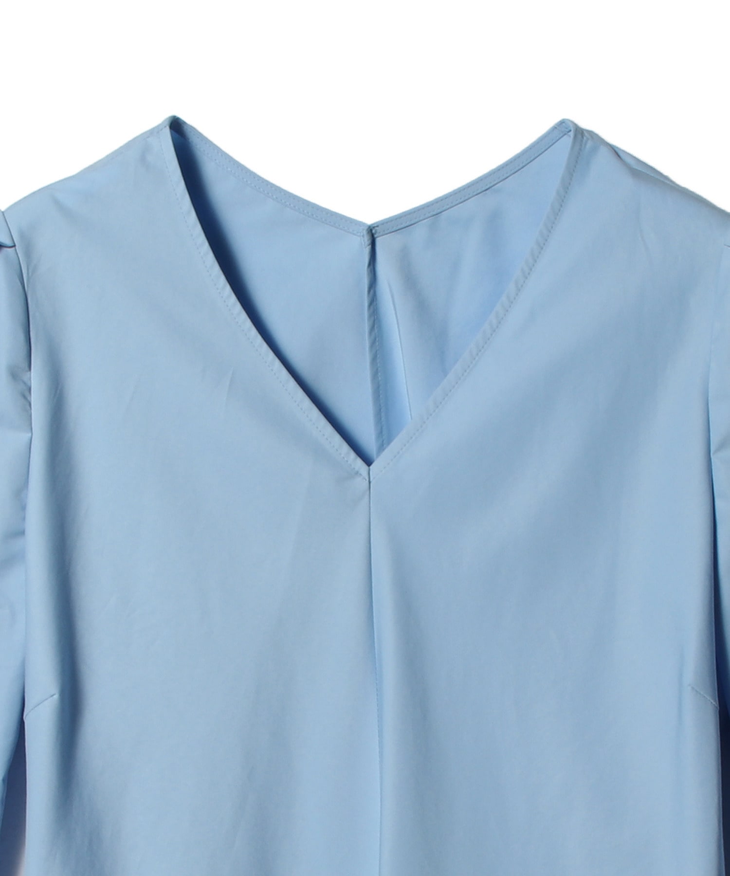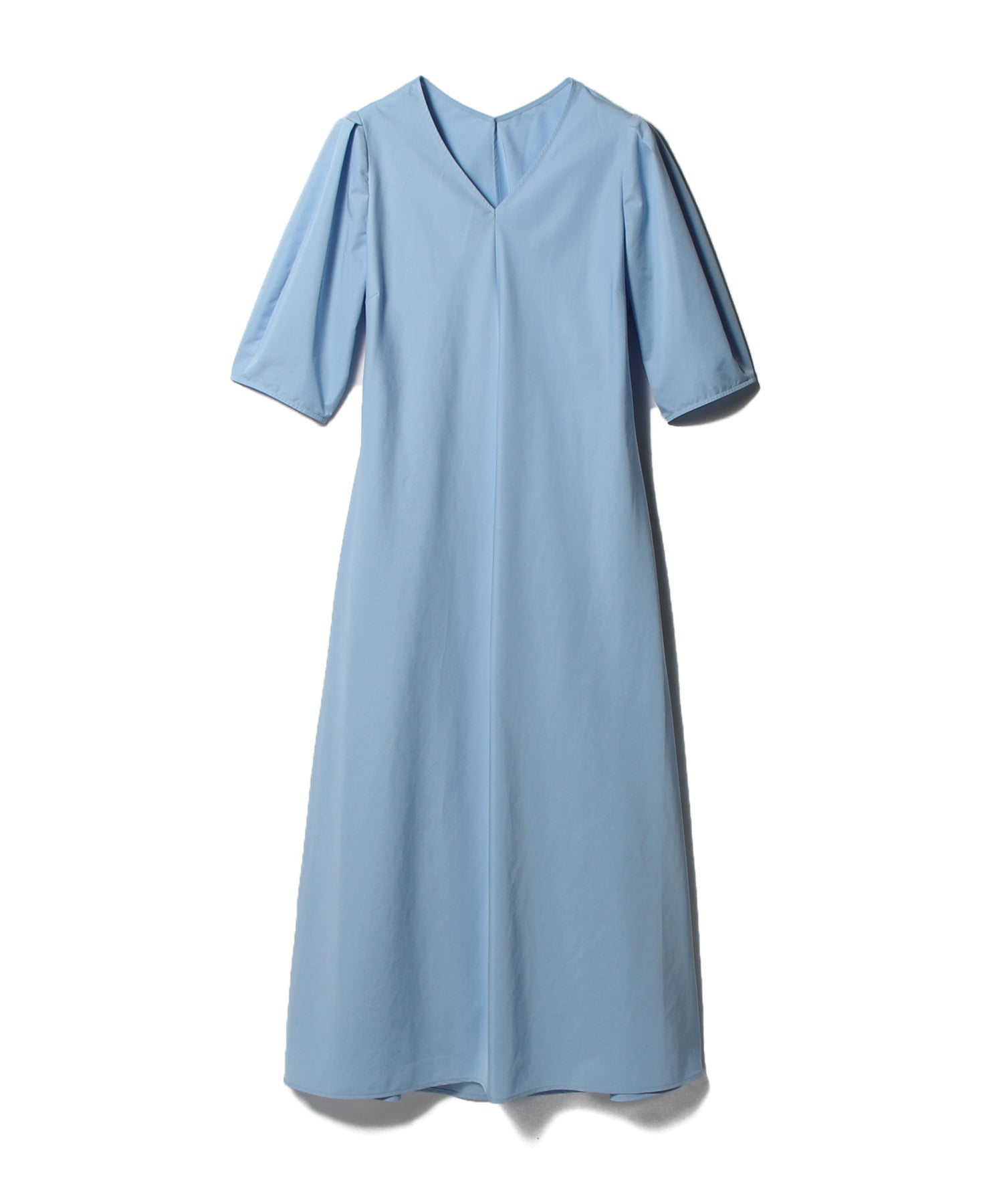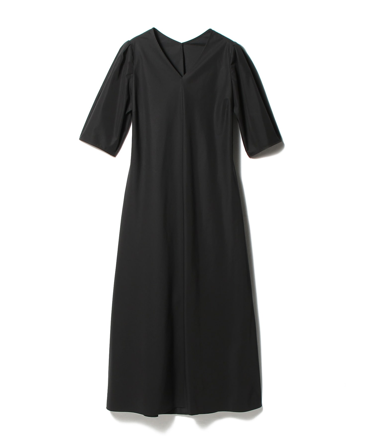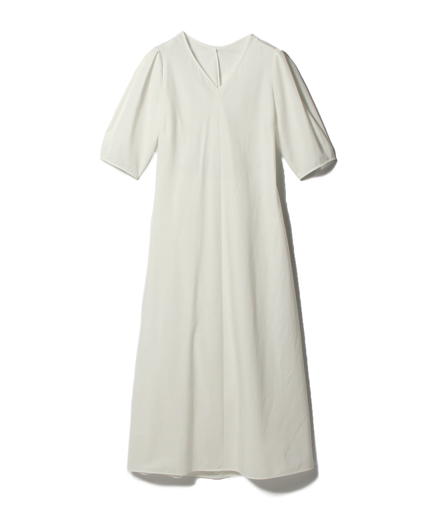 生地をバイヤスにすることでシルエットを出し、五分袖にタックを入れたパフスリーブデザインがフェミニンな印象に。