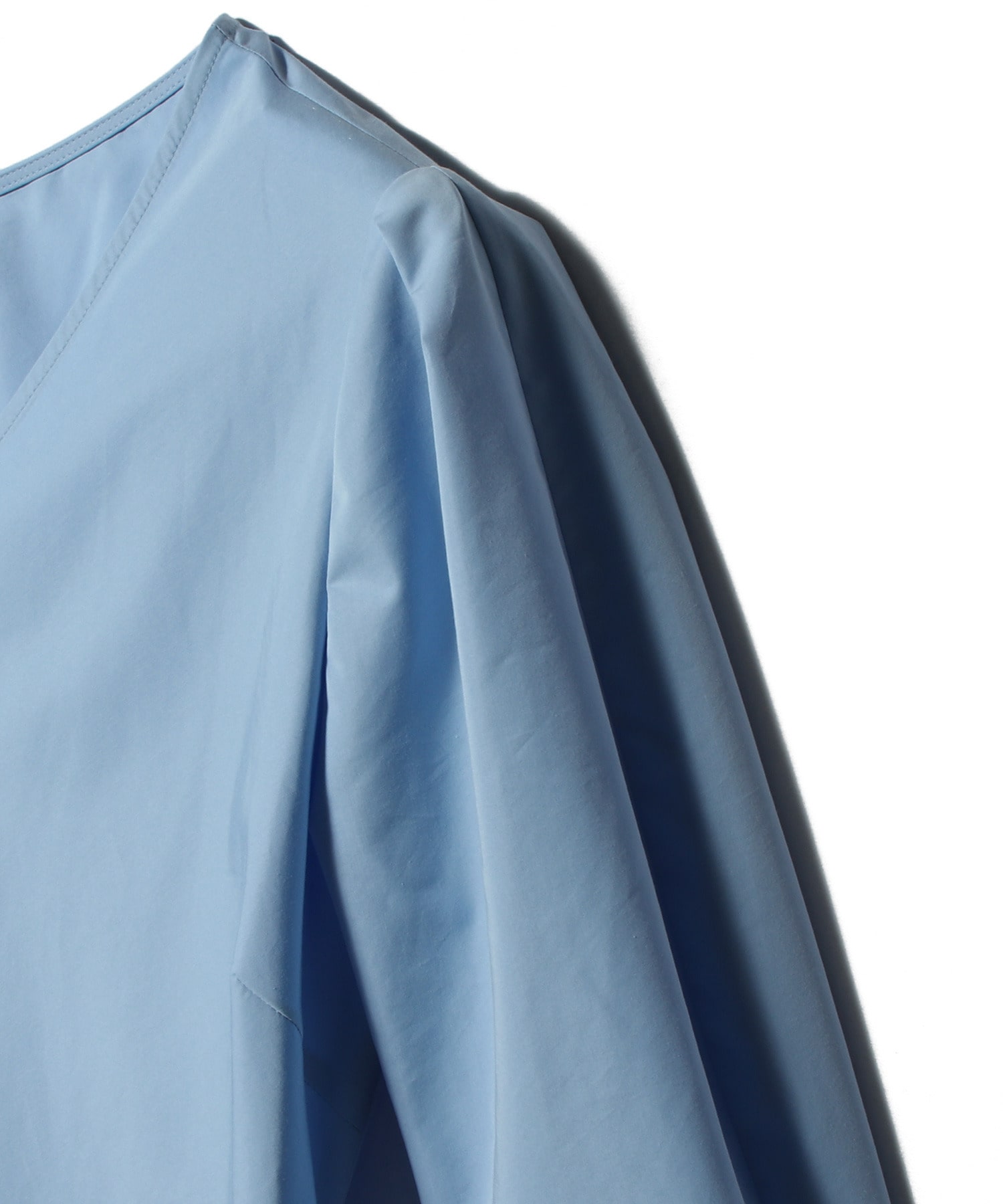 やや光沢感のある、コットンとポリエステルのタイプライター素材を使用。ポリエステルを入れることでシワになりにくいのもポイントです。