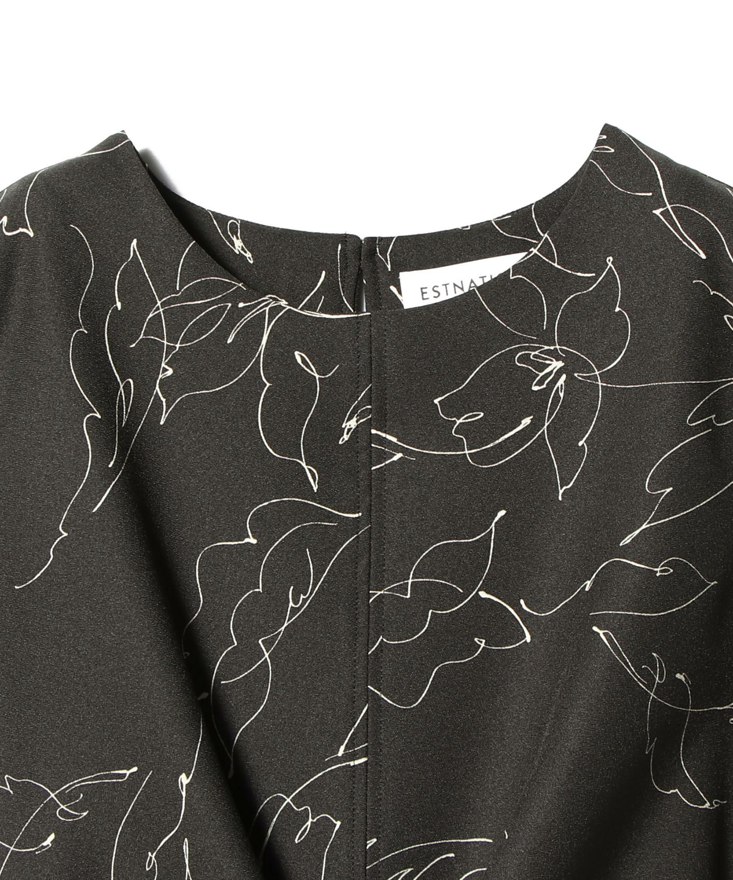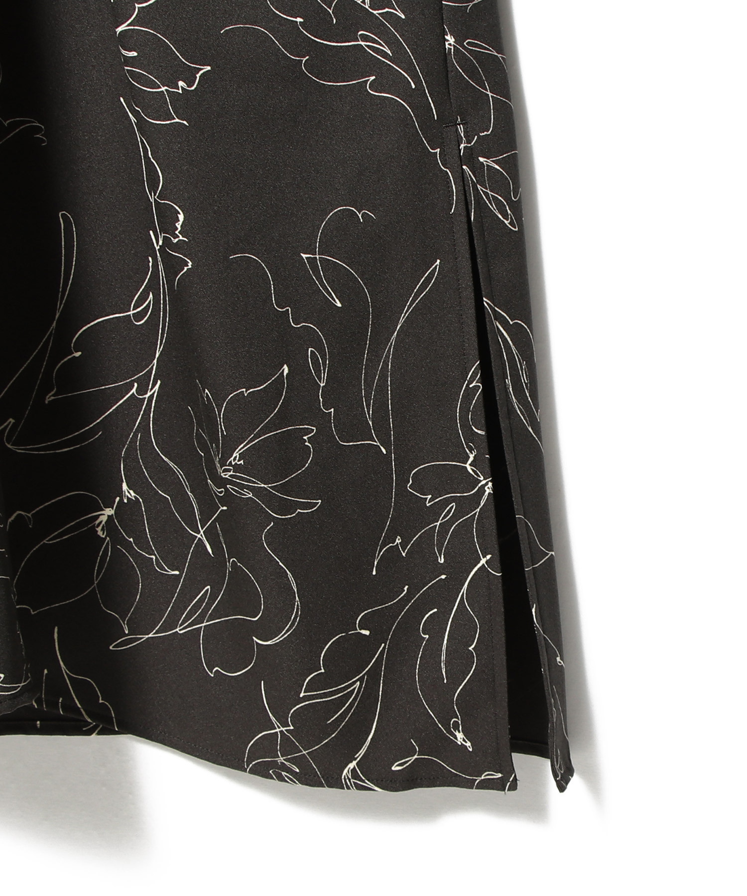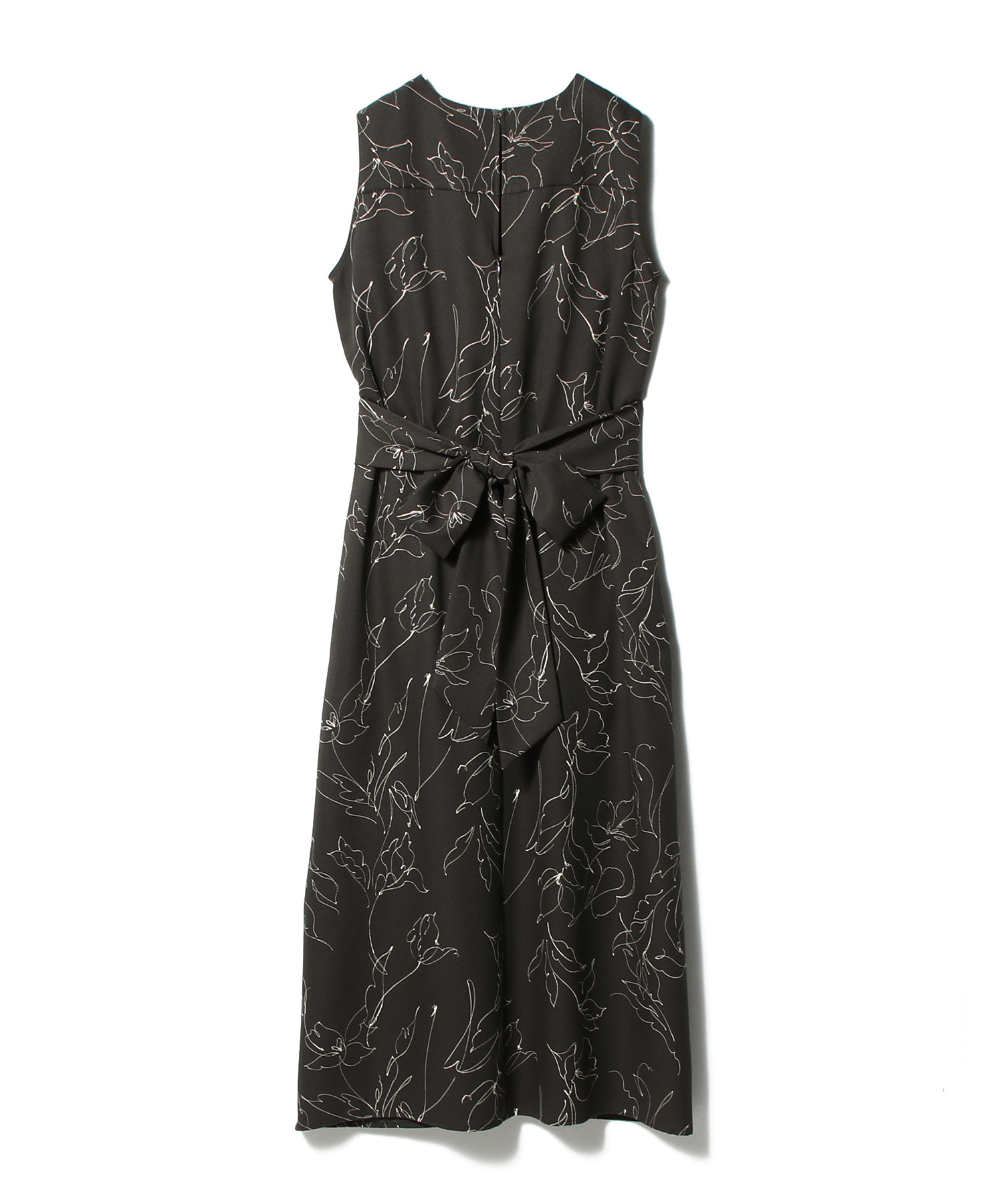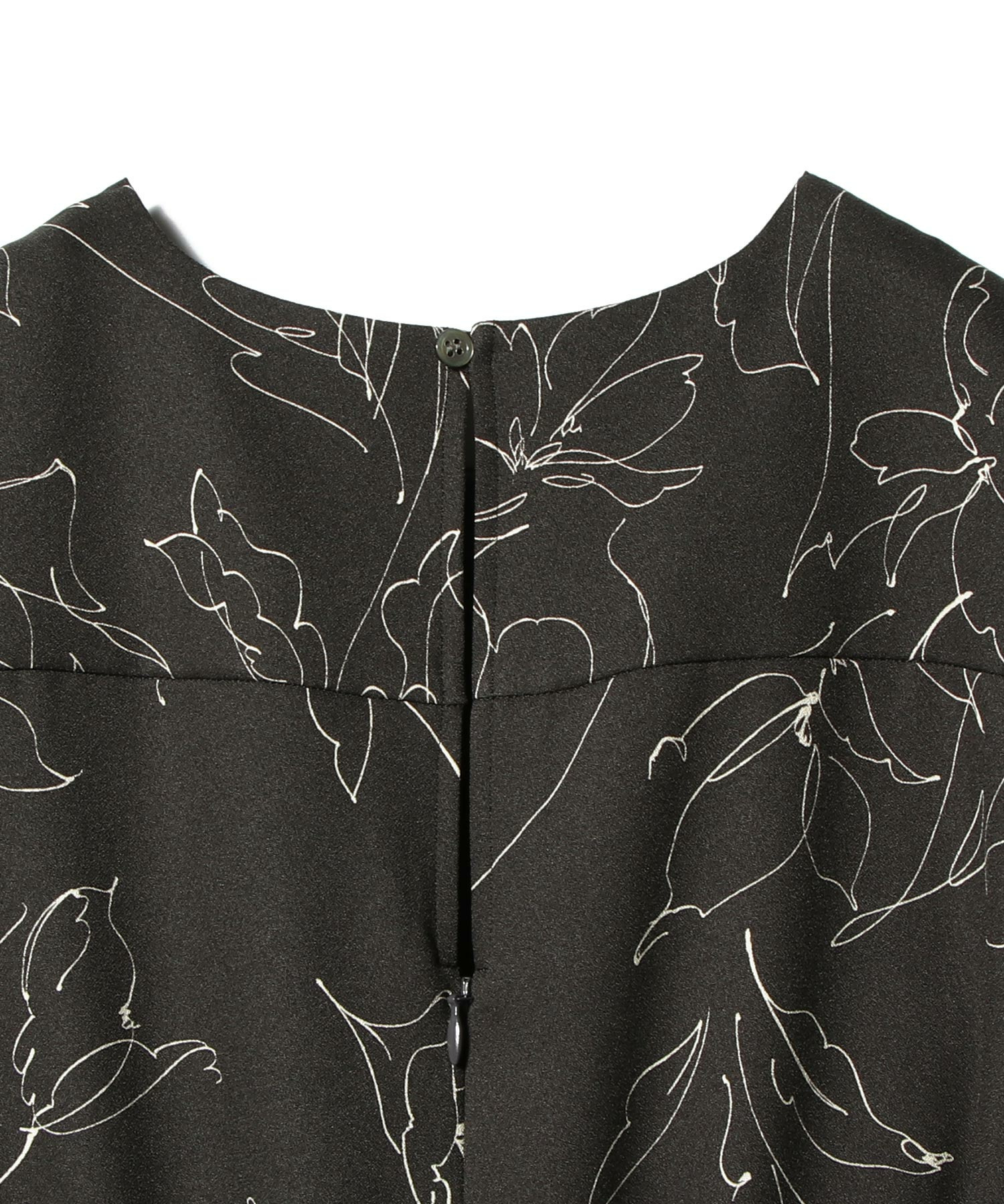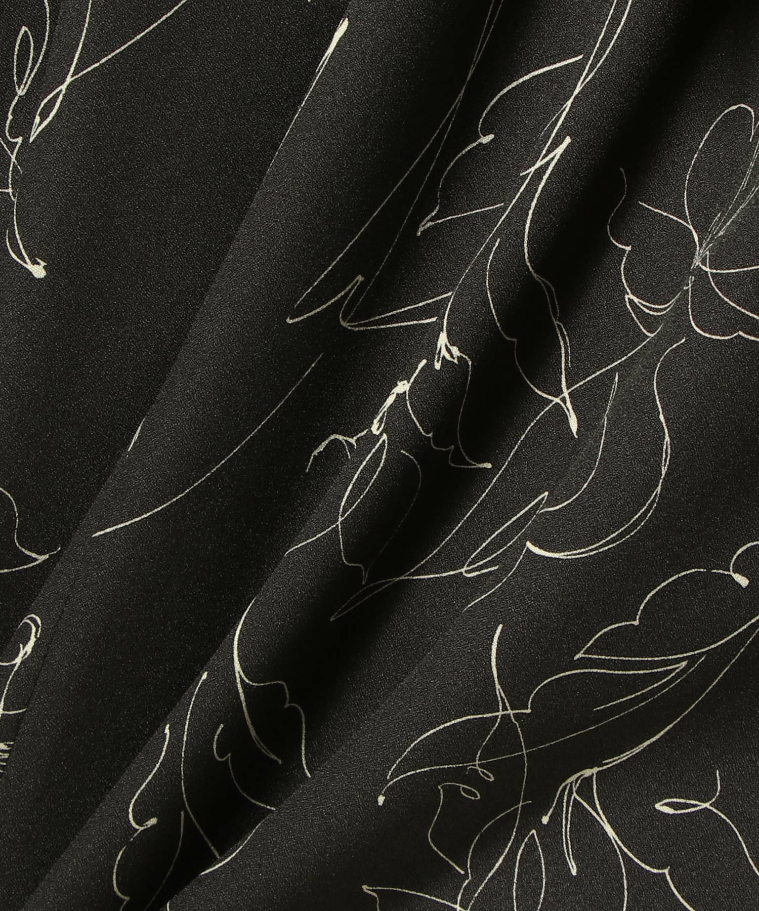 手描きのような繊細なラインで描かれた花柄が、甘さを抑えた大人の印象を演出する一着です。