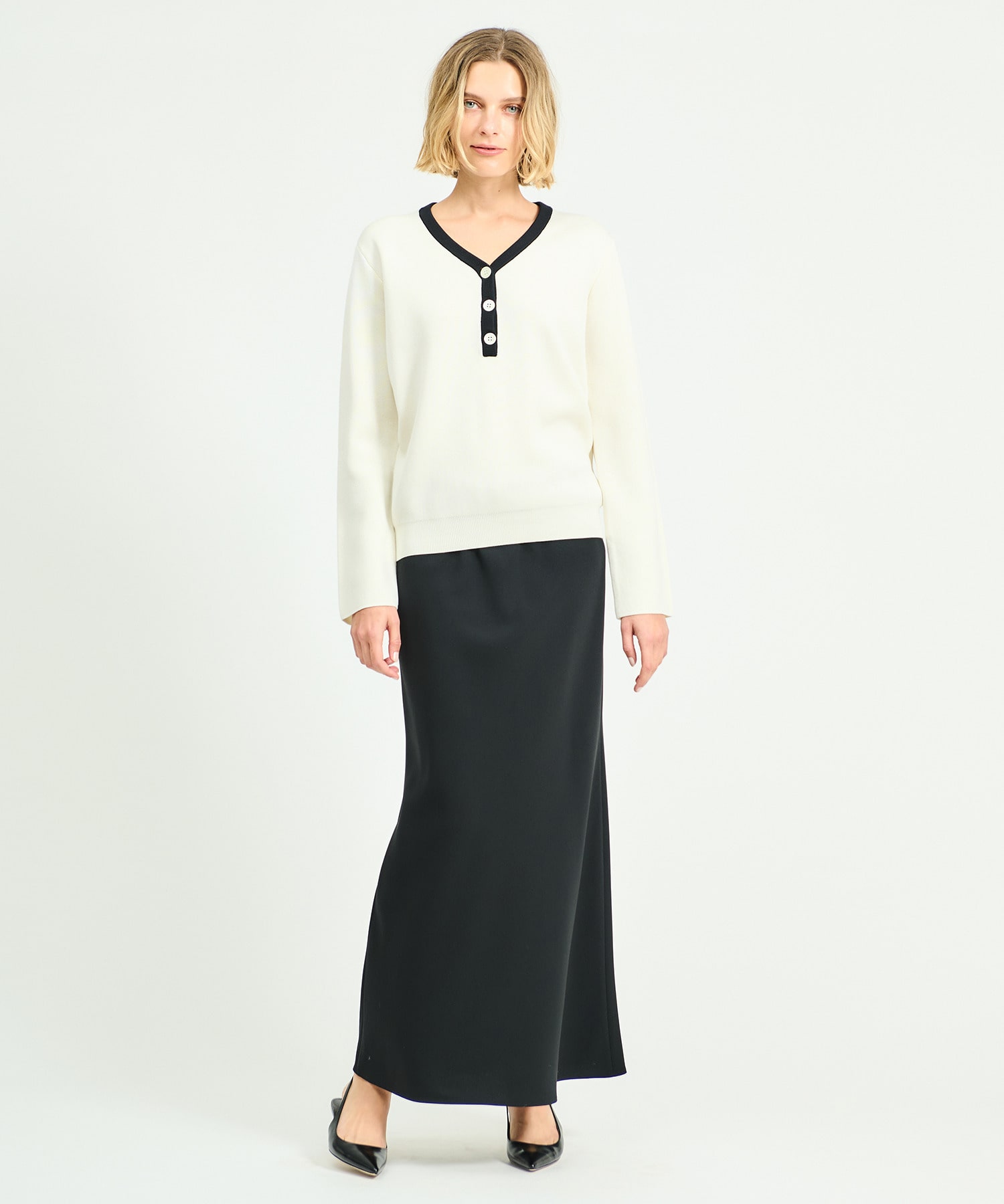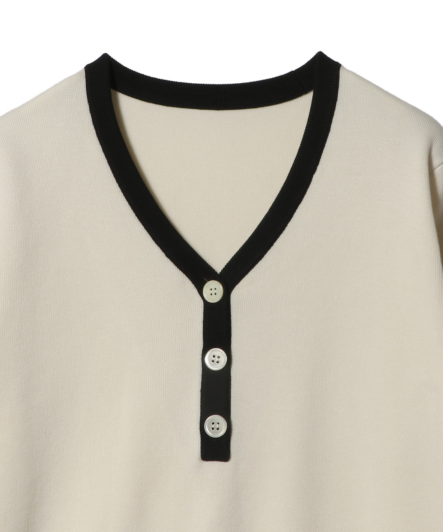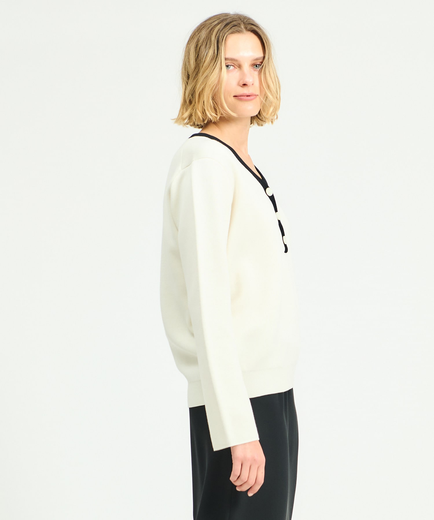 モノトーンのバイカラーデザインと、カジュアルながらも品のあるヘンリーネックが絶妙なバランスのプルオーバー。