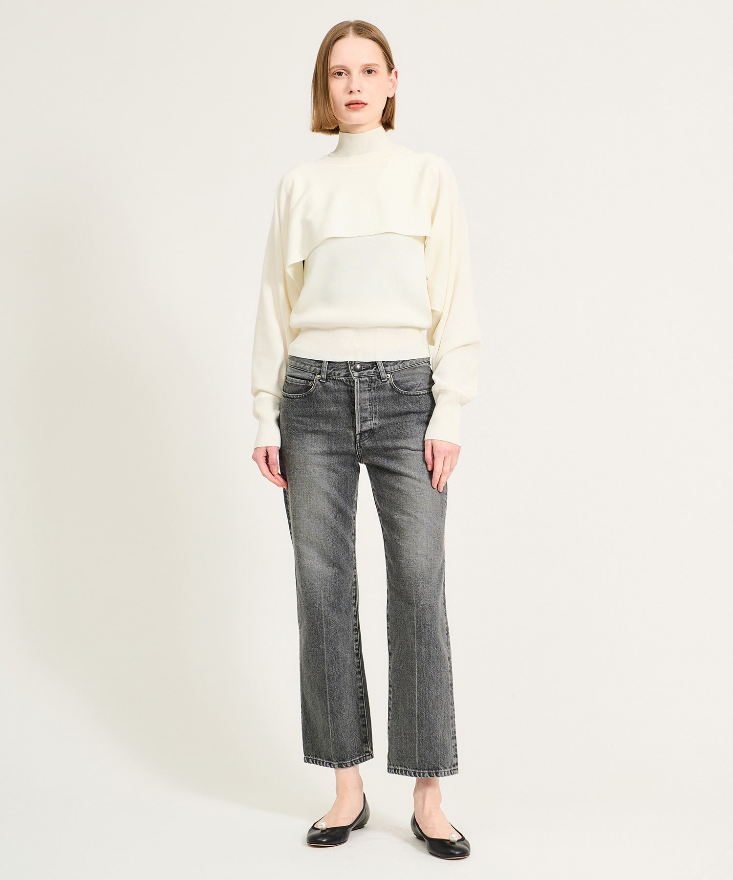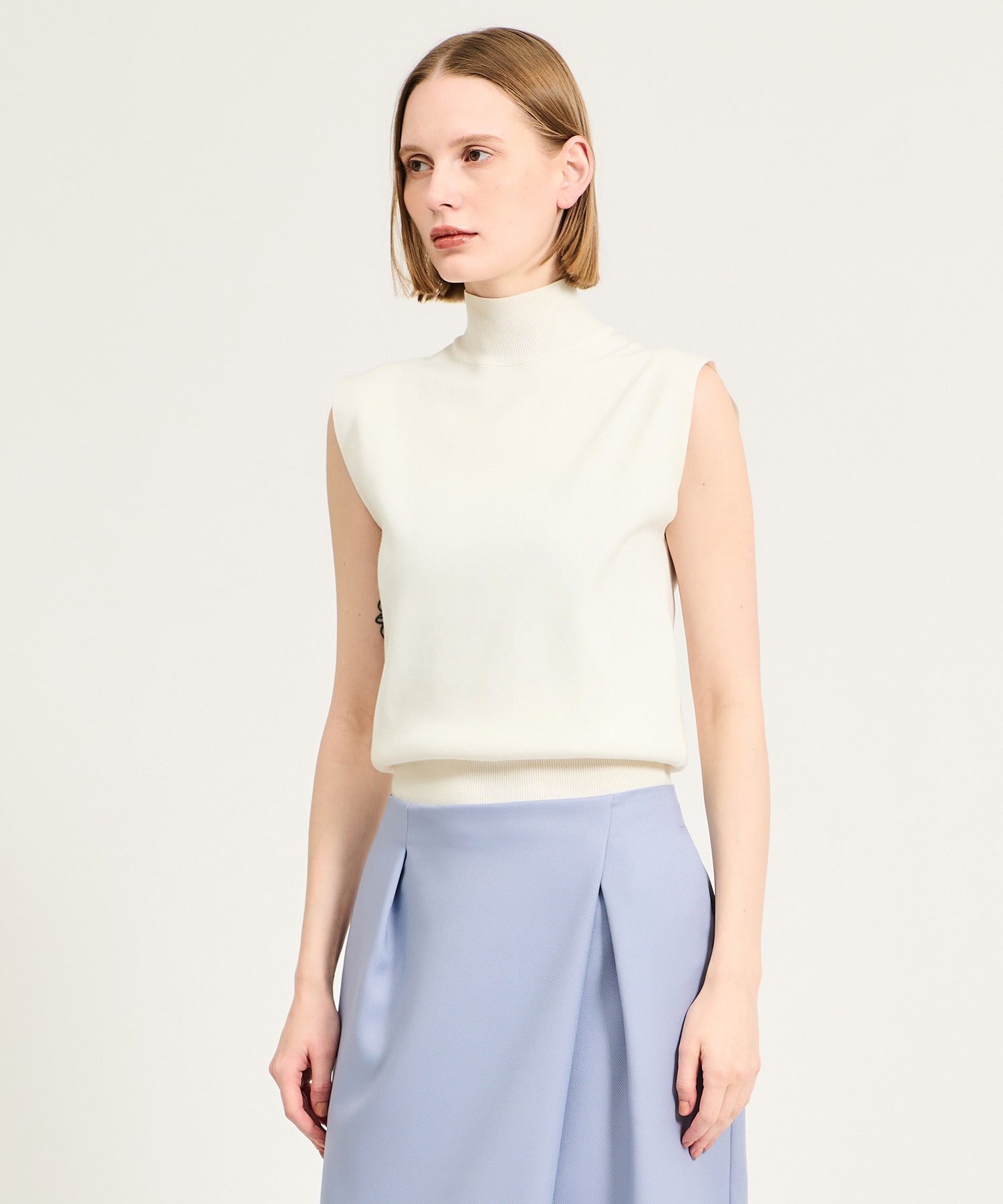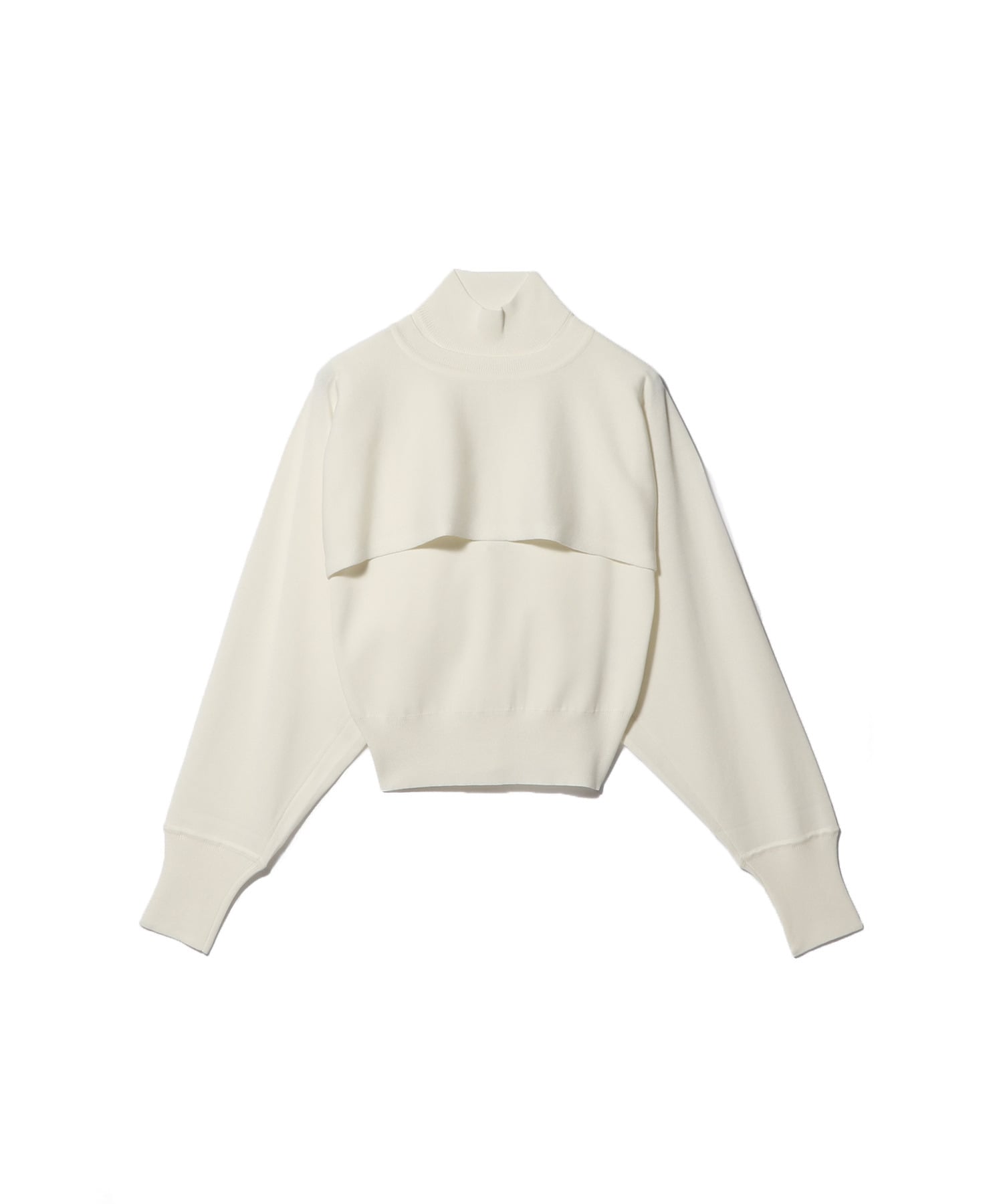 ノースリーブハイネックとロングスリーブを組み合わせたレイヤードニット。