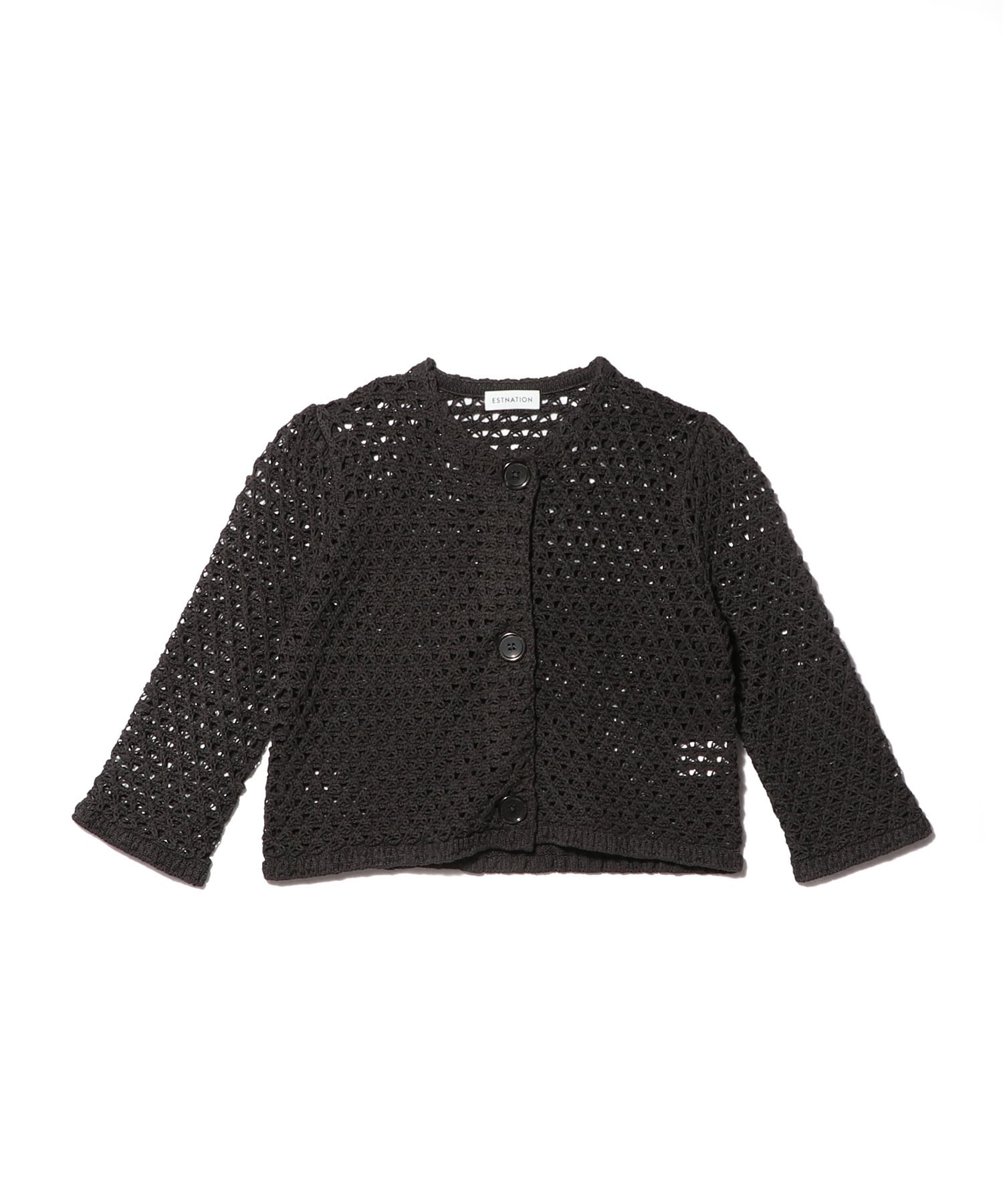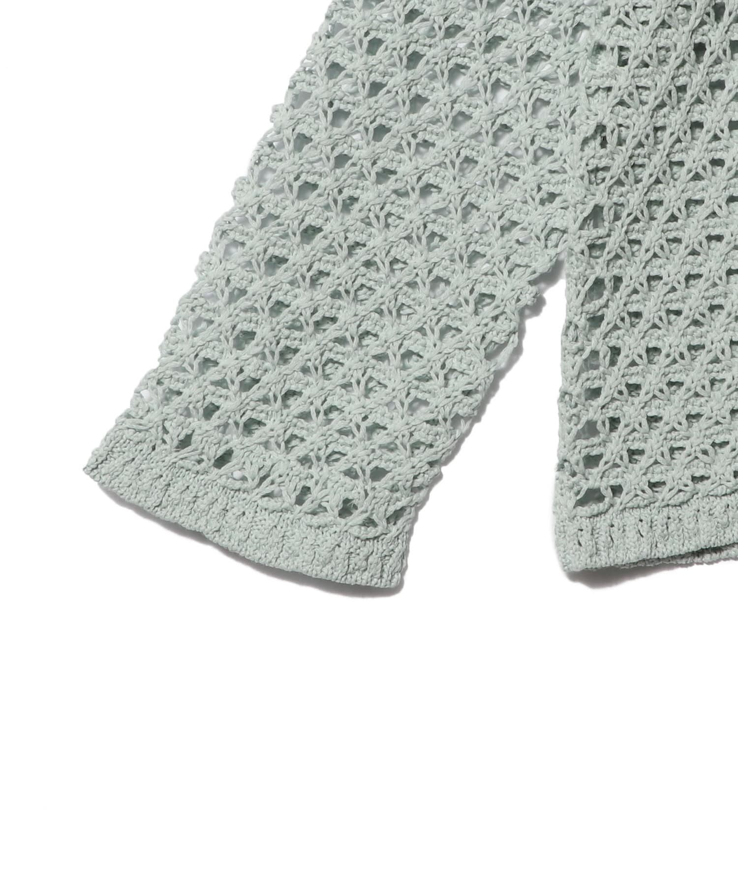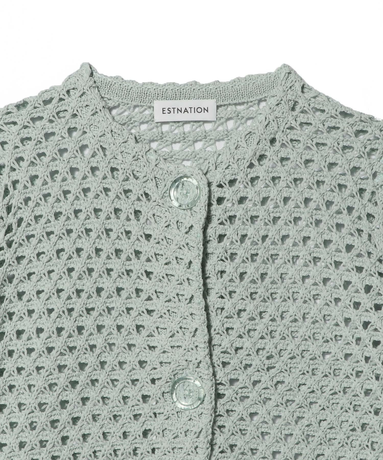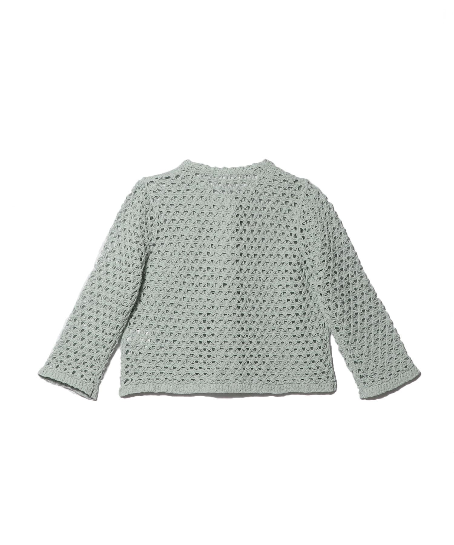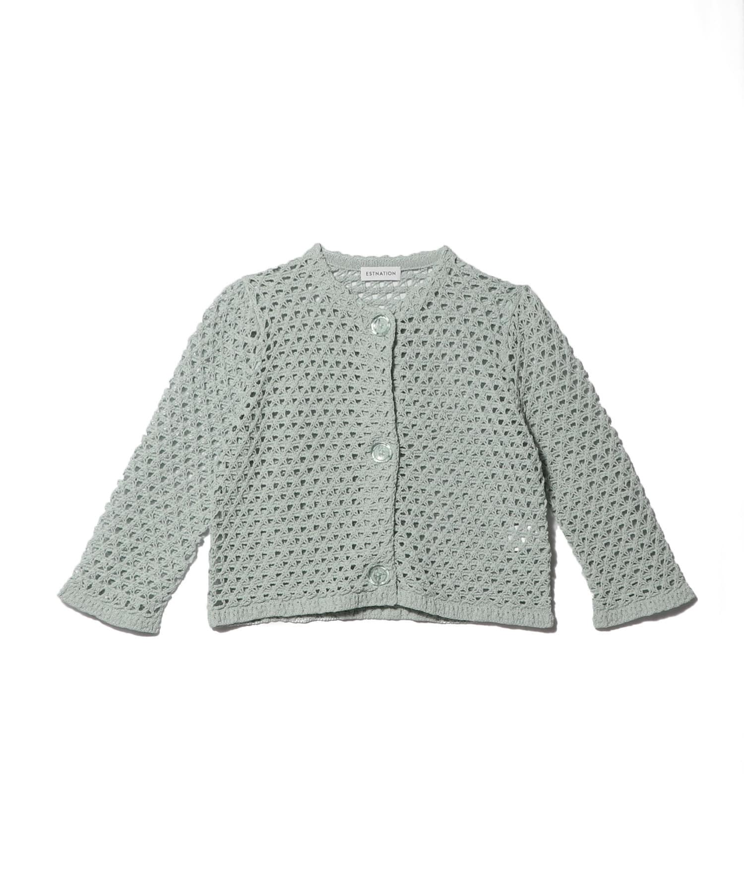 ギマコットンを使用した、レース調の編地のショートカーディガン。