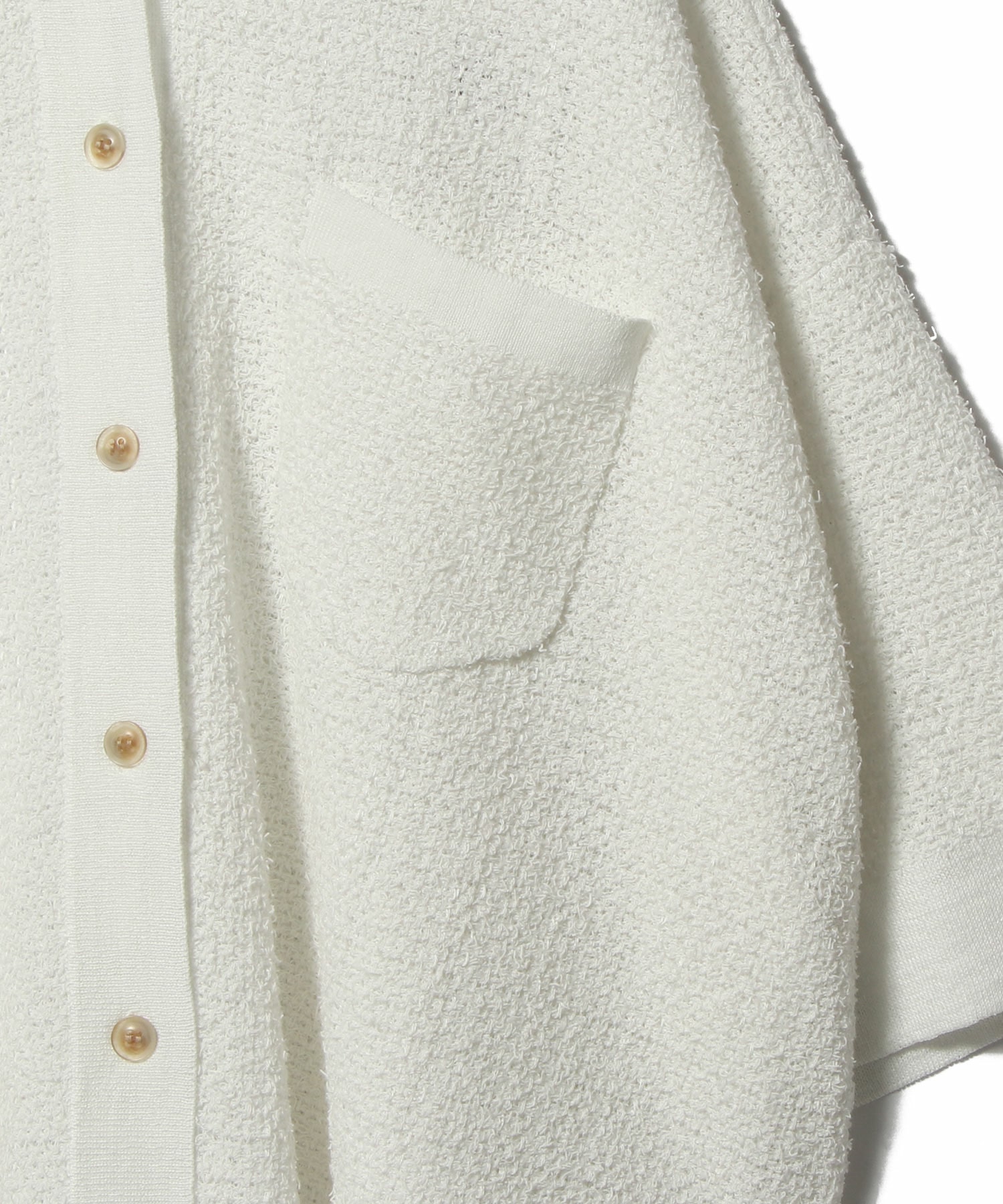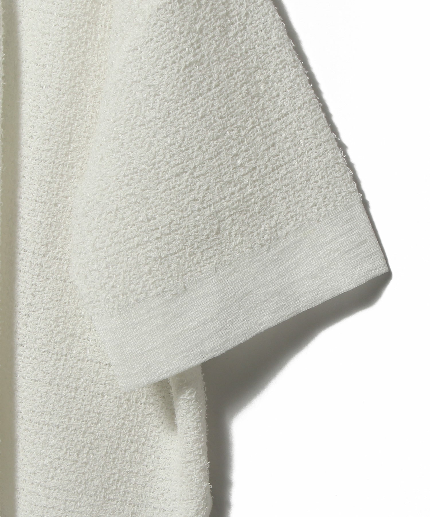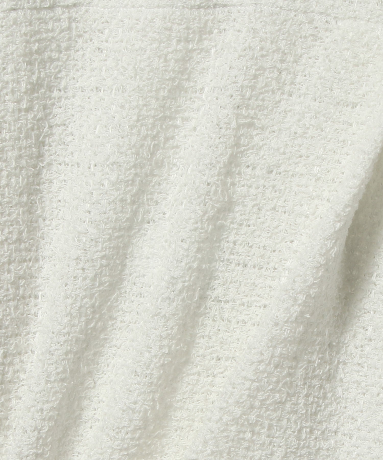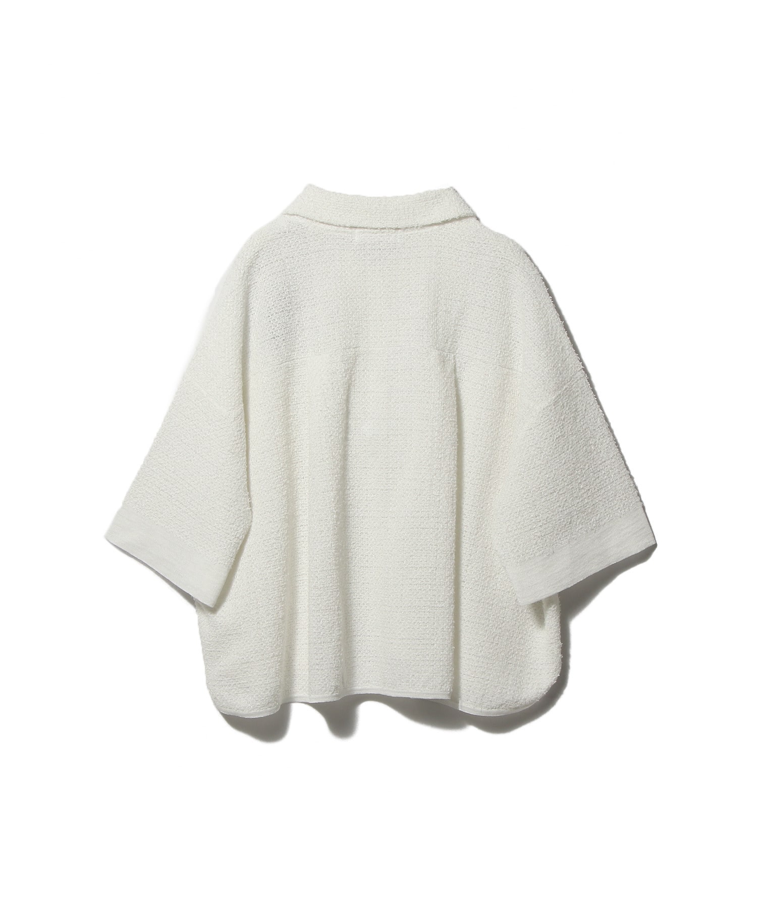 ふんわりとした立体感がありつつ、着用すると軽く、肌に触れる面はさらりとしたドライな質感。ショート×ワイドなシルエットは、ボリュームのあるボトムスにもIラインのワンピース等にも合わせやすく、スタイリングの幅を広げてくれます。