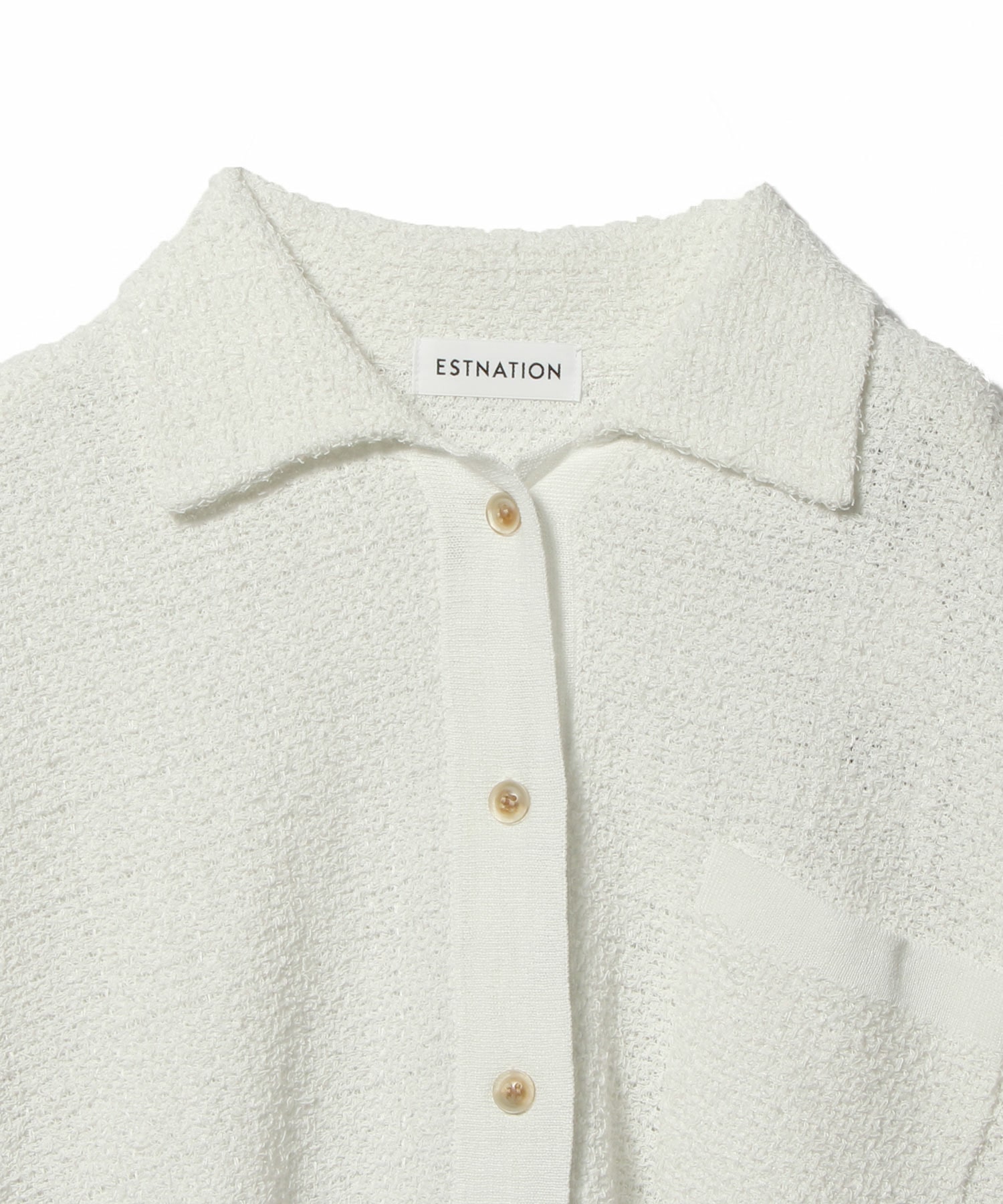 小さな毛足のあるコットン素材をツイード調に編み込んだニットシャツ。