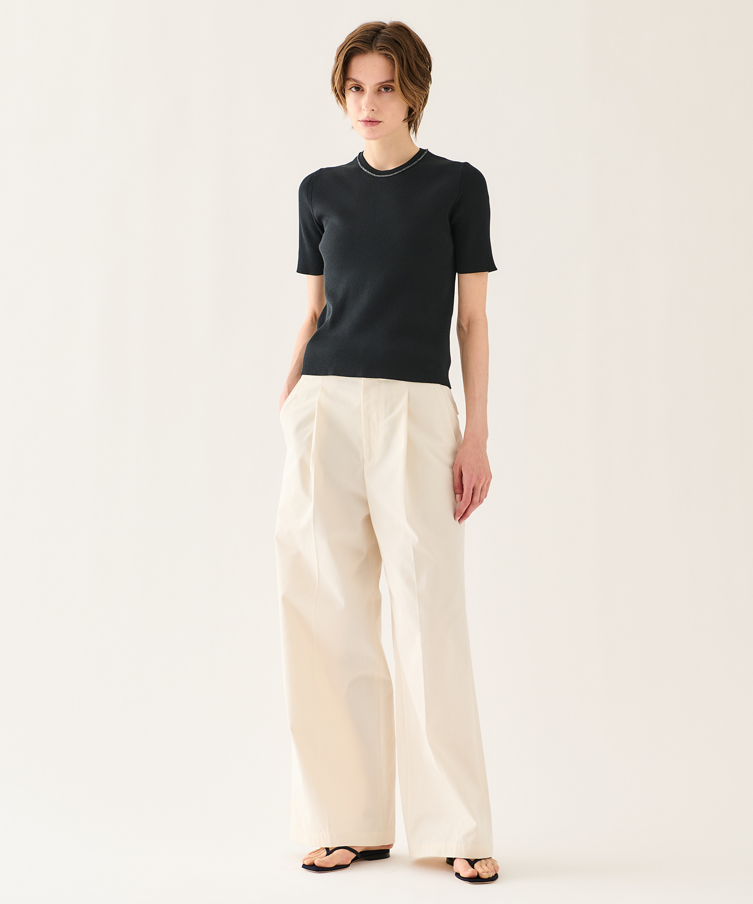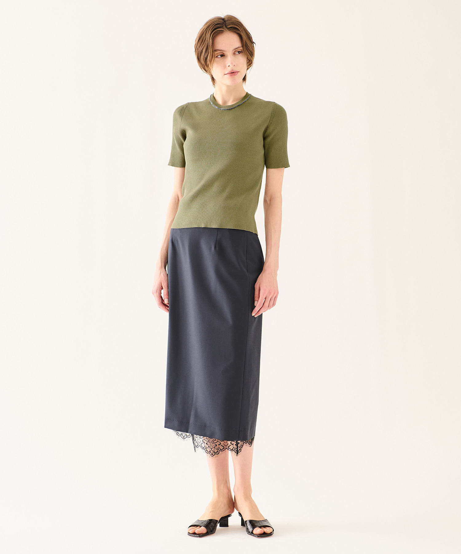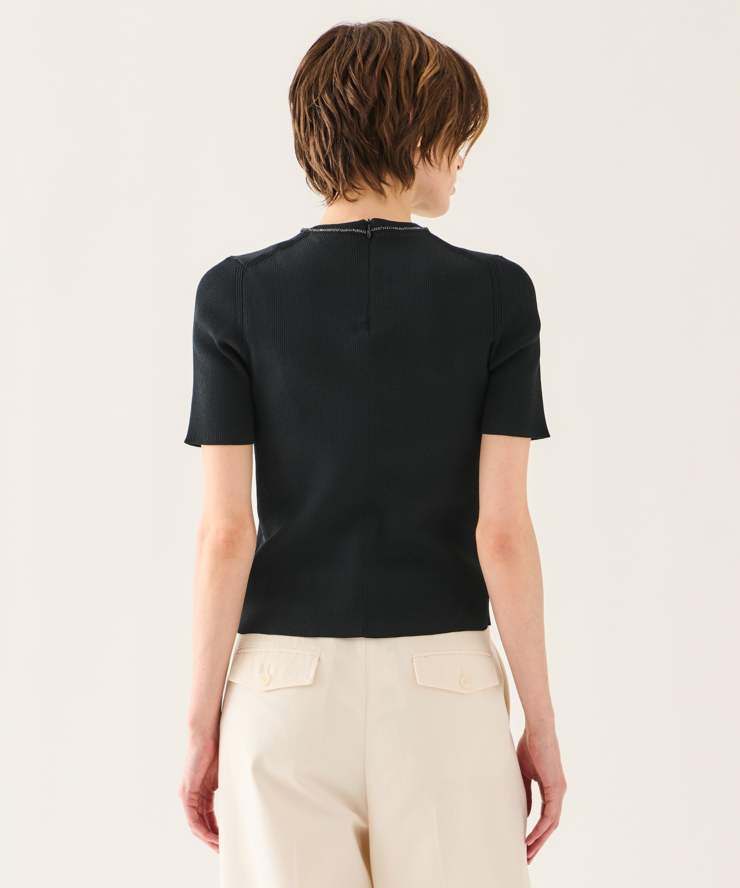ネックに添えた極細チェーンがさりげなくきらめき、品よくスパイスを添えるポイントに。一枚ではもちろん、インナーとしても重宝します。