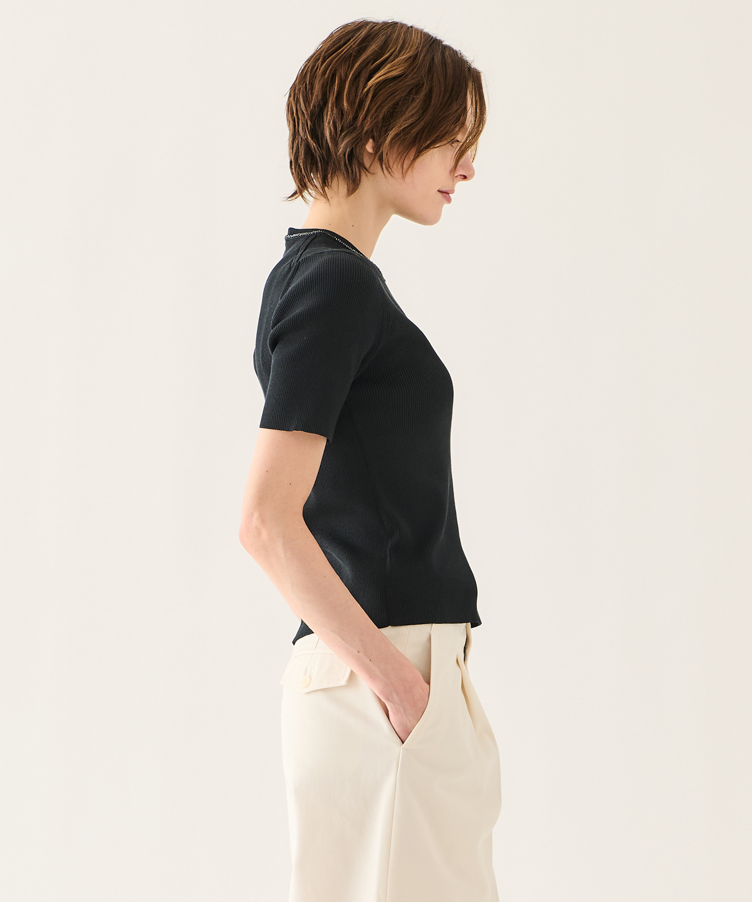ドライな質感が心地よい、厚手のリブニットトップス。