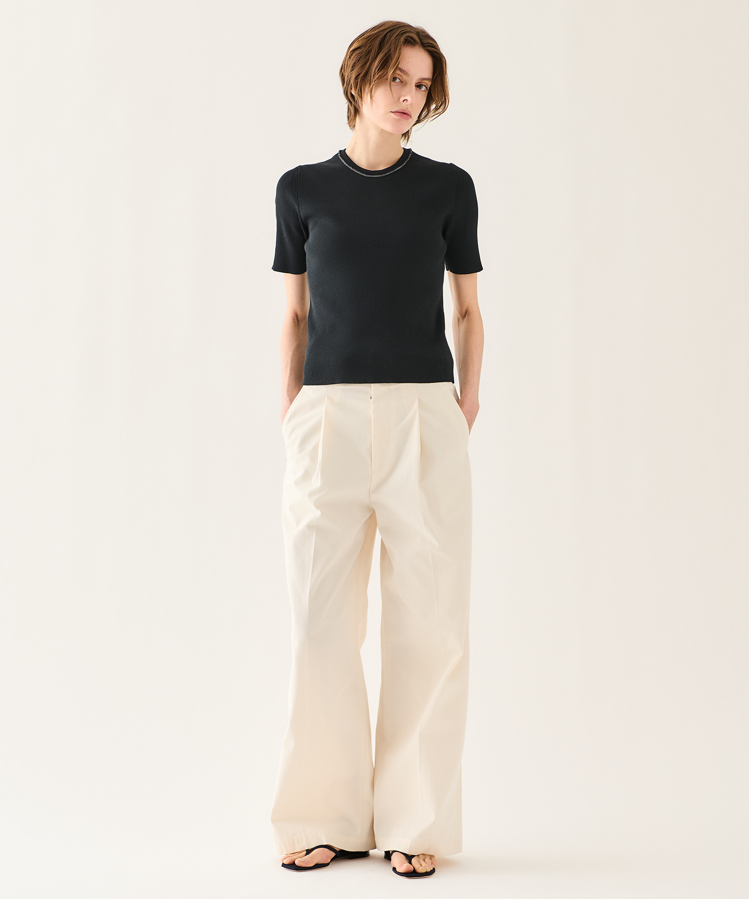程よいゆとりがリブ特有のラインを拾いにくく、デイリーからきれいめまで幅広く活躍します。