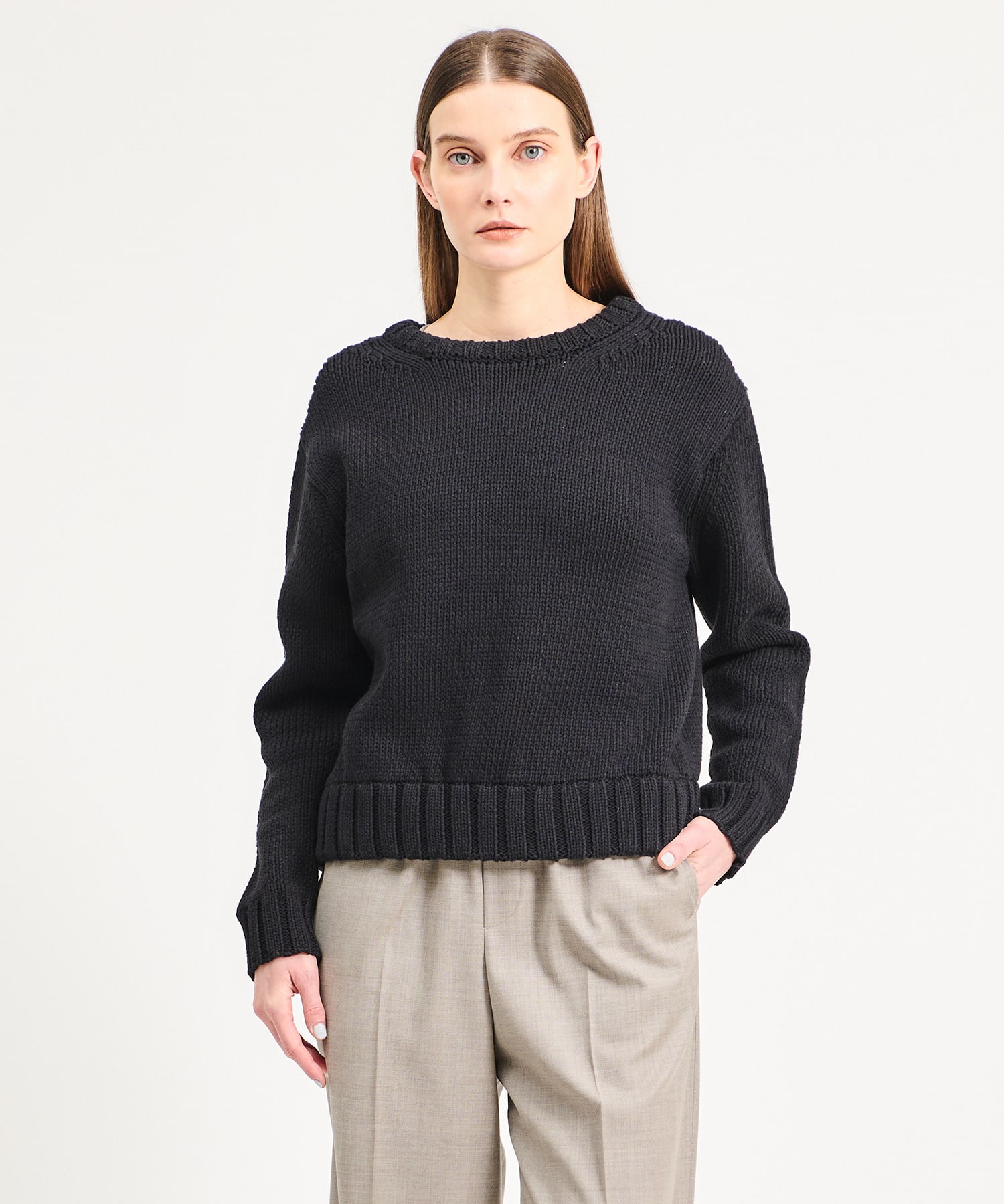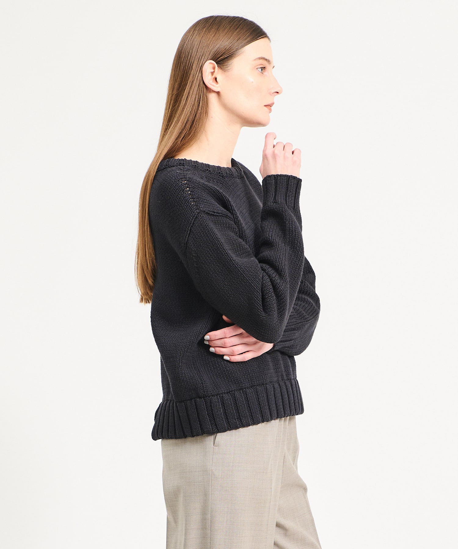 コットンの太めの糸を使用し、天竺編みで仕立てた程よい肉感が特徴のニット。