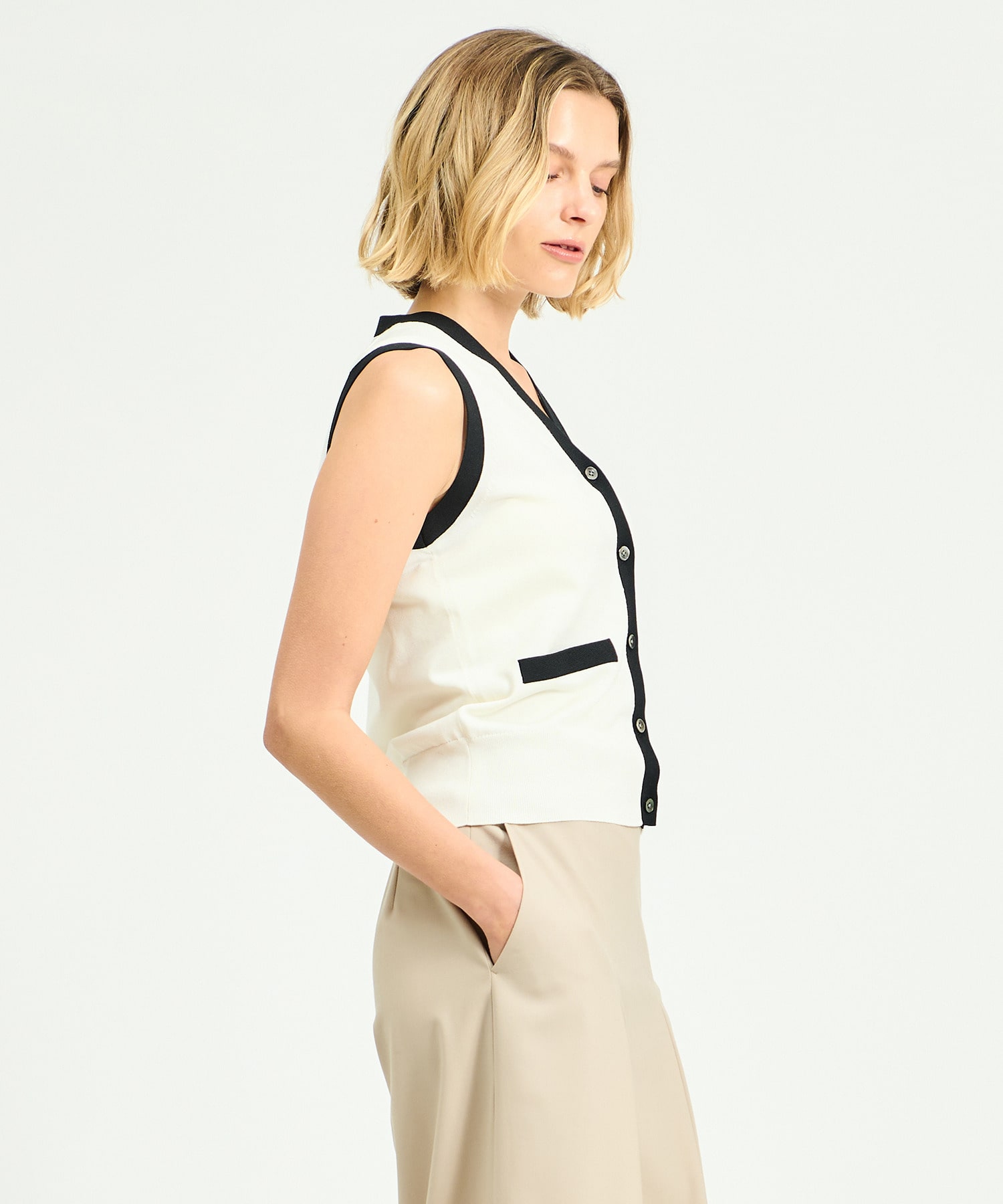 バイカラーニットベスト