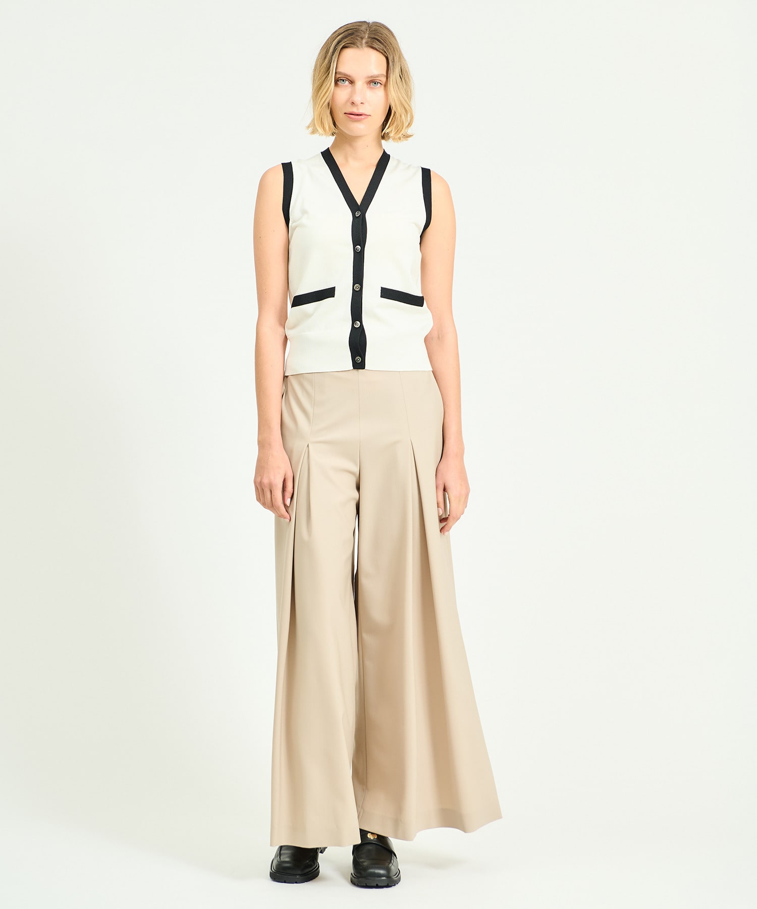 一枚でもバランスよく決まり、同素材のカーディガンとのレイヤードでさらに着こなしの幅が広がります。