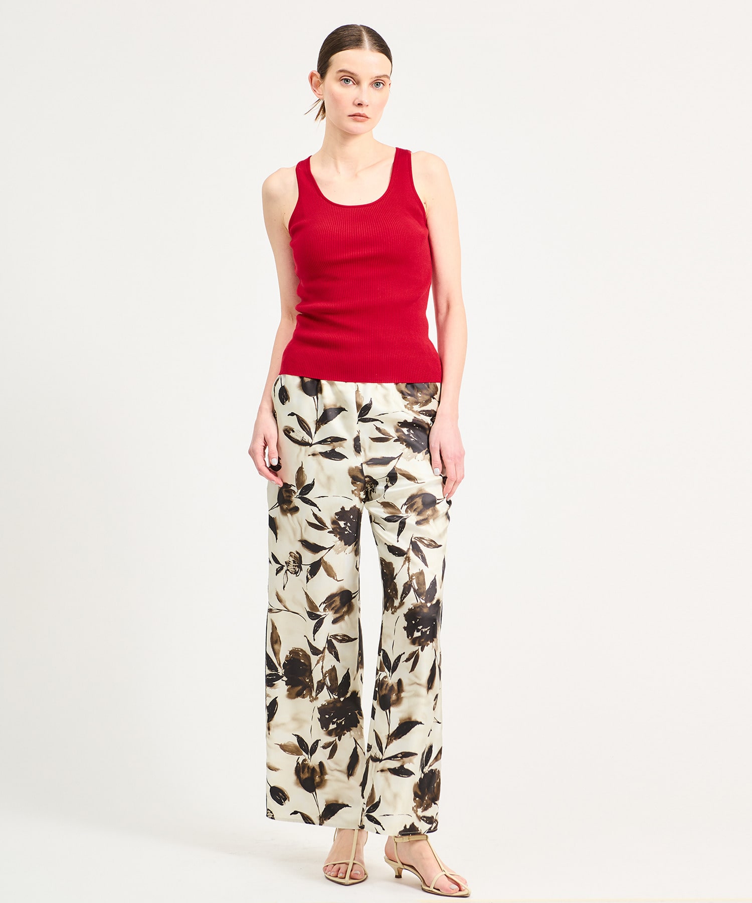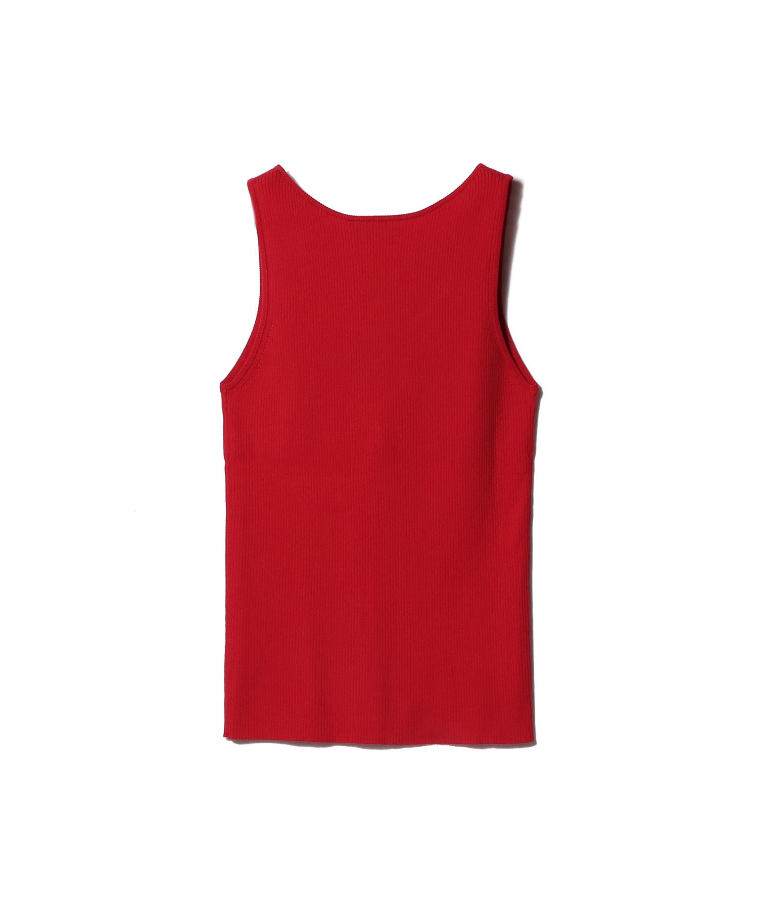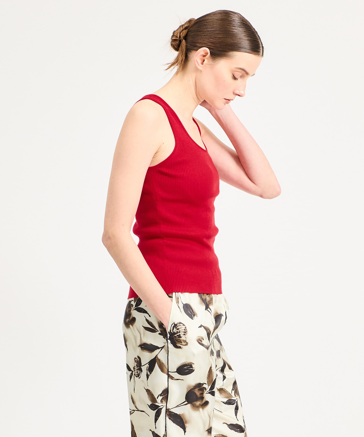シルクをブレンドした上質な糸を使用し、ほどよいしなやかさと滑らかな肌触りを兼ね備えたノースリーブニット。