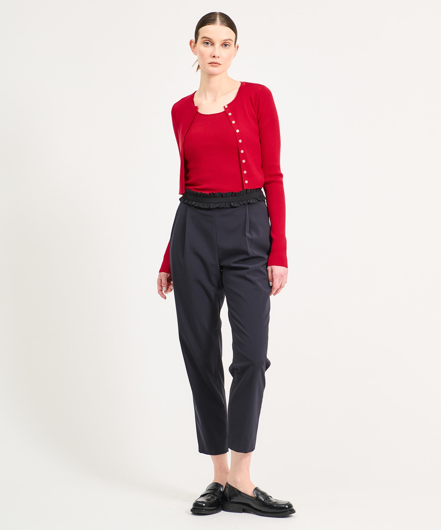 同素材のショートカーディガンとのアンサンブルスタイルも楽しめる、汎用性の高い一着です。