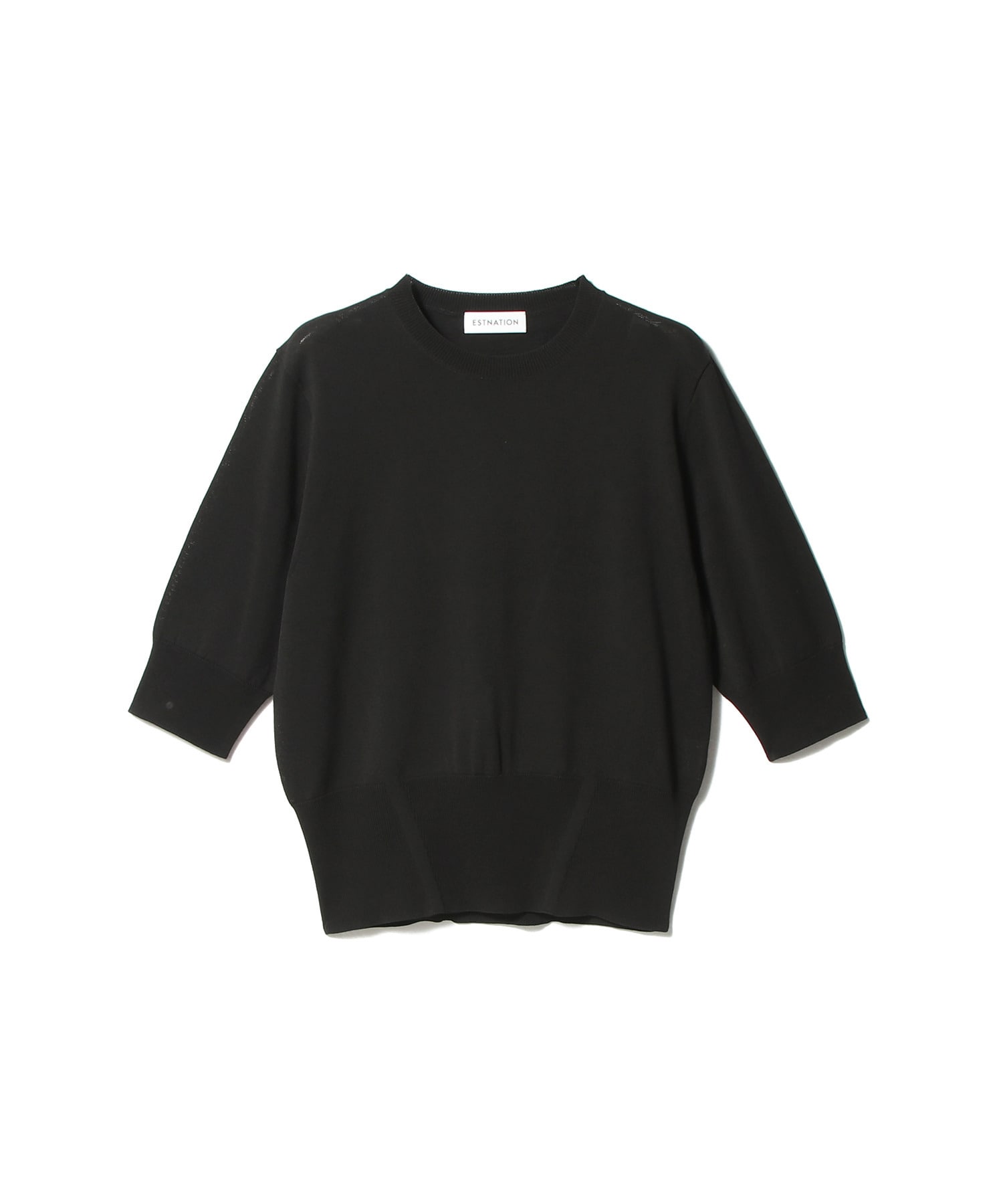 程よく腕を覆う5分袖で、一枚でも安心感のあるベーシックなデザイン。どんなボトムとも好相性でデイリーに着回しやすく、ワードローブにあると重宝する一枚です。