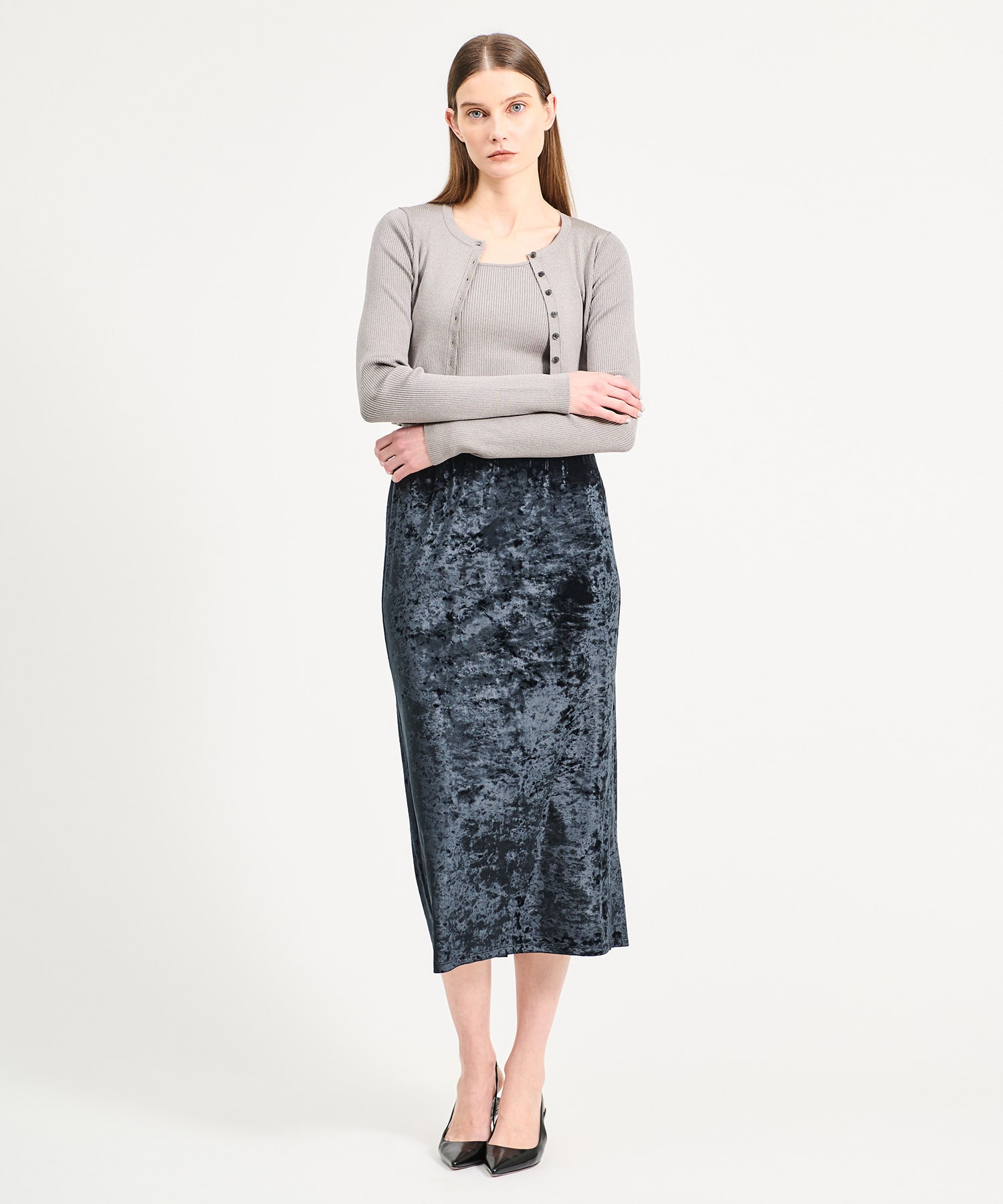 同素材のニットタンクトップとのアンサンブルスタイルも楽しめる、着回し力の高い一着です。
