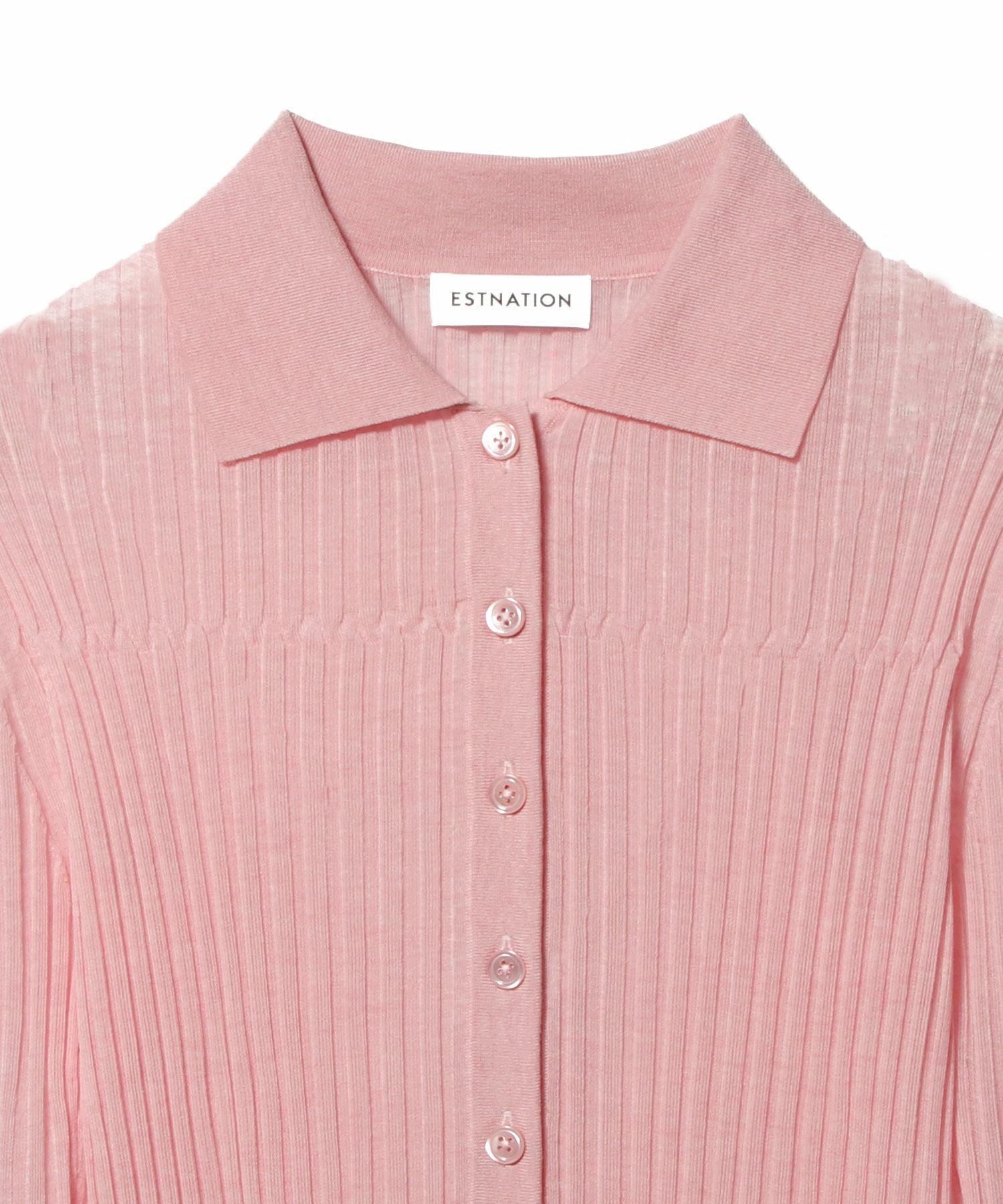 テンセルとシルクによる美しい光沢が際立つ上質素材に、ワイヤーのようにハリを持つポリエステルを撚糸した新感覚の糸を使用。しなやかさと構築性を兼ね備え、シアーでありながら立体的なフォルムを描きます。