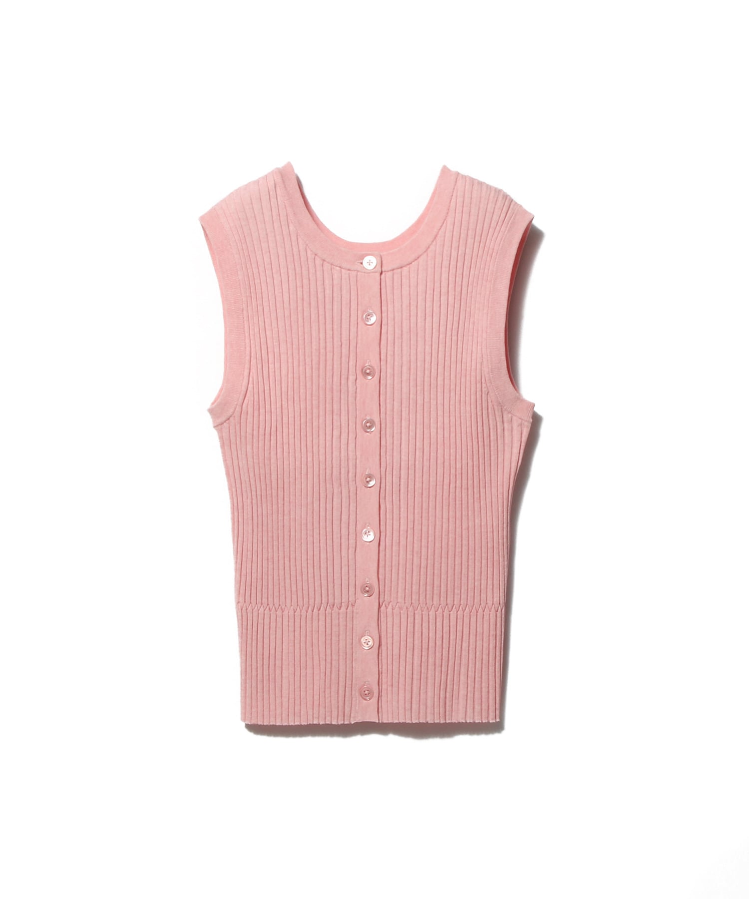 フロントはボタン開き仕様で、閉じてプルオーバーとして、開けてベスト風のレイヤードスタイルも楽しめるデザイン。前後で着用できバックボタンとしてもお楽しみいただけます。