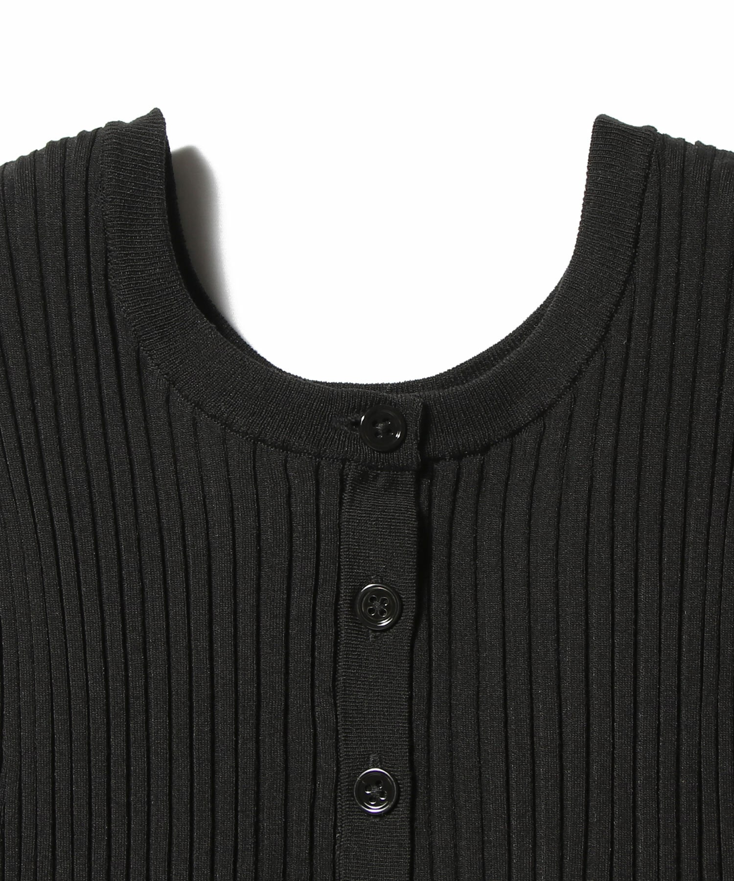 フロントはボタン開き仕様で、閉じてプルオーバーとして、開けてベスト風のレイヤードスタイルも楽しめるデザイン。前後で着用できバックボタンとしてもお楽しみいただけます。