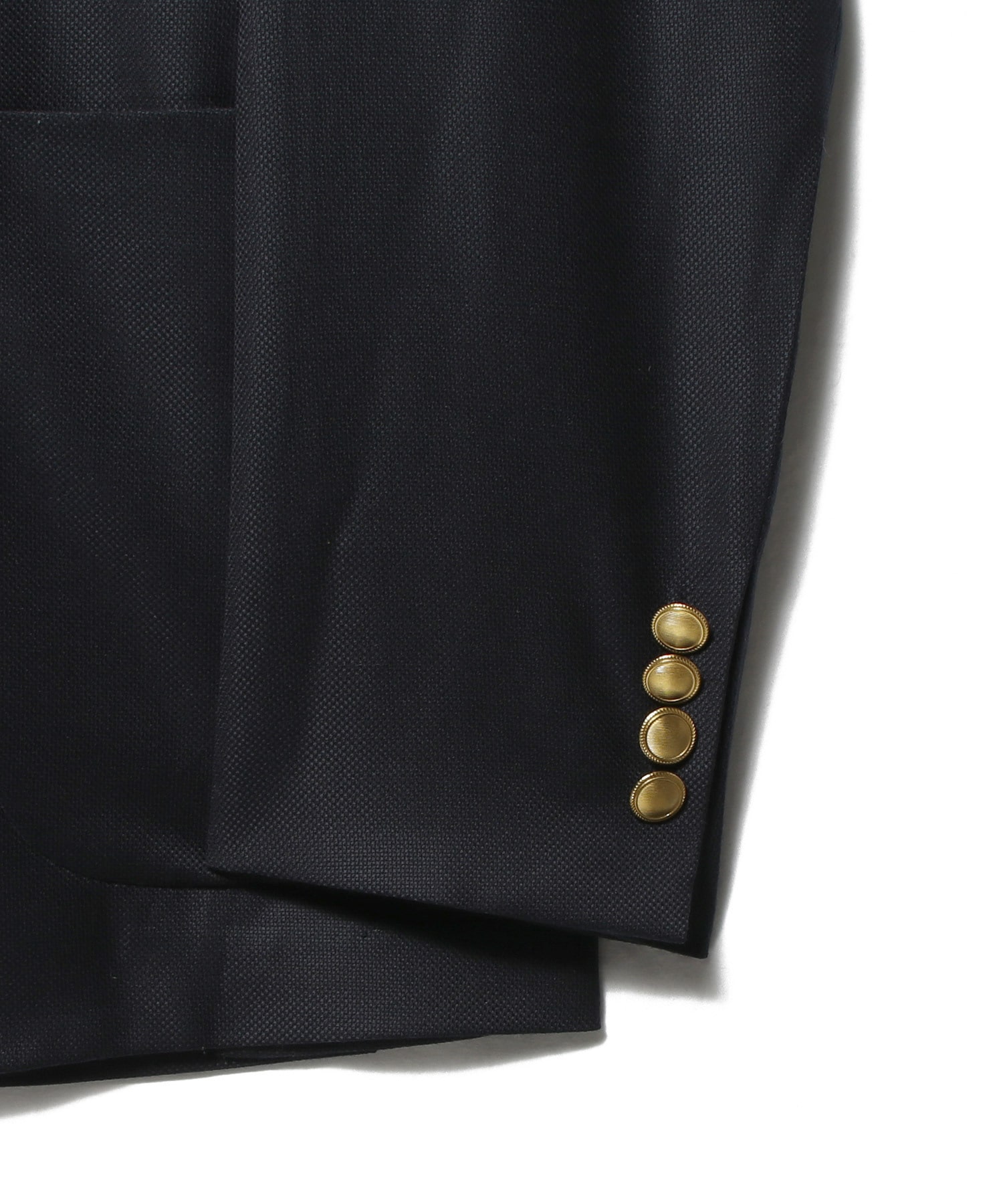 初期仕様ではトラディショナルな「ゴールドメタルボタン」を採用。さらに、付け替え用としてシックな「水牛ボタン」も付属しています。華やかなパーティシーンから落ち着いたビジネスミーティングまで、ボタンを変えるだけで印象をガラリと変えられる一着です。