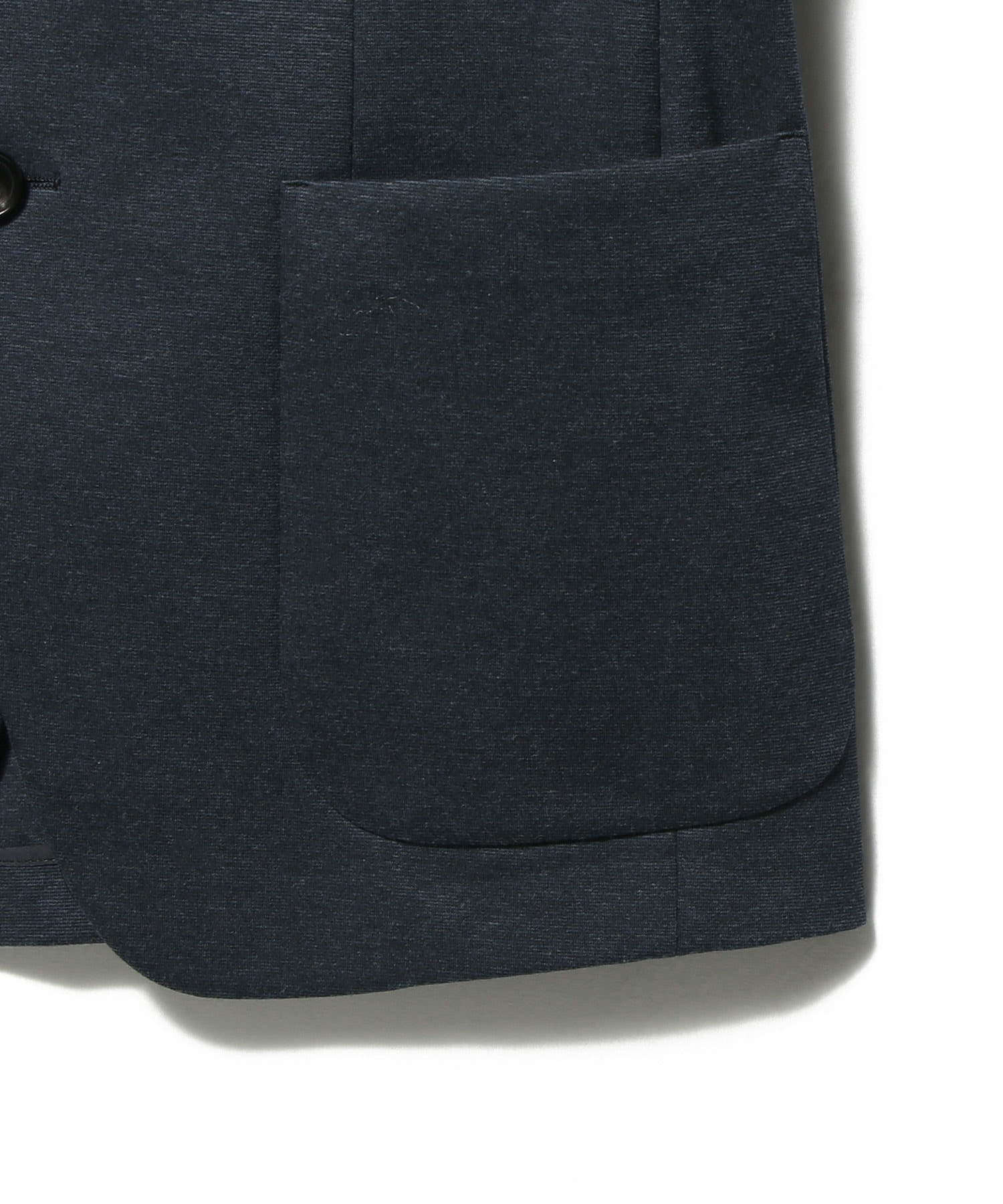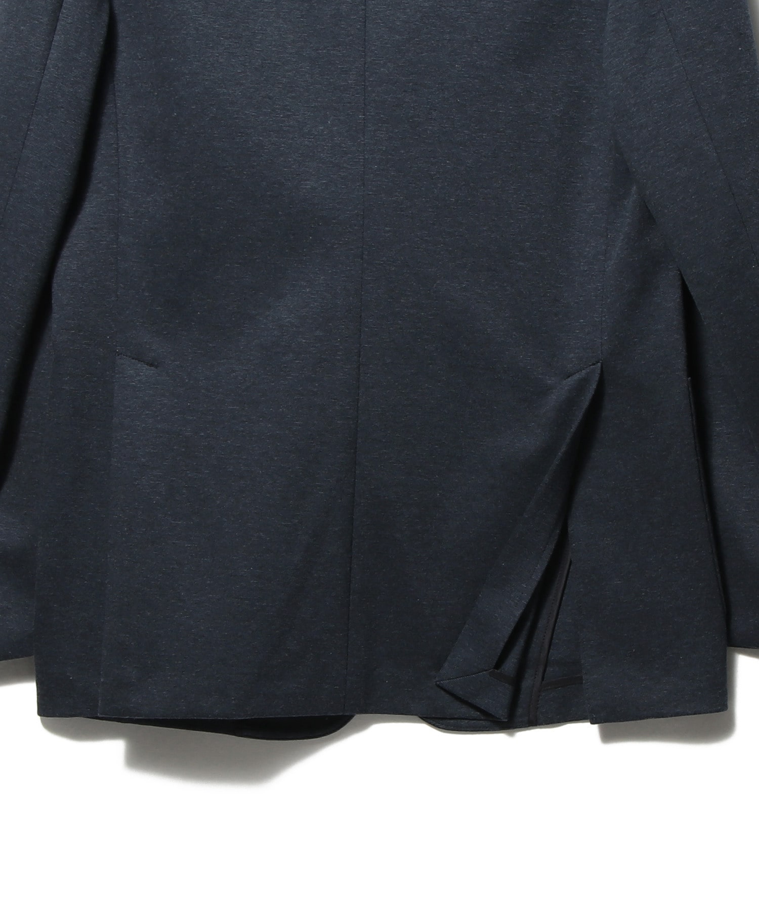 デザインはワイドラペルにバルカポケットを配したクラシックな2釦パッチ仕様。丸みのある肩まわりやゆとりのあるアームホールがリラックス感を生みつつ、傾斜をつけた肩線やシェイプさせたウエストライン、カーブを描くフロントカットによって、立体的なシルエットを構築しています。