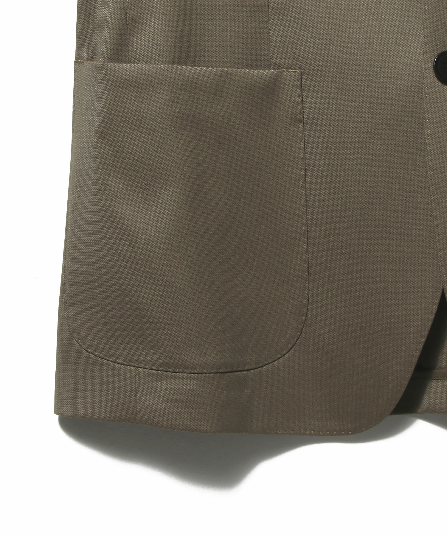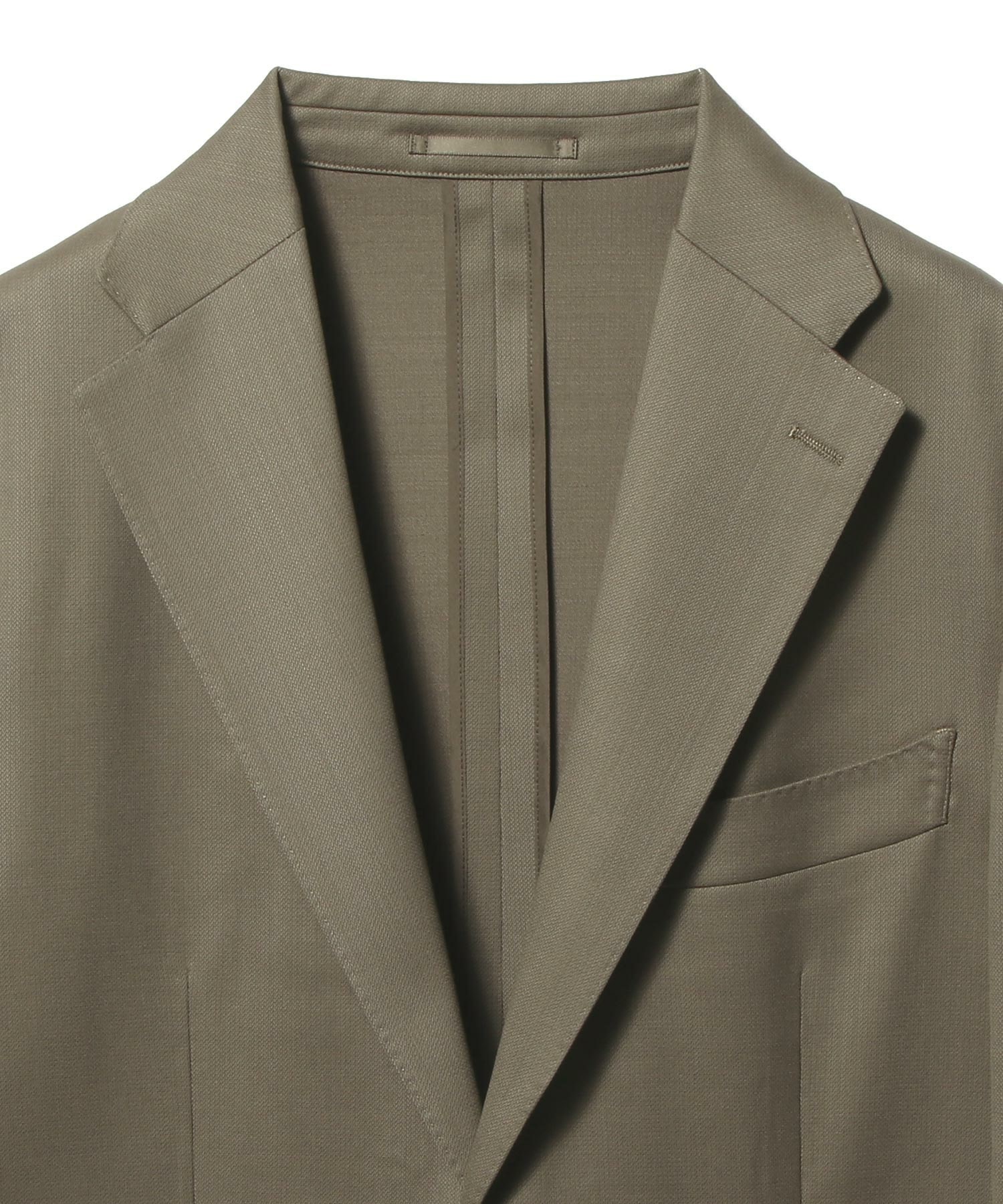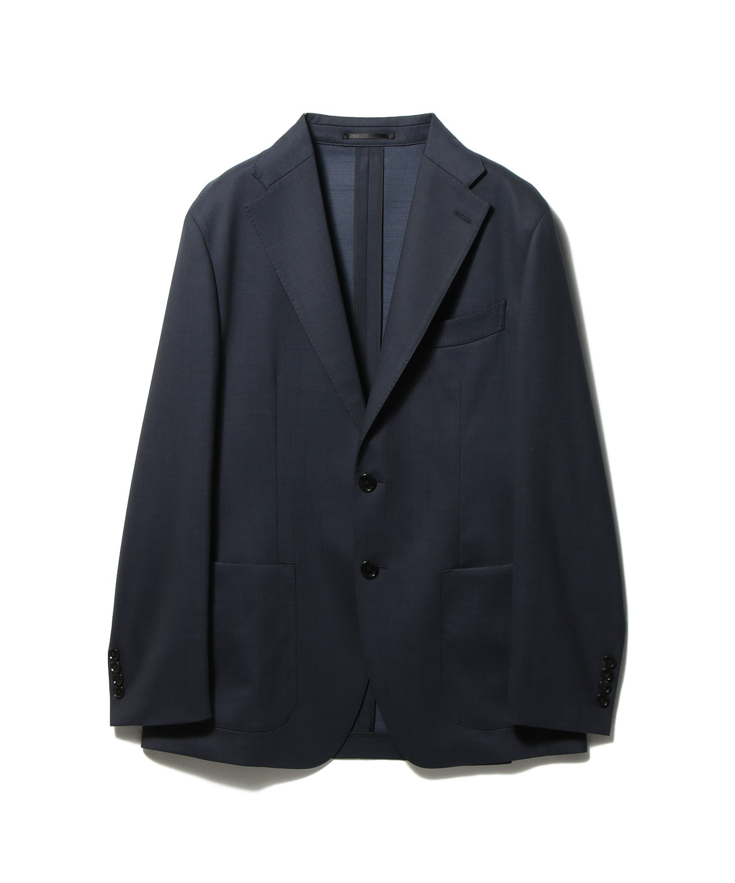 デザインはワイドラペルにバルカポケットを配したクラシックな2釦パッチ仕様。丸みのある肩まわりやゆとりを持たせたアームホールがリラックス感を演出しつつ、傾斜をつけた肩線や程よくシェイプしたウエストライン、カーブを描くフロントカットによって立体的で美しいシルエットが特徴です。