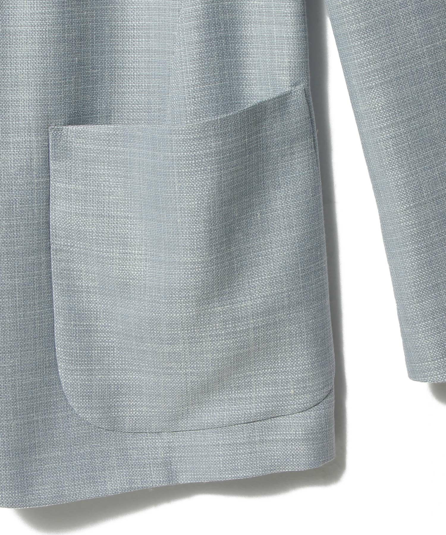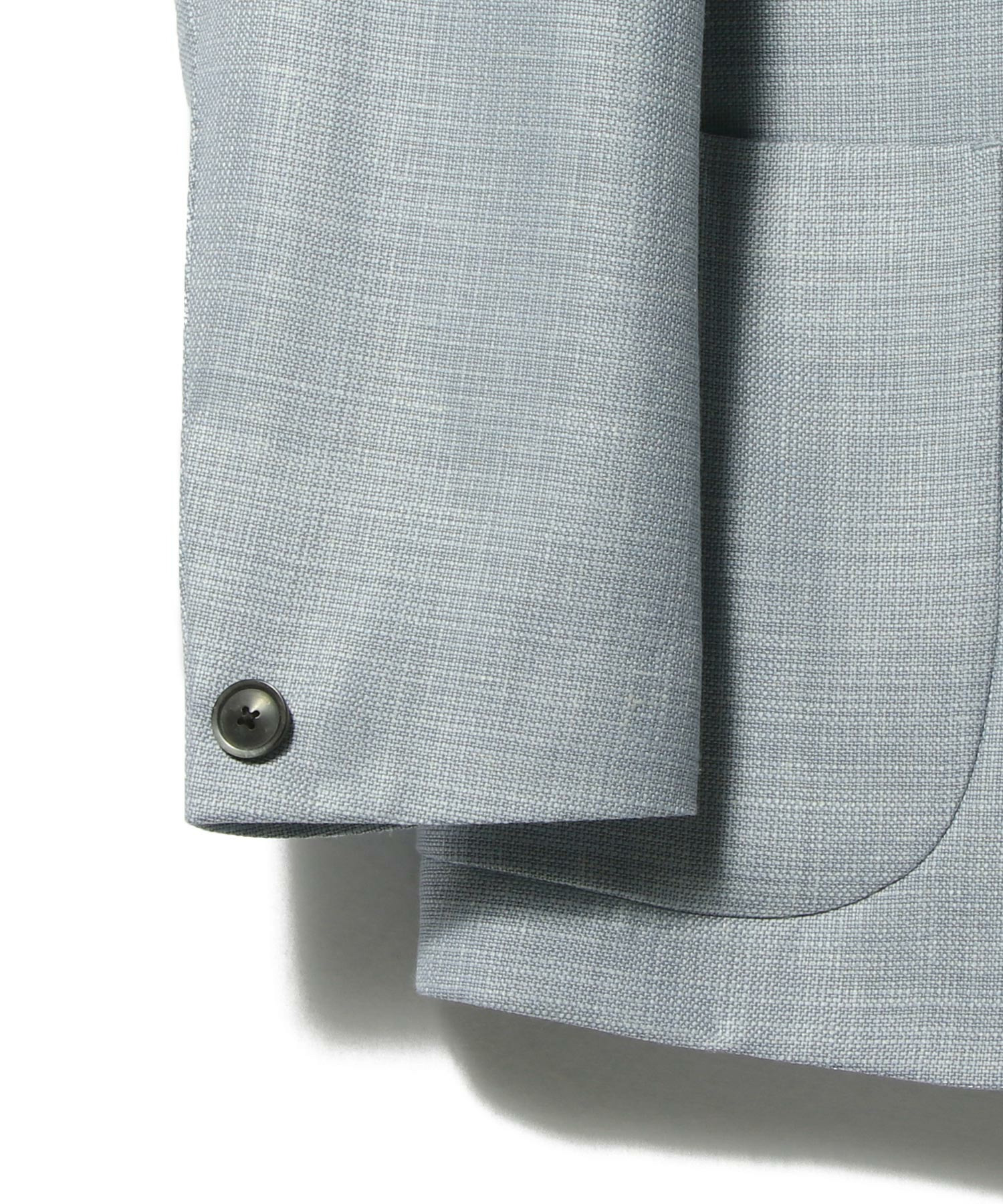 ウールの快適性に、シルクの上品な光沢、リネンの清涼感が加わった高機能かつ上質な生地が魅力です。サックス×ホワイトの糸による奥行きのあるカラーリングも特徴です。デザインはパッチポケットと胸箱ポケットを備えた1釦のカジュアルシングルジャケットながら、程よくシェイプを効かせたシルエットによりビジネスシーンでも着用できる汎用性の高い一着です。