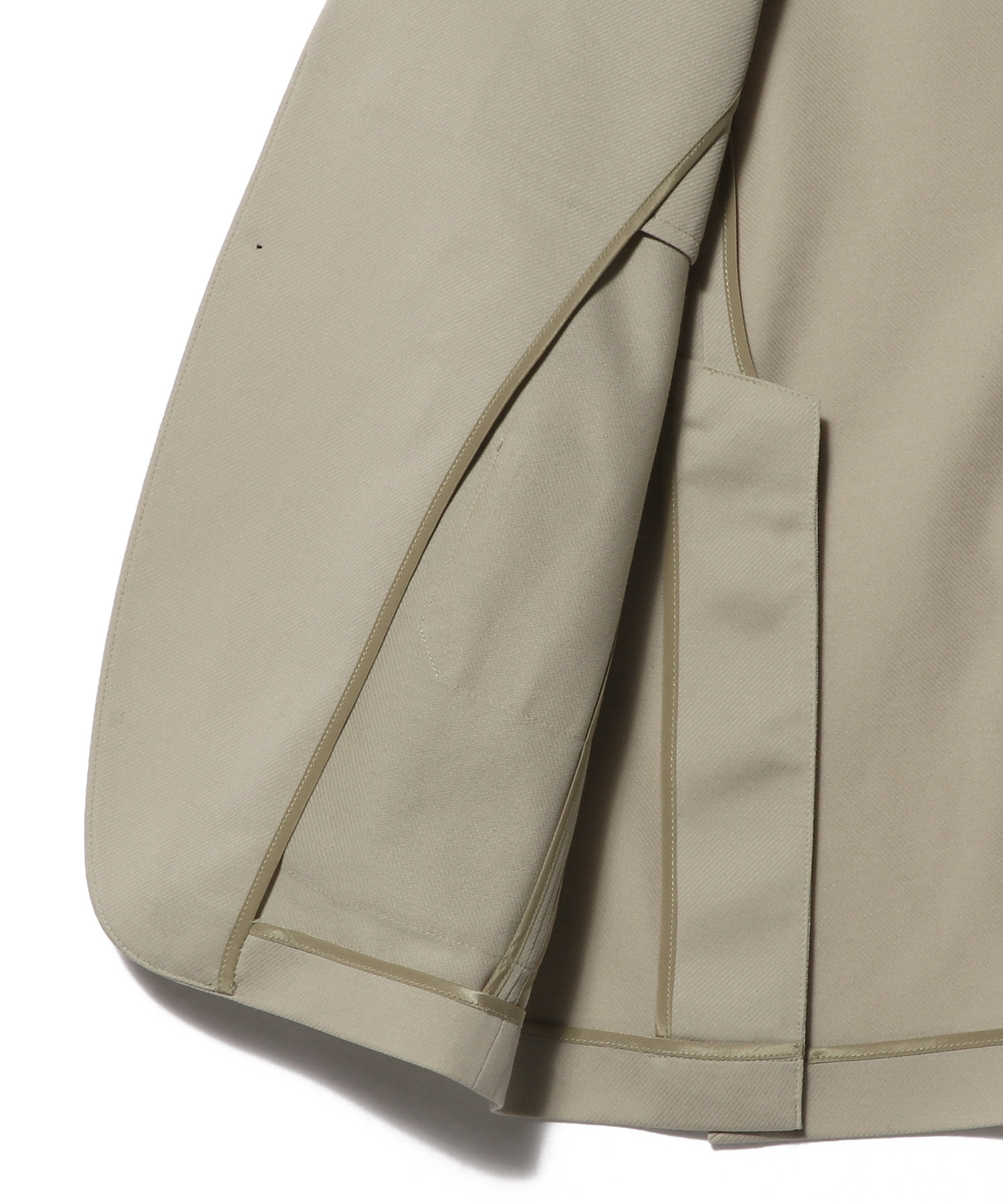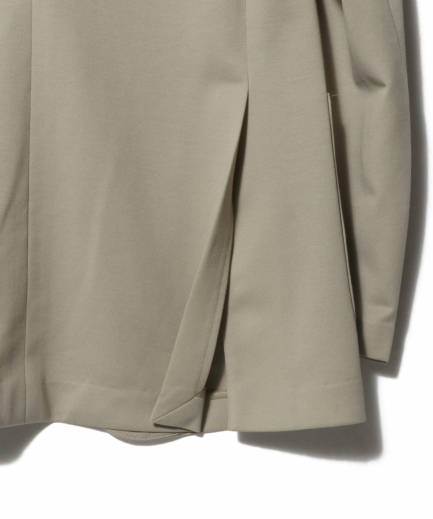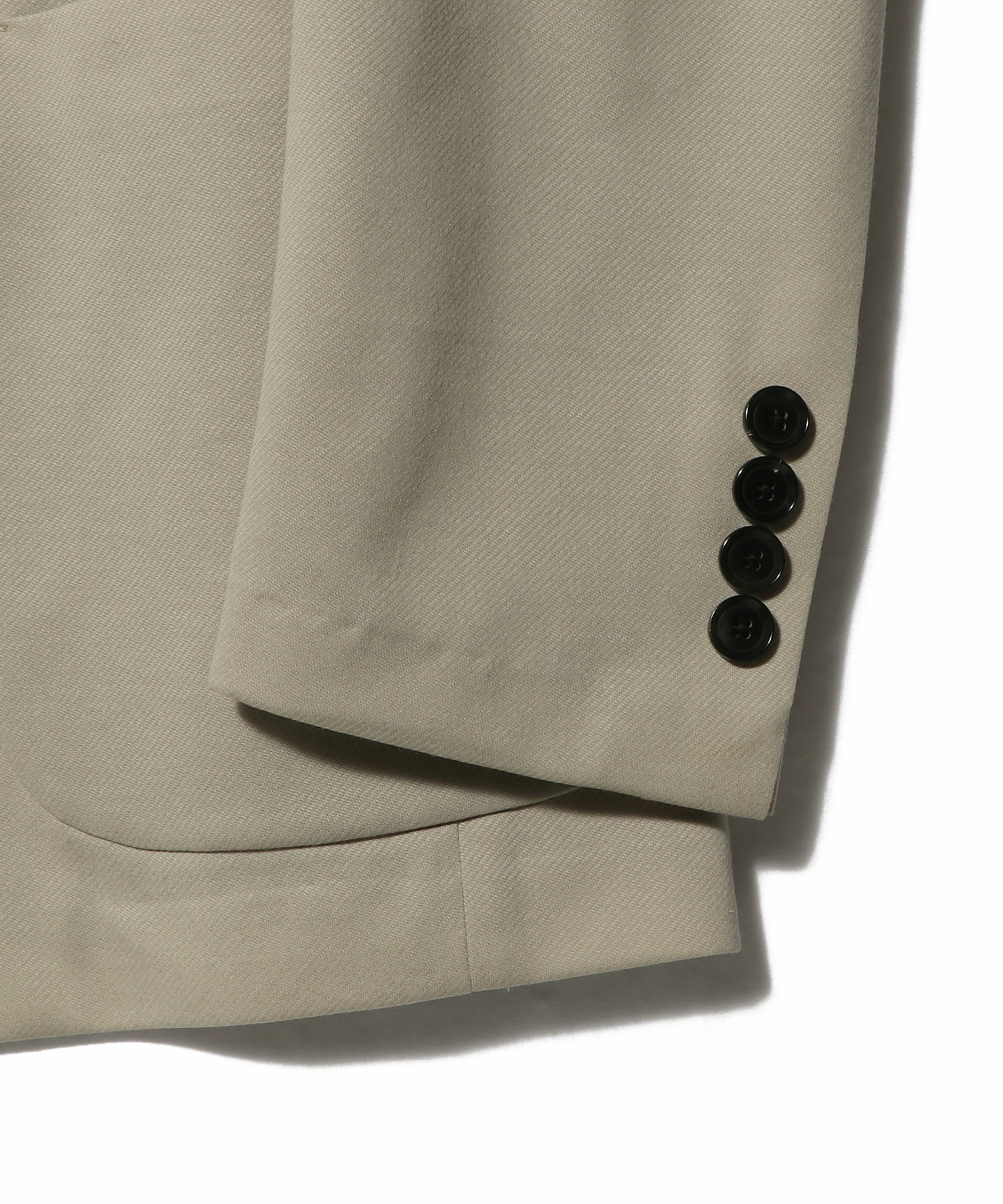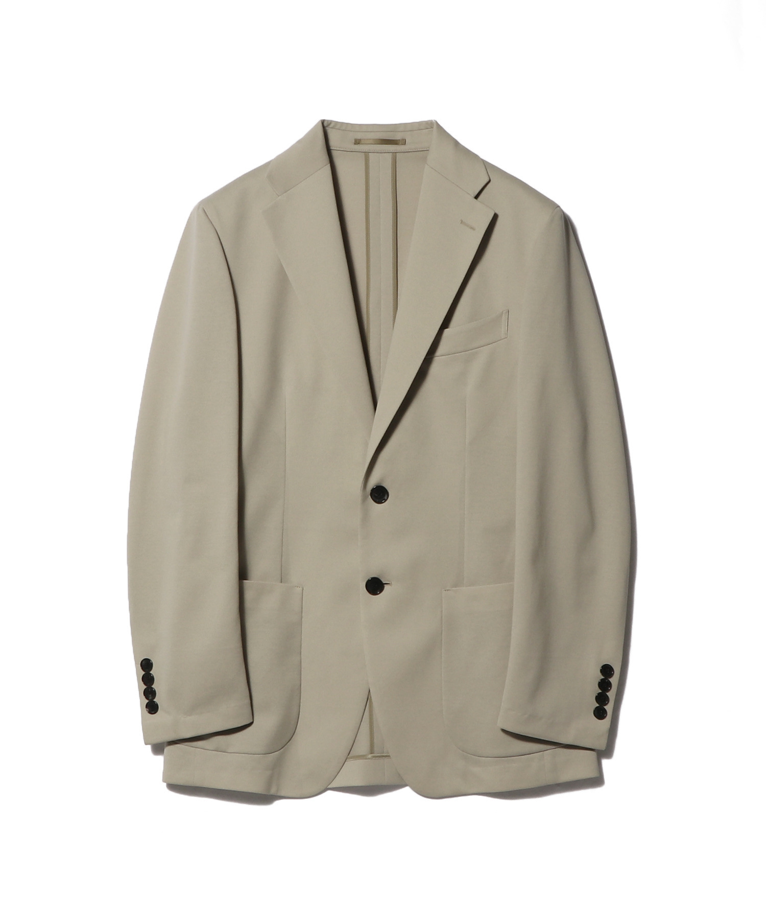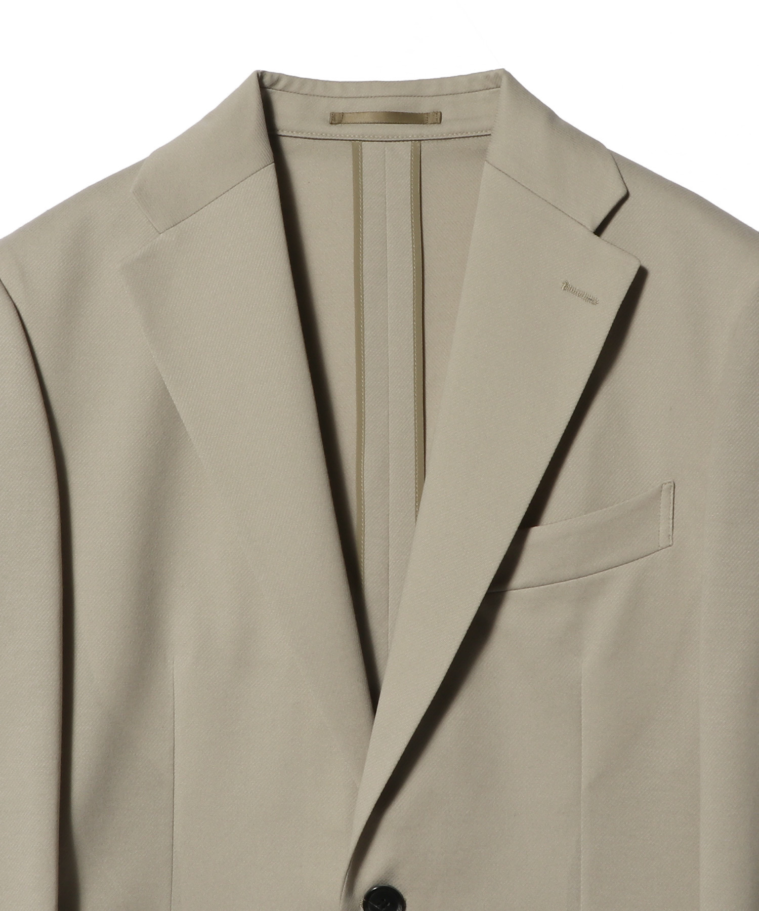 デザインは、適度にワイドなラペルの2ボタン仕様。丸みのある肩まわりとゆとりのあるアームホールで快適な着用感を実現しつつ、ウエストは程よくシェイプさせることでクラシカルなバランスに。ノーステッチ仕様により、ミニマルで洗練された印象に仕上げています。