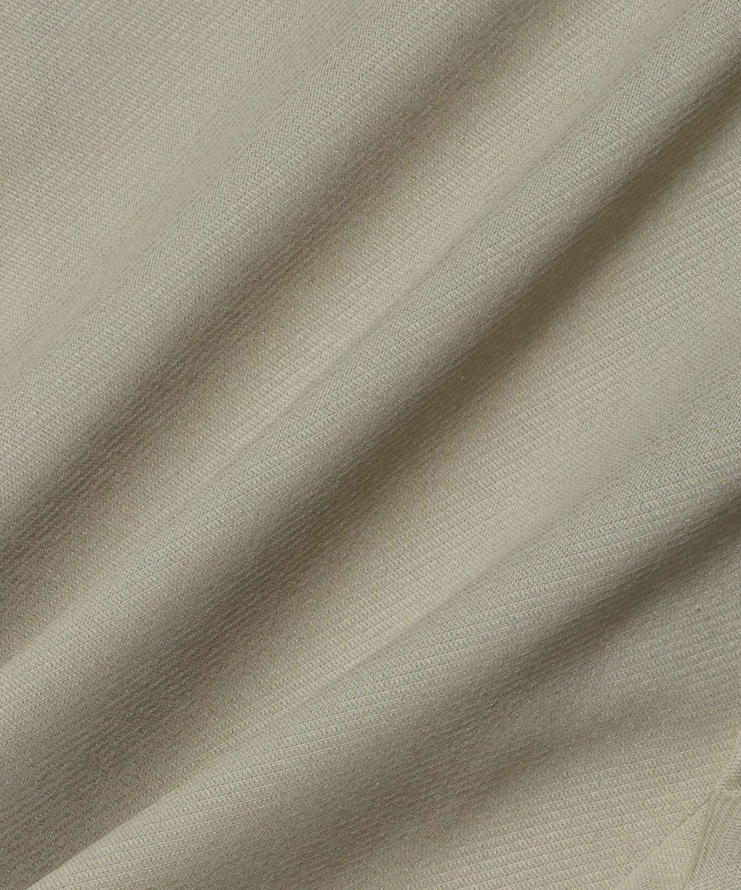 軽やかでほのかな透け感、シャリ感のある清涼なタッチを持ちながら、特殊加工により適度なハリを持たせ、布帛のような上質な表情に仕上げています。コットン×ポリエステルの混紡糸による杢調の色合いが、奥行きのあるニュアンスを演出します。