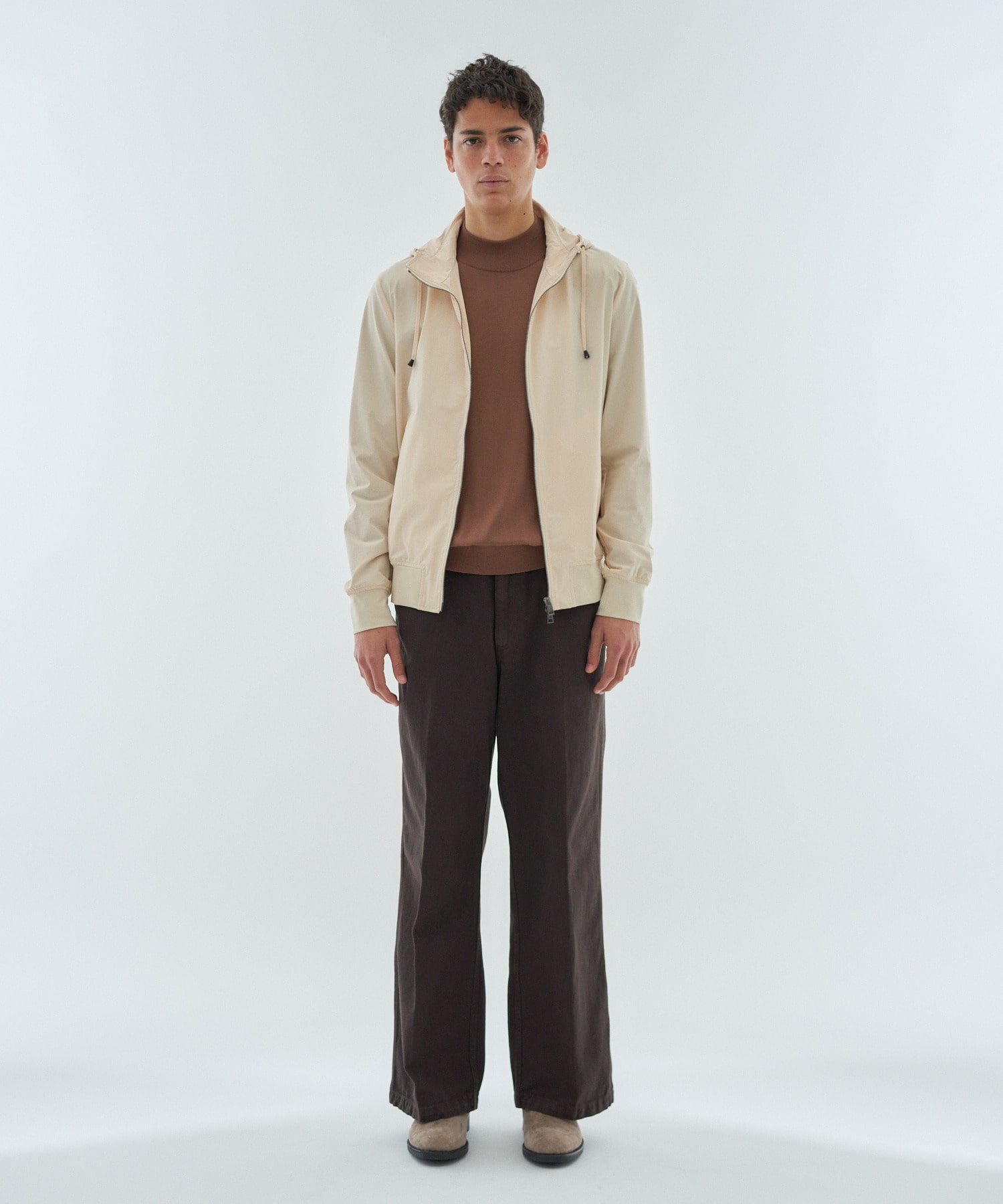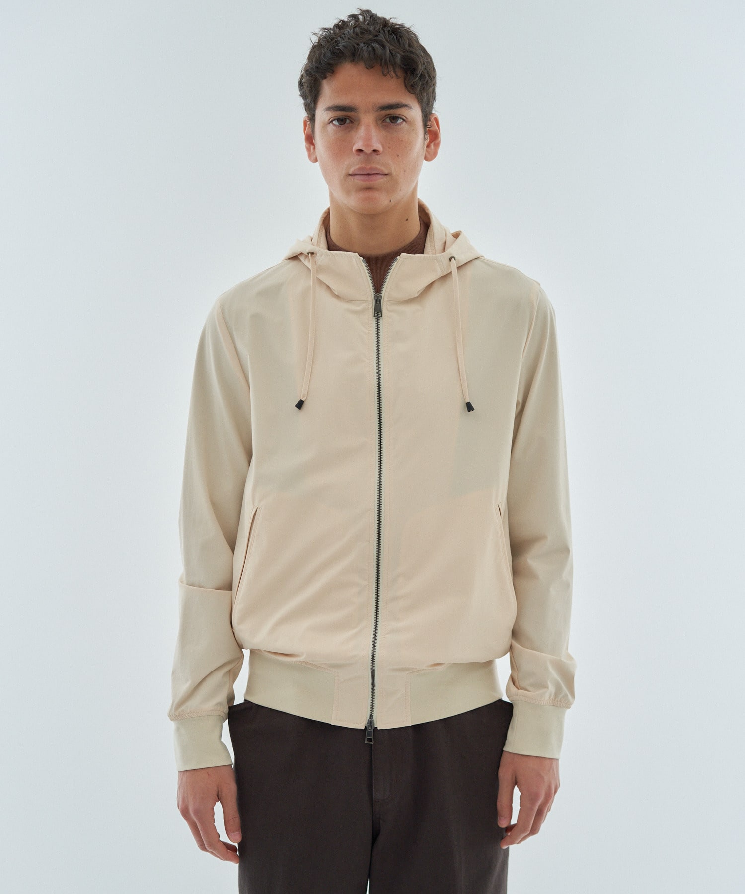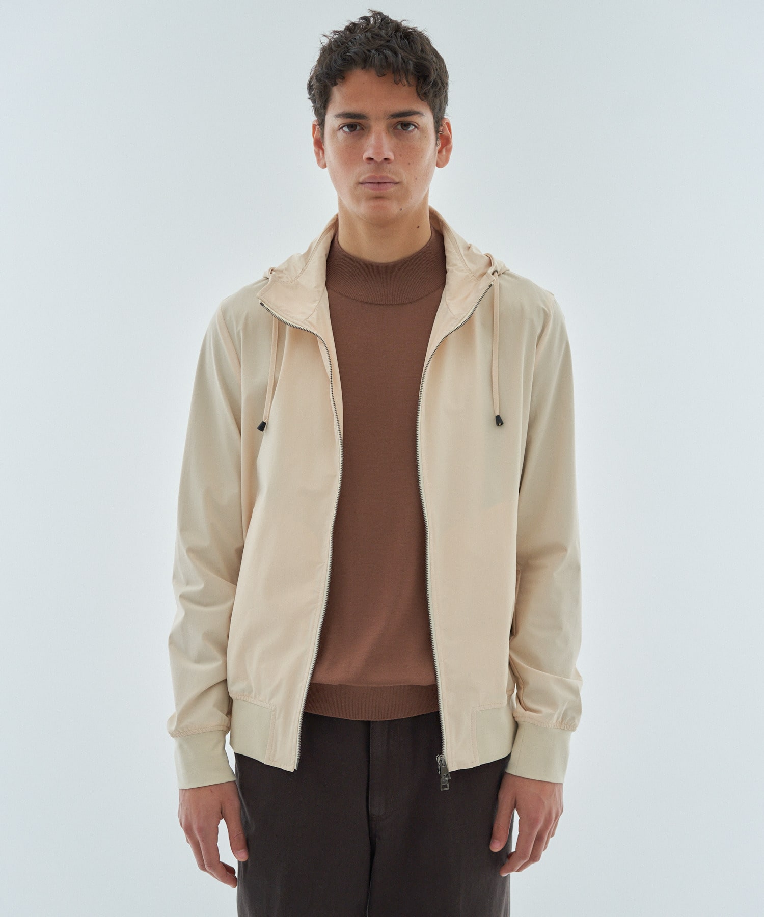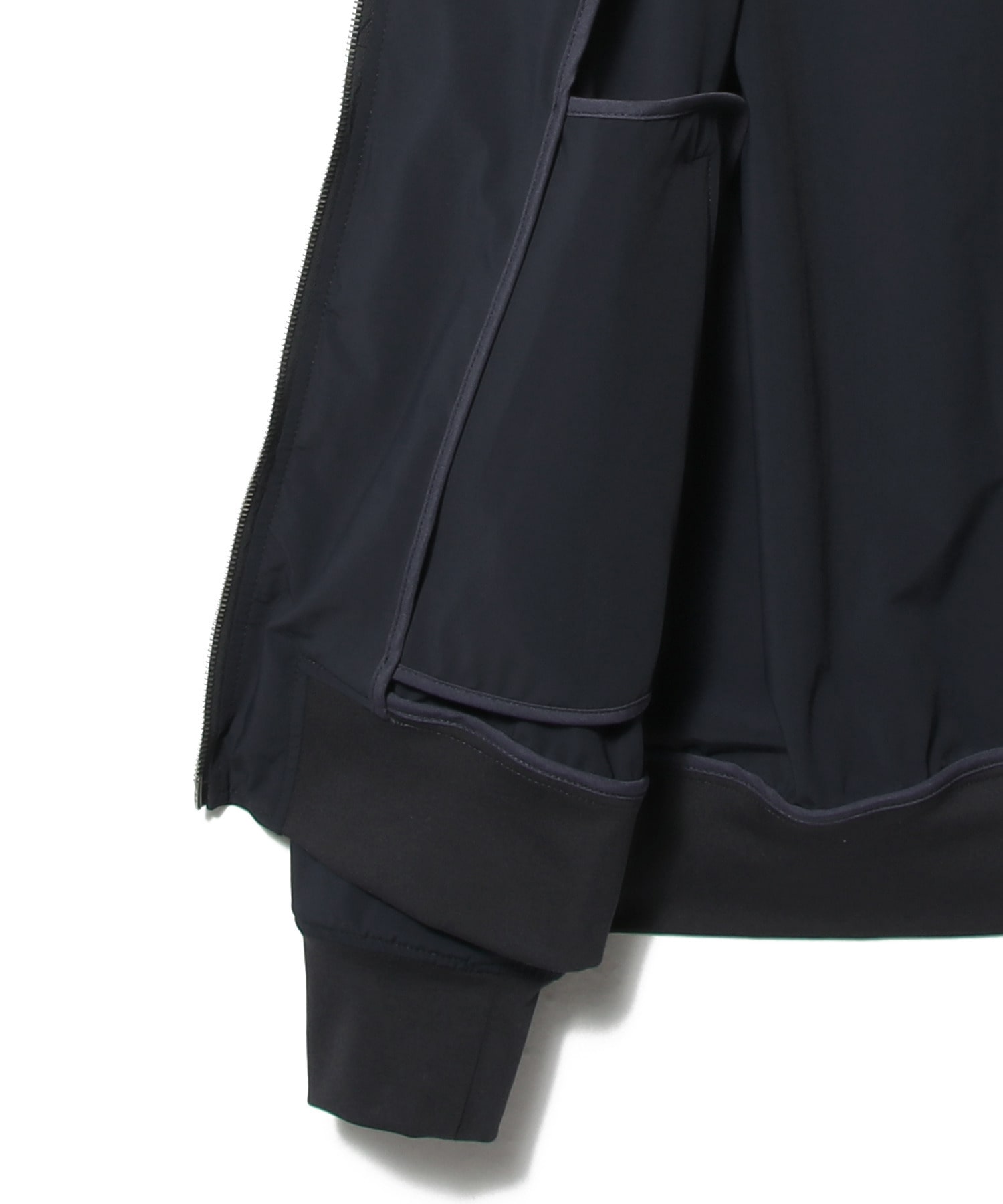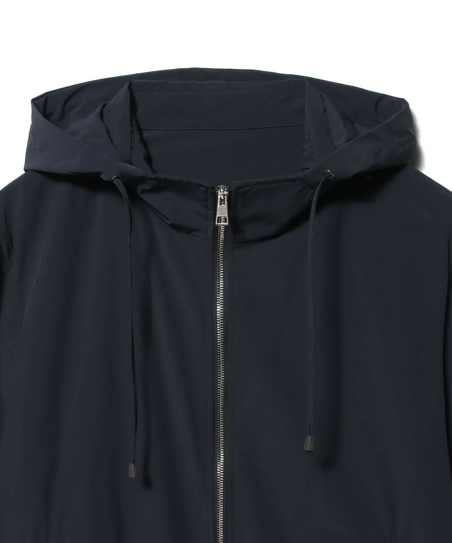 ジャストフィットのすっきりとしたシルエットながら柔らかなストレッチ性に優れた素材使いにより快適に着用いただけます。フード部分には台襟を付け、きれいに収まる仕様にしております。