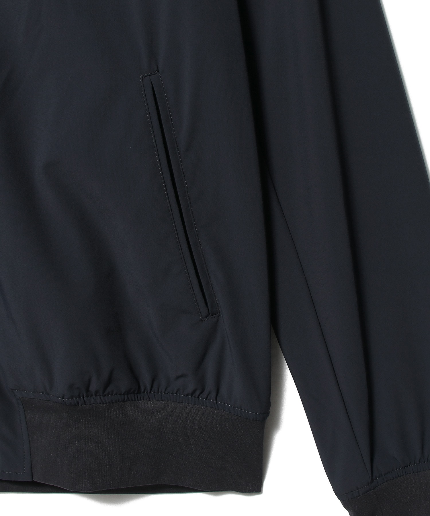 ストレッチ性に優れた艶やかなナイロン素材を使用したブルゾン。