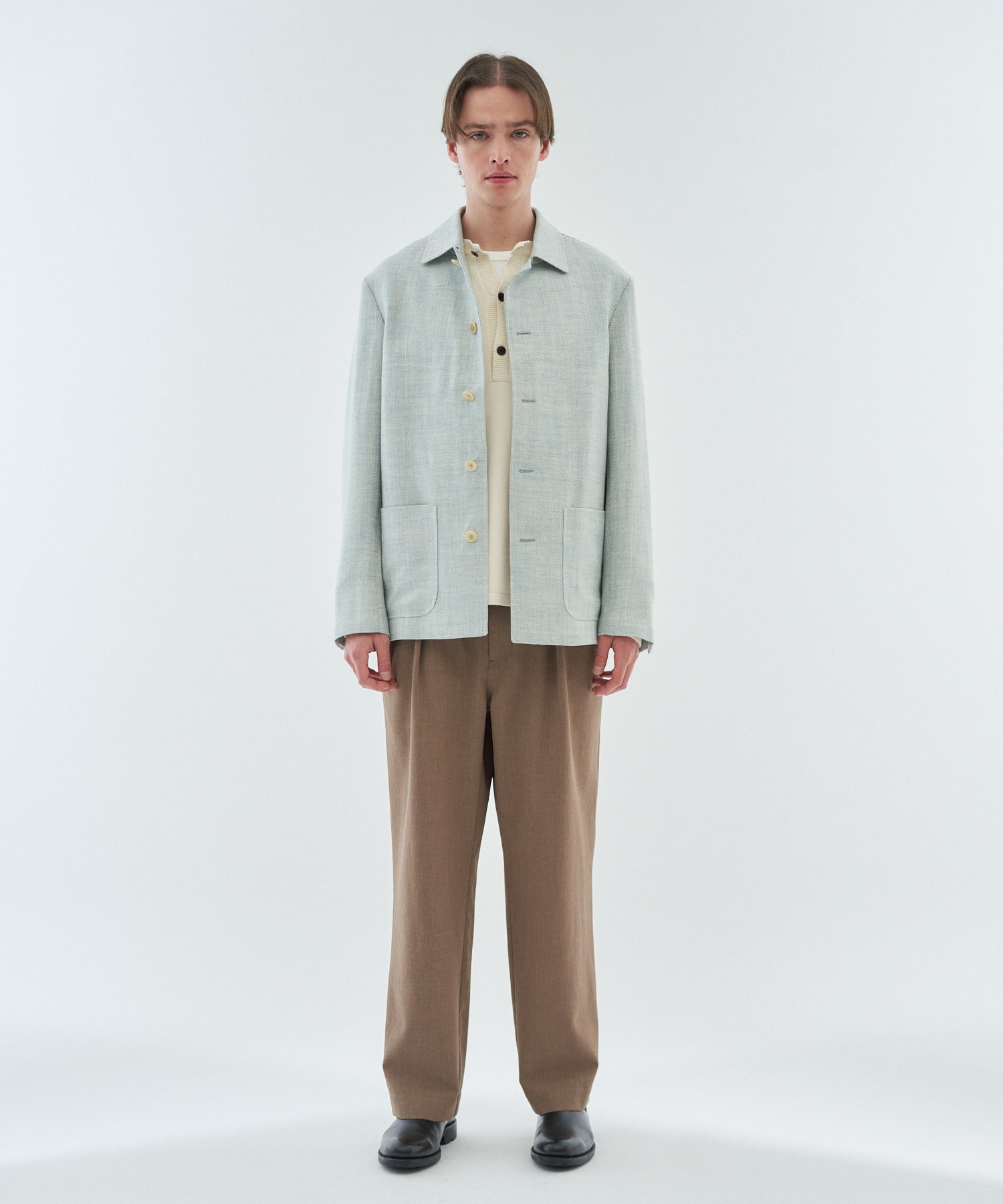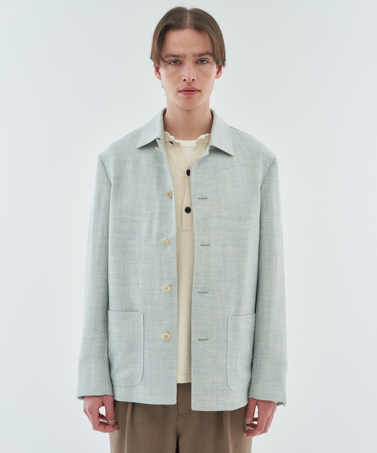デザインはカバーオールをベースにしながら、袖のイセ込みやセンターベントなどドレス要素を取り入れたバランスの良い一着。上品さとカジュアルさを兼ね備え、幅広いシーンで活躍します。