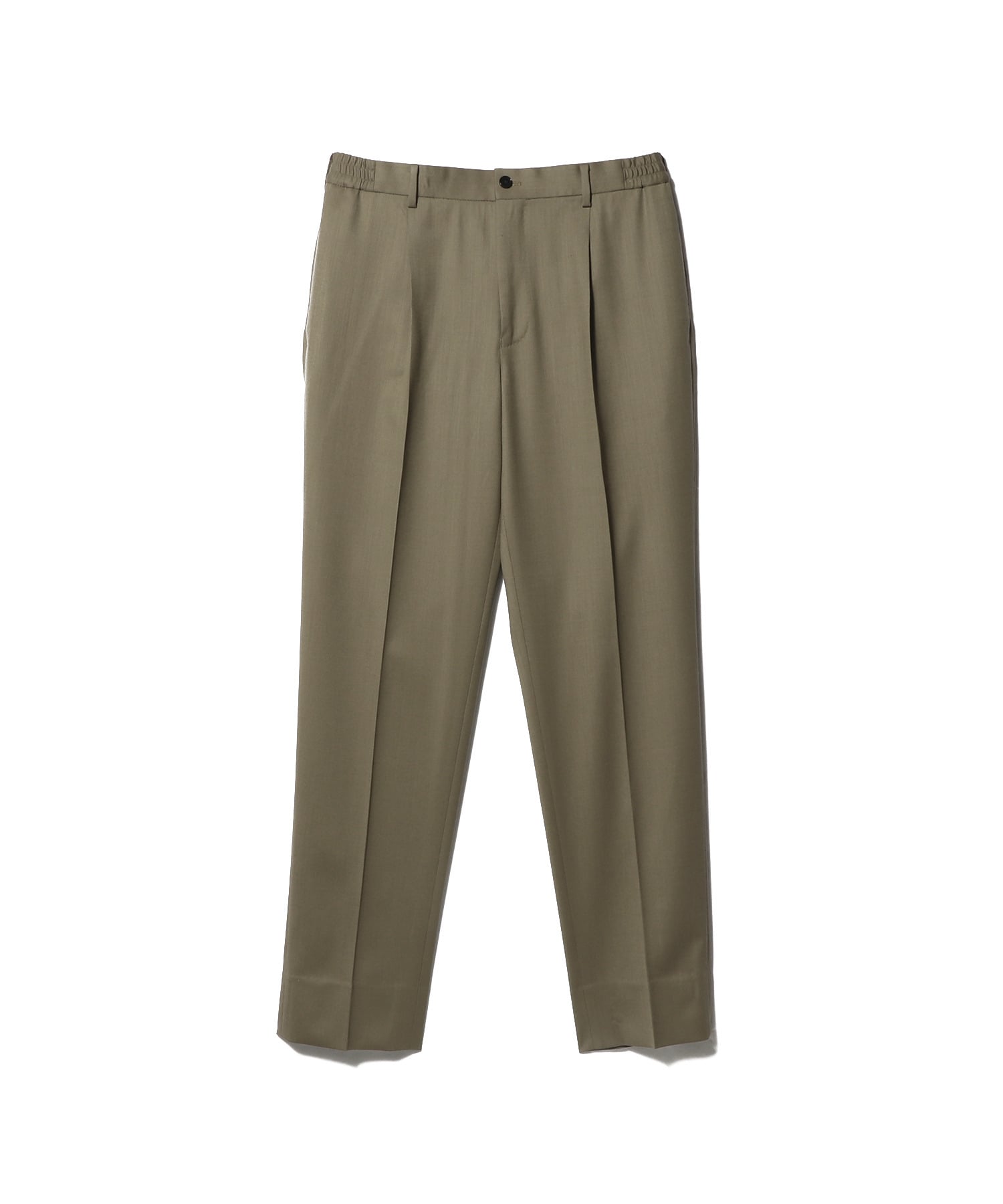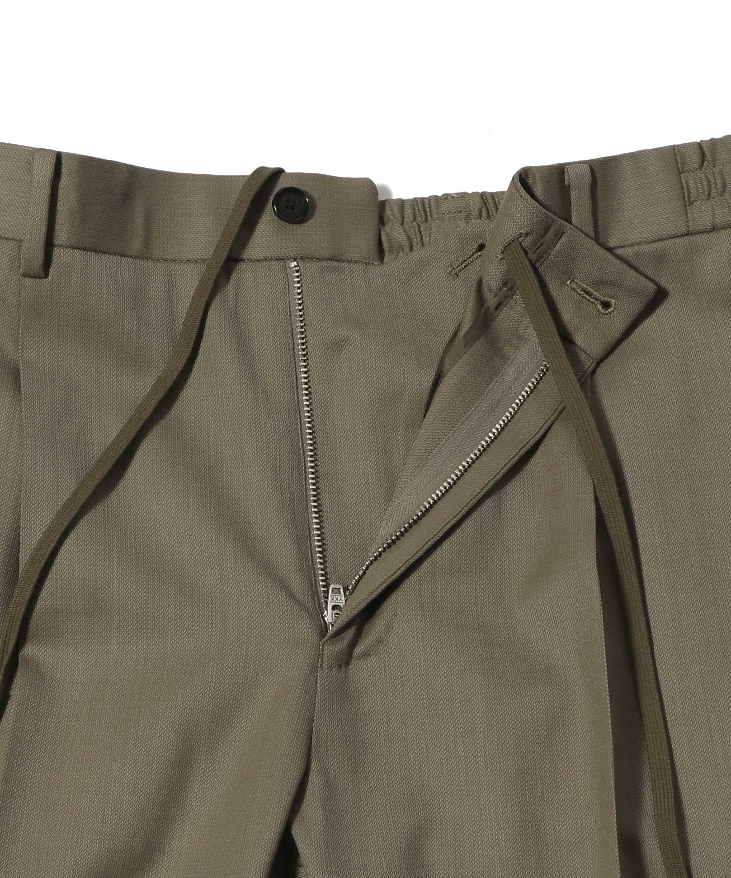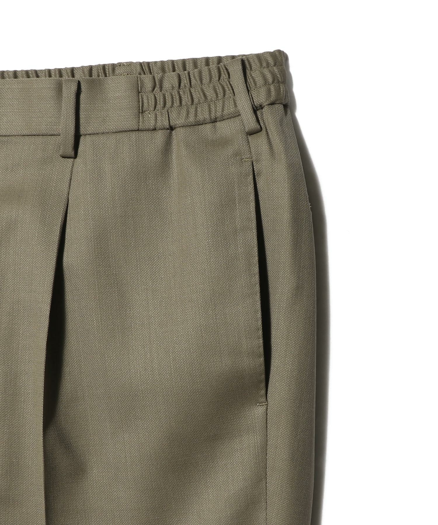 デザインは、1プリーツでヒップまわりに程よくゆとりを持たせた、テーパードシルエットのイージーパンツ仕様。