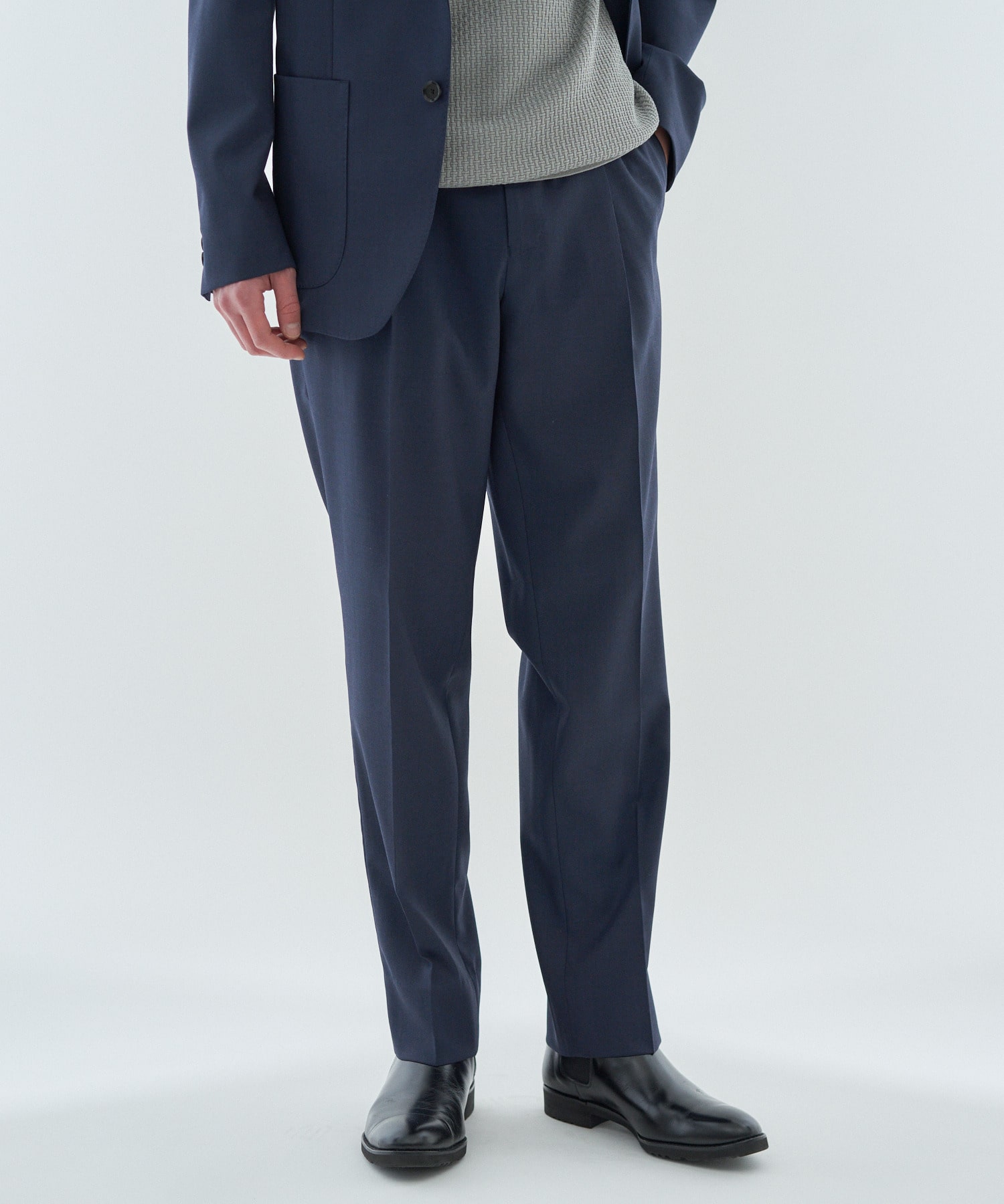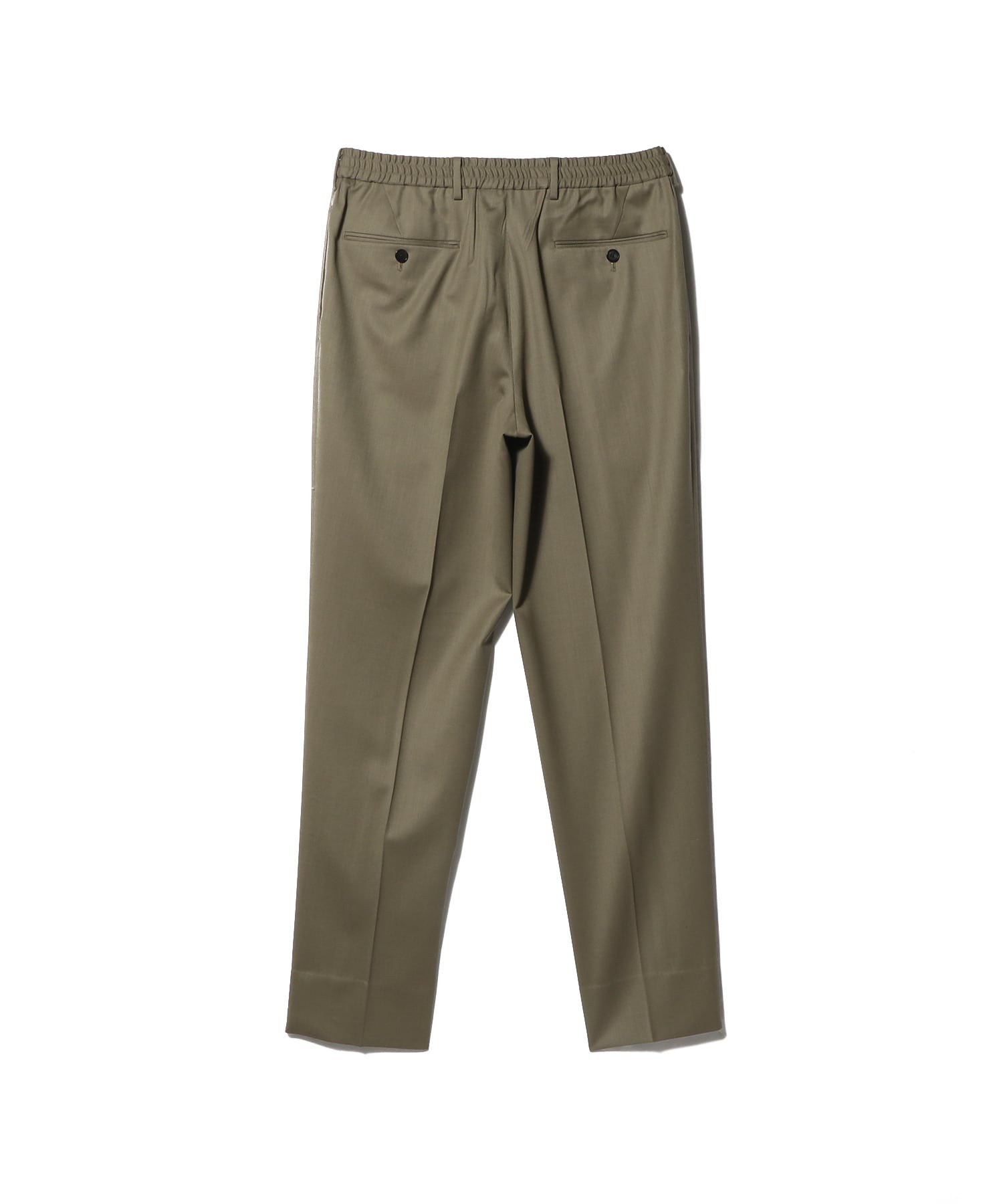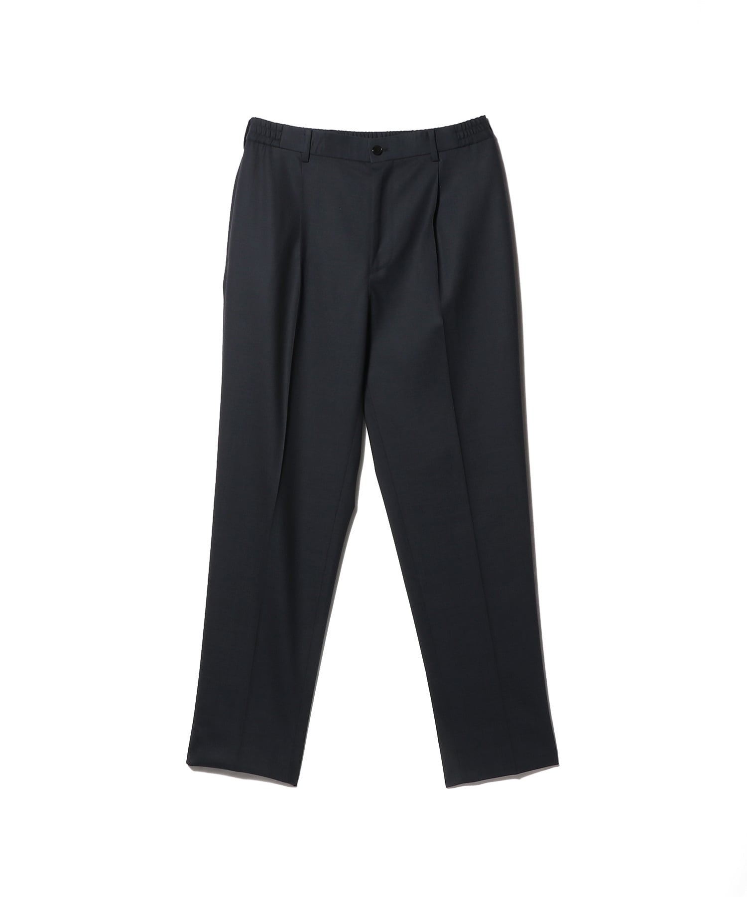 デザインは、1プリーツでヒップまわりに程よくゆとりを持たせた、テーパードシルエットのイージーパンツ仕様。