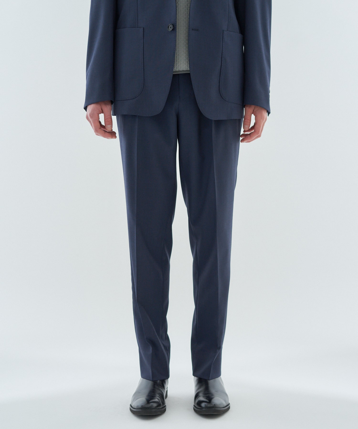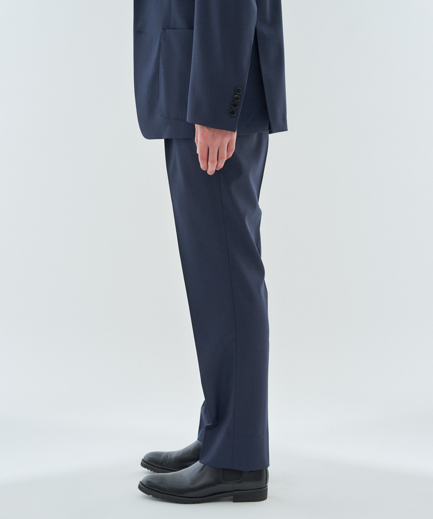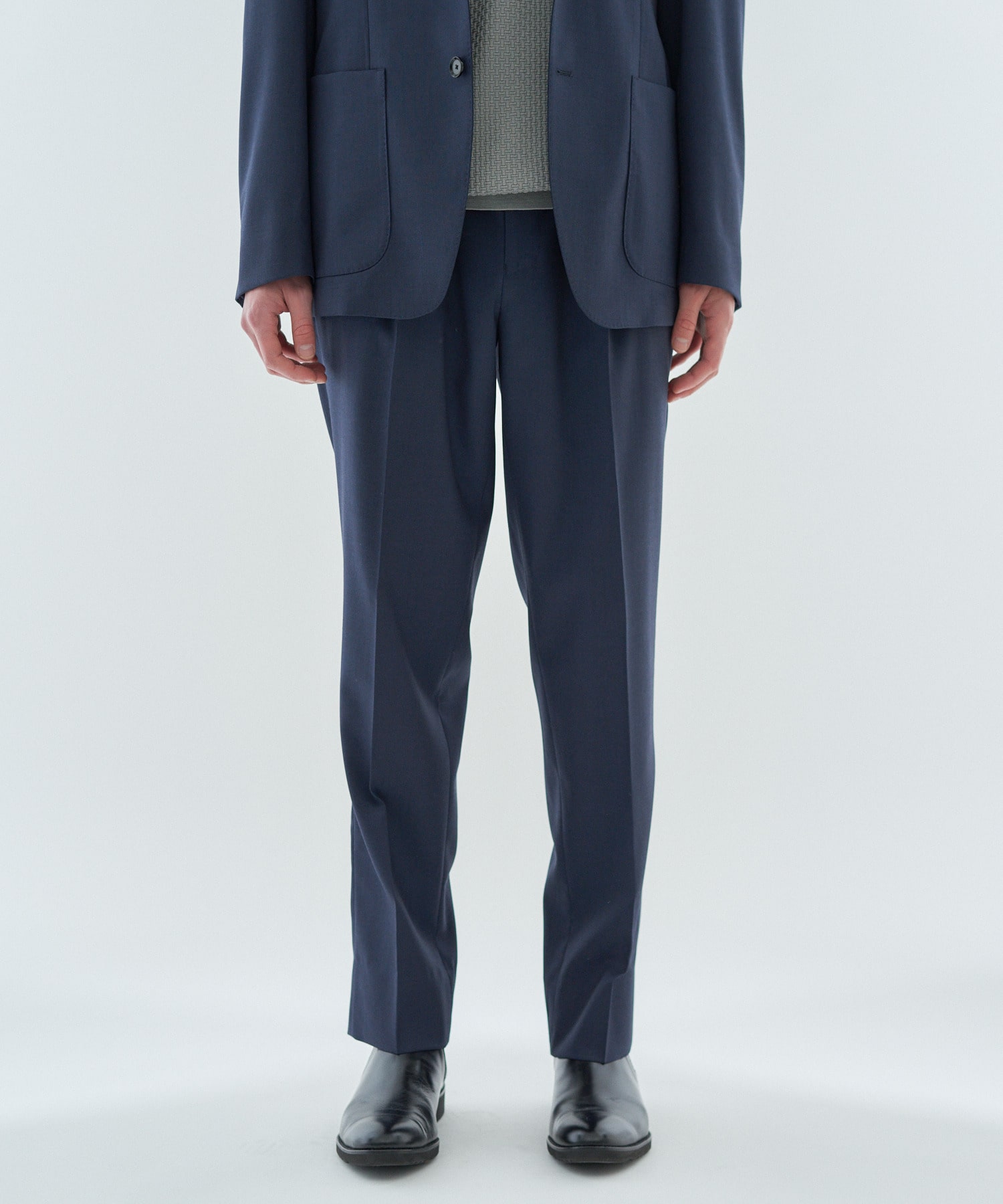 イタリアの老舗ファブリックメーカー「MARLANE」社の、ストレッチウールラチネ素材を使用したセットアップスラックスパンツ。