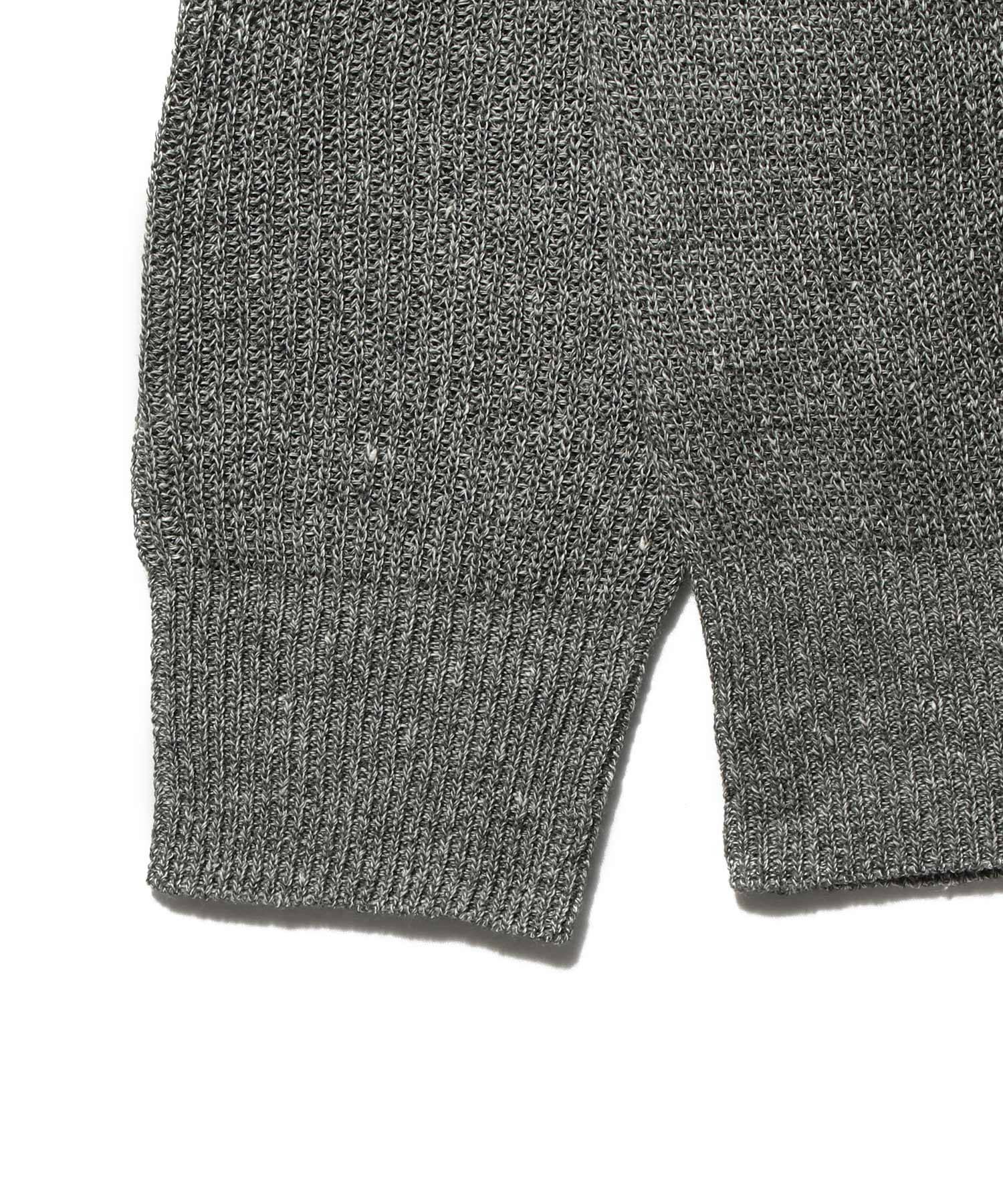 ヨーロッパリネン特有の程よいスラブ感がナチュラルな表情を生み、毛羽立ちを抑えた膨らみのある風合いが特徴です。ツイード調の杢カラーは奥行きがあり、畦編みによる縦ストライプ状の編み柄がシャープな印象を演出。リネンならではのドライなタッチで、春から夏まで長く快適に着用できます。
