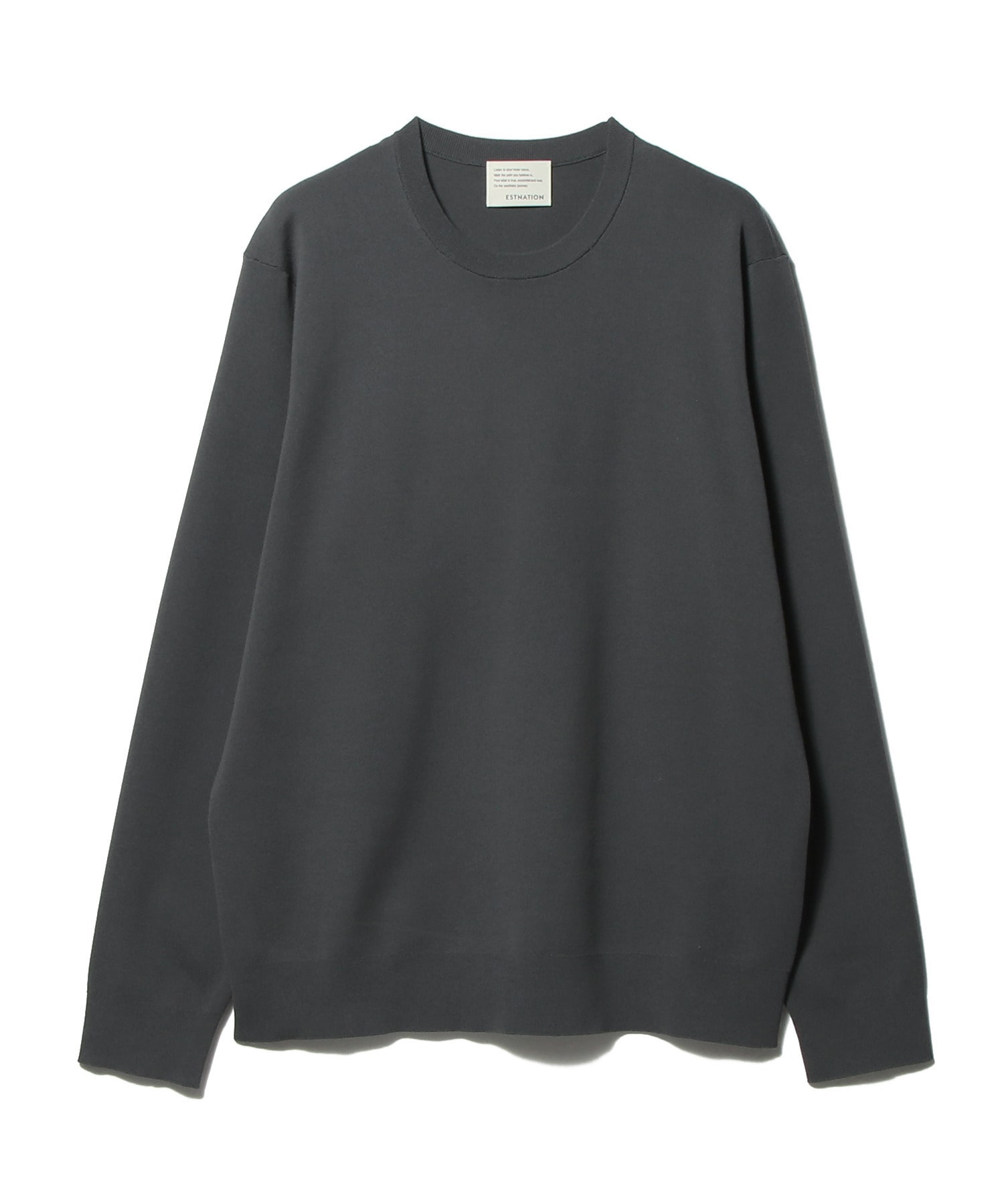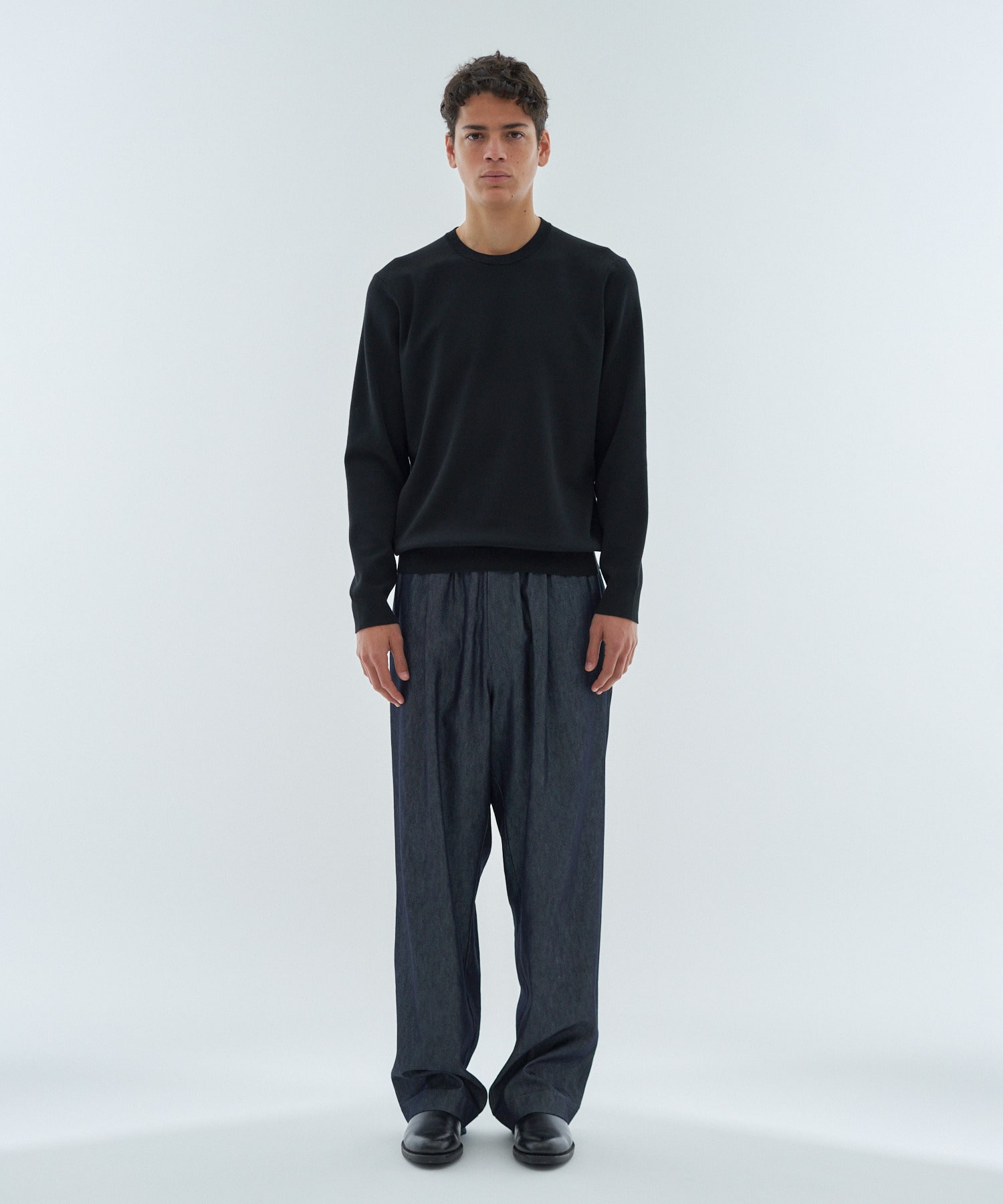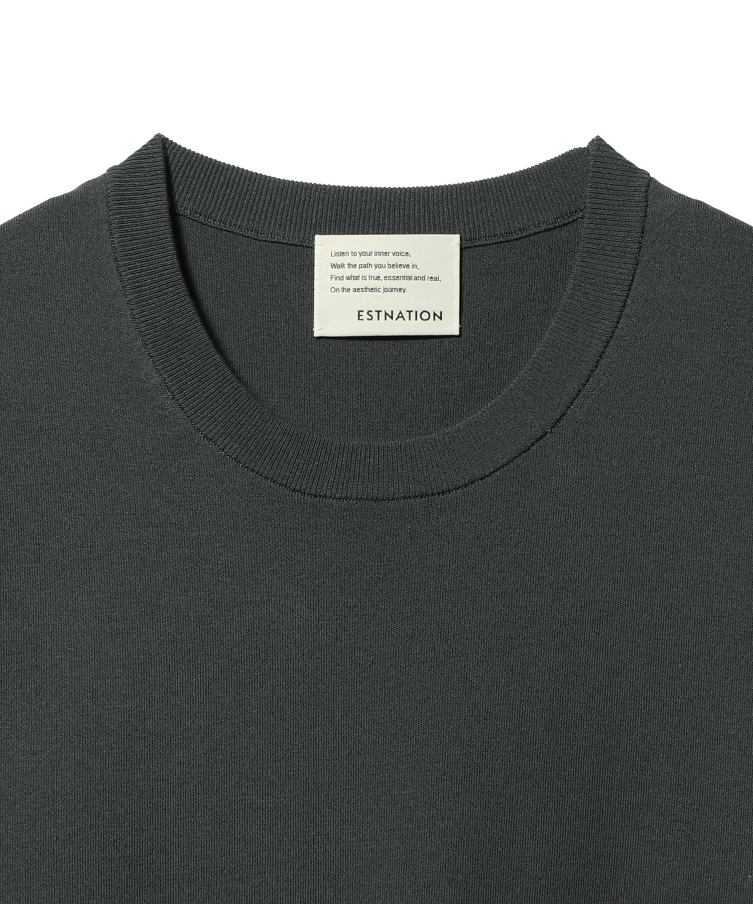 高いストレッチ性に加え、軽さとふくらみを併せ持つ独特の嵩高性が特徴です。18Gのスムース編みにより、カットソーのような軽やかさとニットならではの上質なタッチを両立。ほどよくゆとりのあるクルーネックデザインで、ジャケットのインナーとしても一枚着としても品良く着用いただけます。